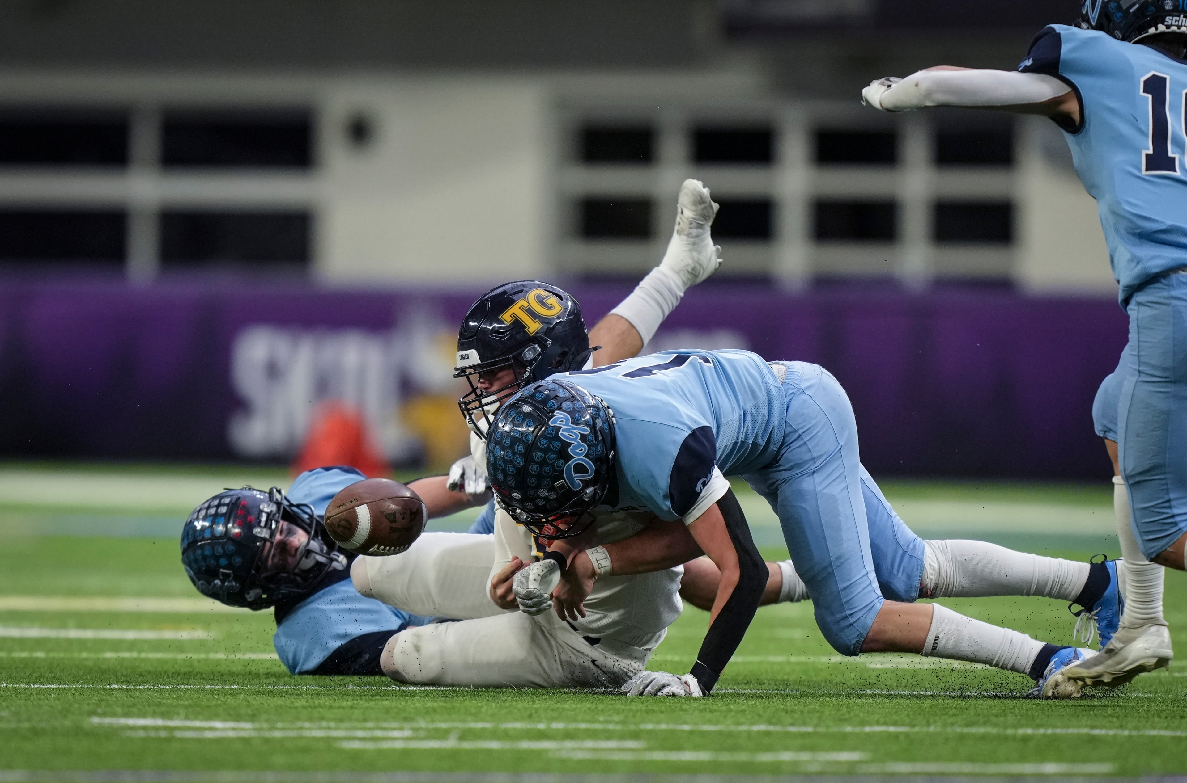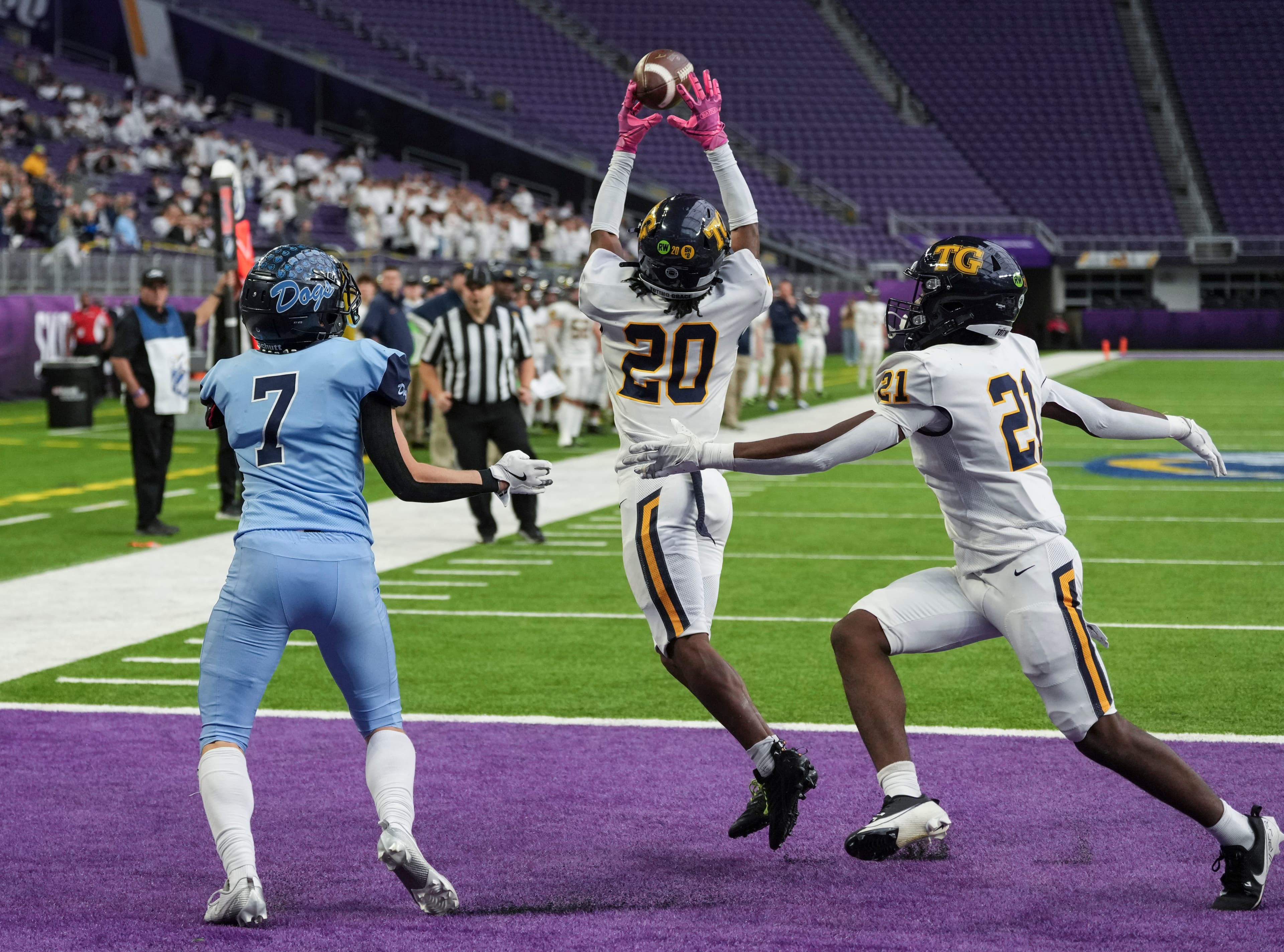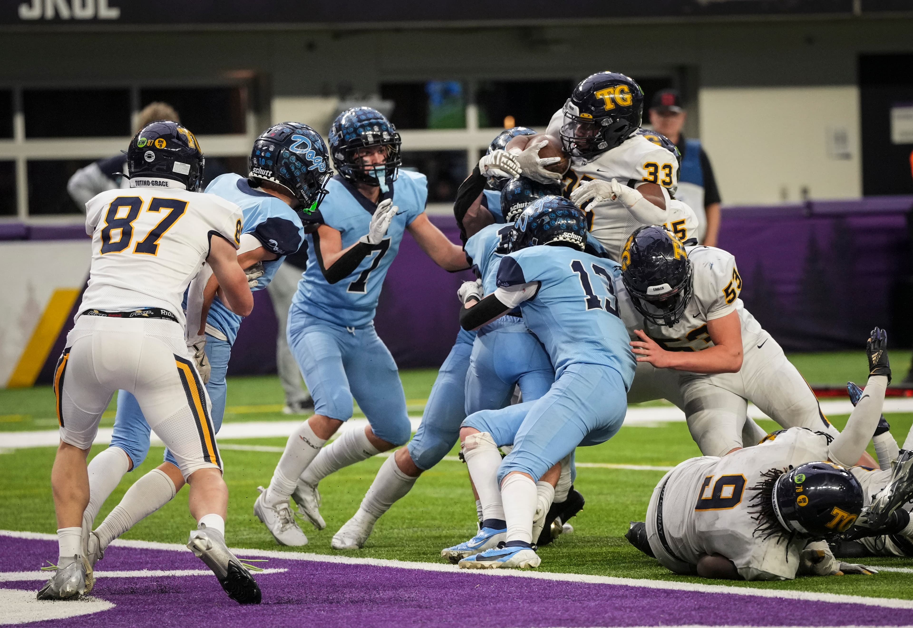 Meanwhile, Becker’s defense suffocated the Eagles’ offense. The Bulldogs allowed just 152 yards of total offense and kept Totino-Grace (12-1) off the scoreboard until 1:10 remained in the game.