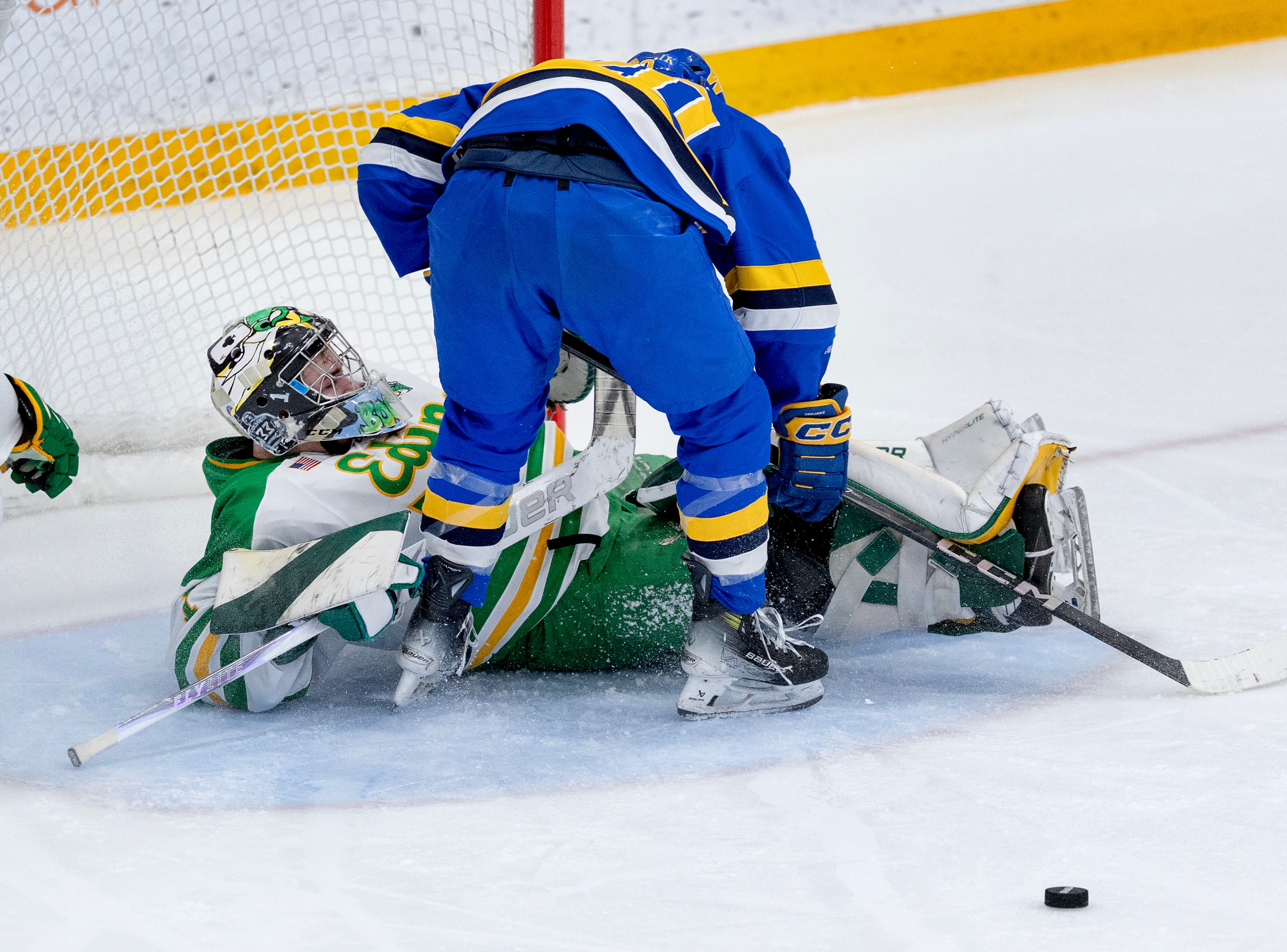 The first period remained scoreless until Eli Molde, the Trojans’ top goal scorer, opened up scoring with two minutes left. The shot, slipped past Edina goalie Chase Bjorgaard at close range into the left pocket, marked the senior forward’s 16th of the season. It was his fourth goal in the past four periods of play for Wayzata, with one goal in each period of the semifinal section game against Rogers on Feb. 21.