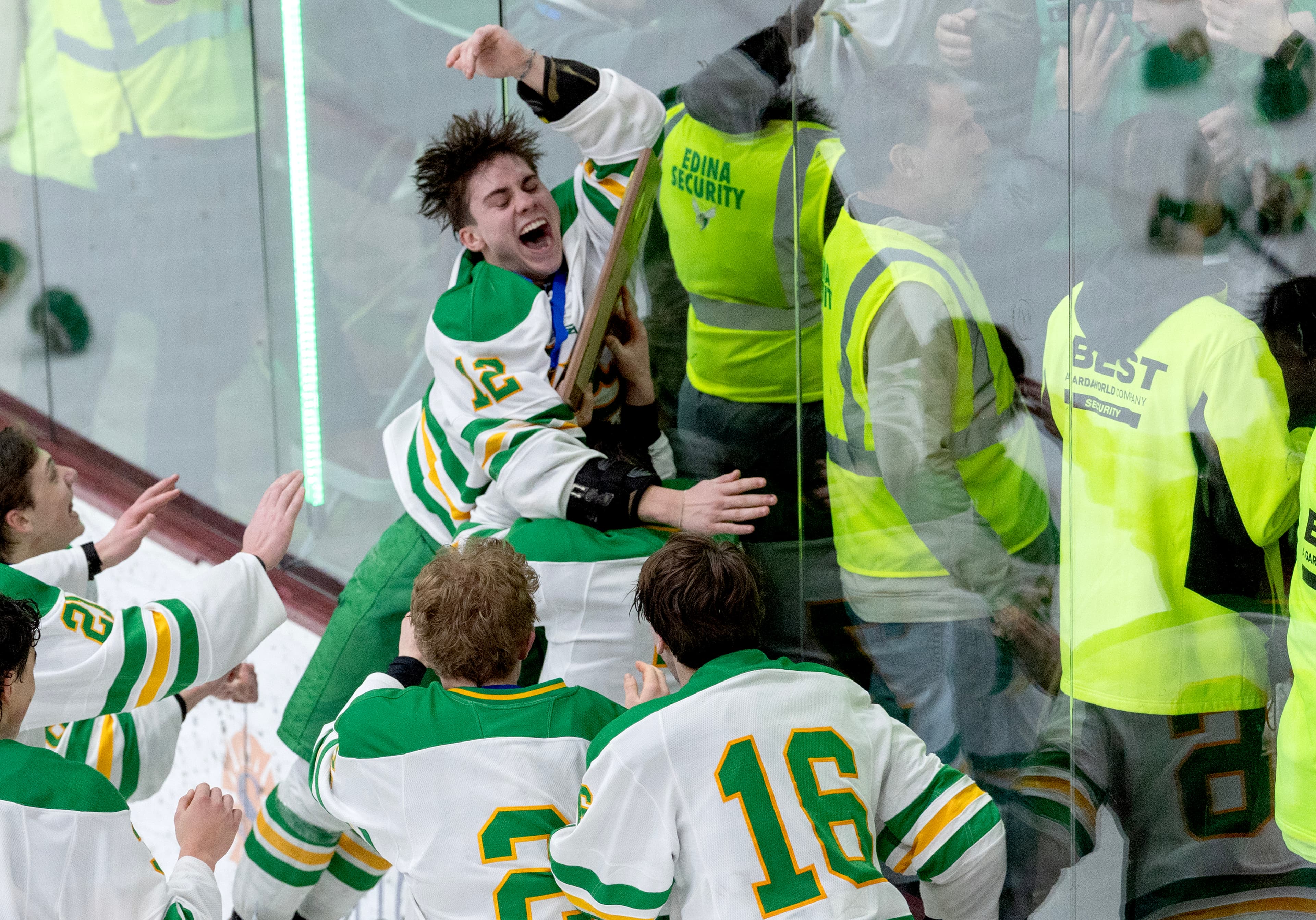 At Ridder Arena, on a rink dotted with white hockey helmets and green gloves, Edina secured its spot in next week’s Class 2A boys hockey state tournament for the fifth year in a row and 44th time in school history with a 3-1 victory in the Section 6 championship game against Wayzata on Wednesday, Feb. 25.