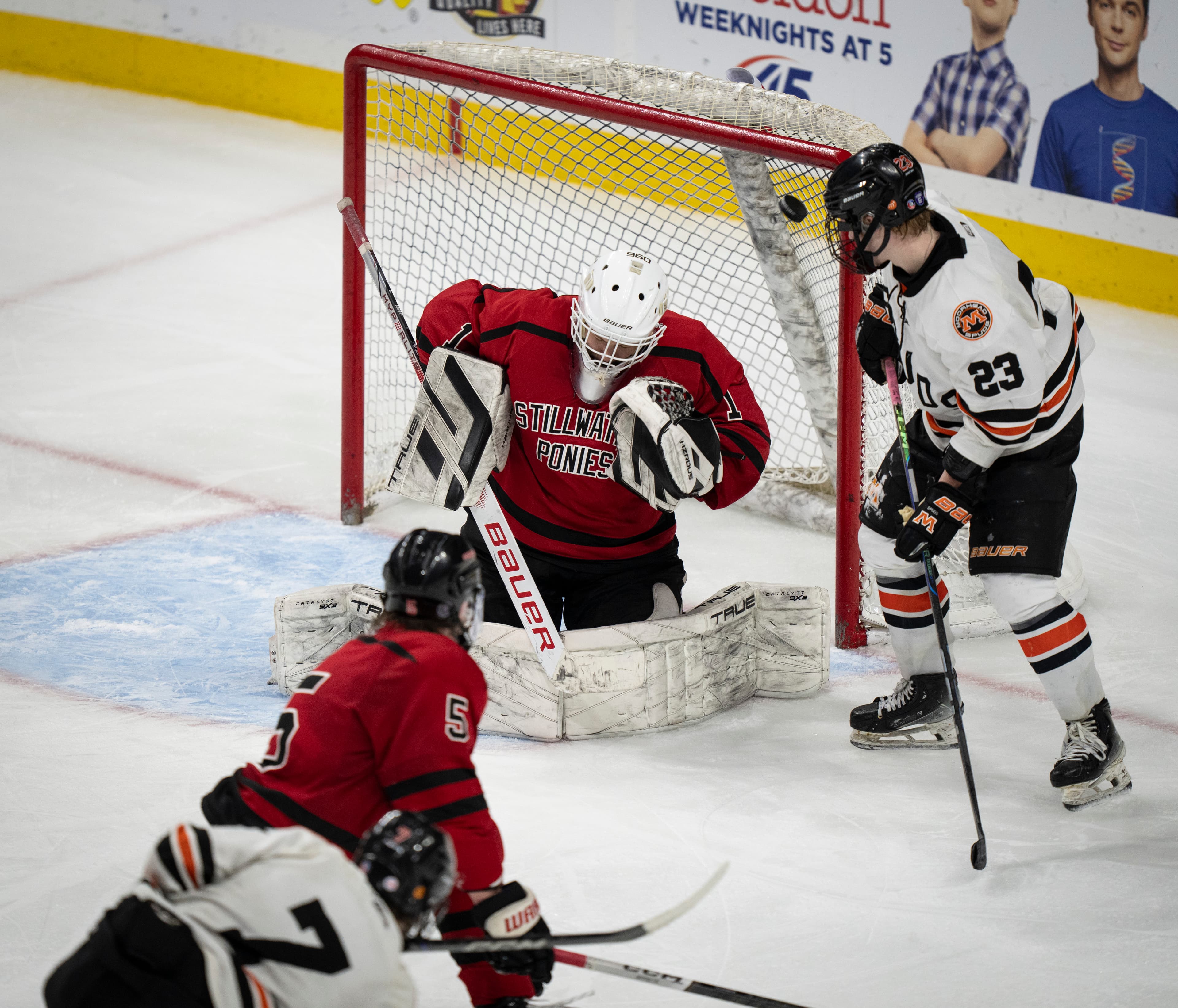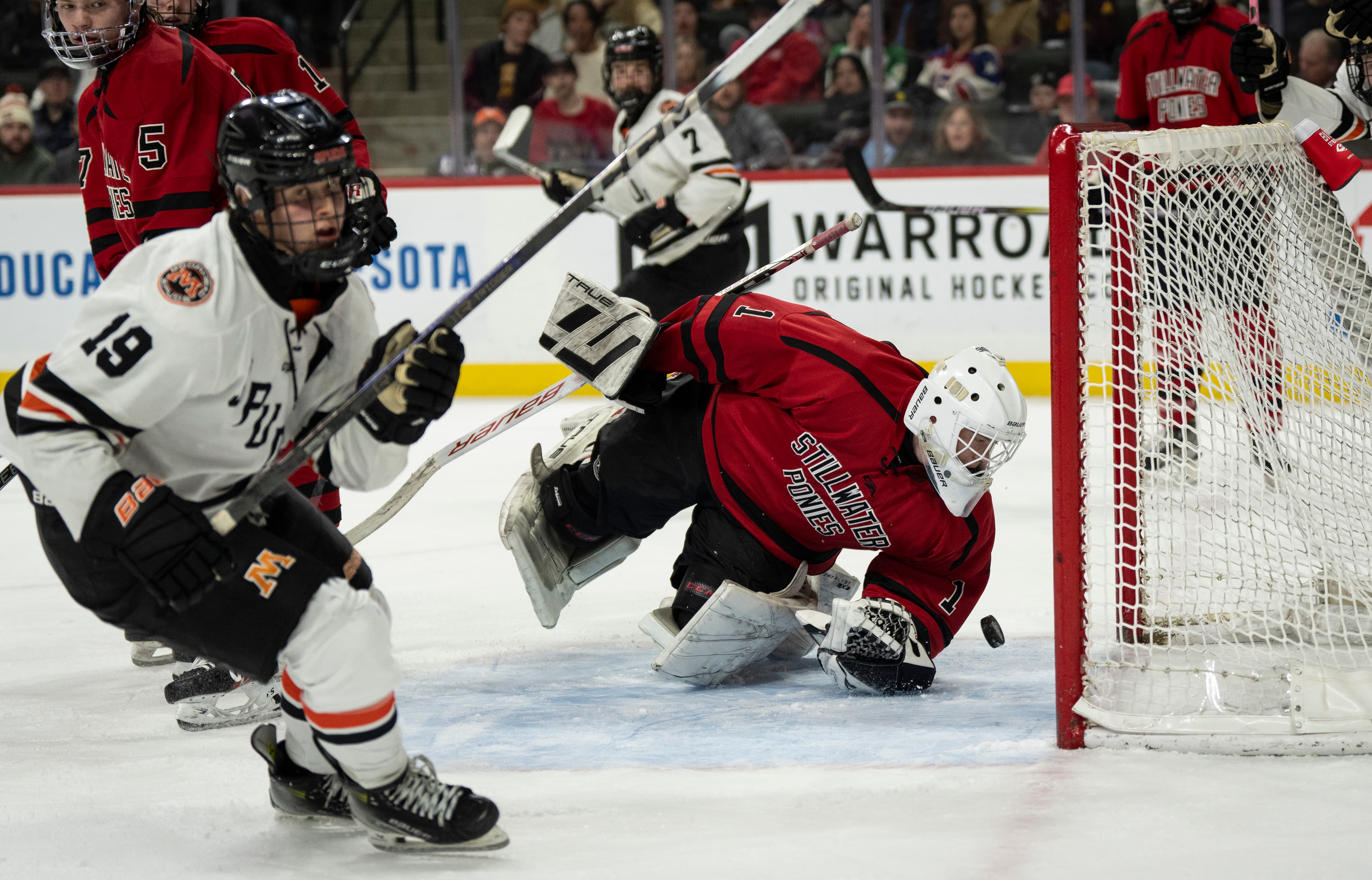 Mason Kraft and teammate Brooks Cullen added the next two goals of the first period. Under siege, Stillwater raised a white flag of sorts with its timeout at 2:24 of the first period. Another Kraft goal followed.