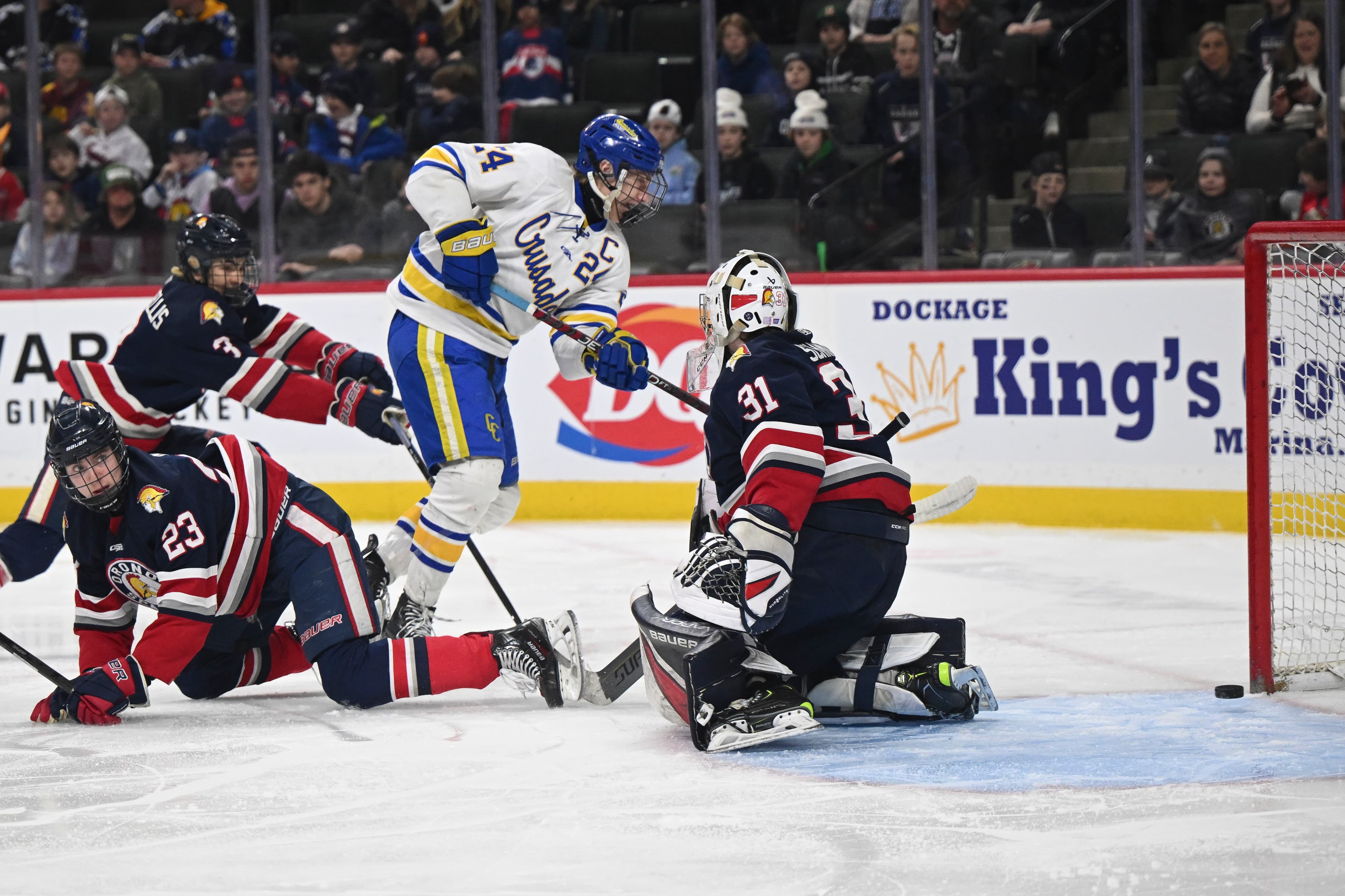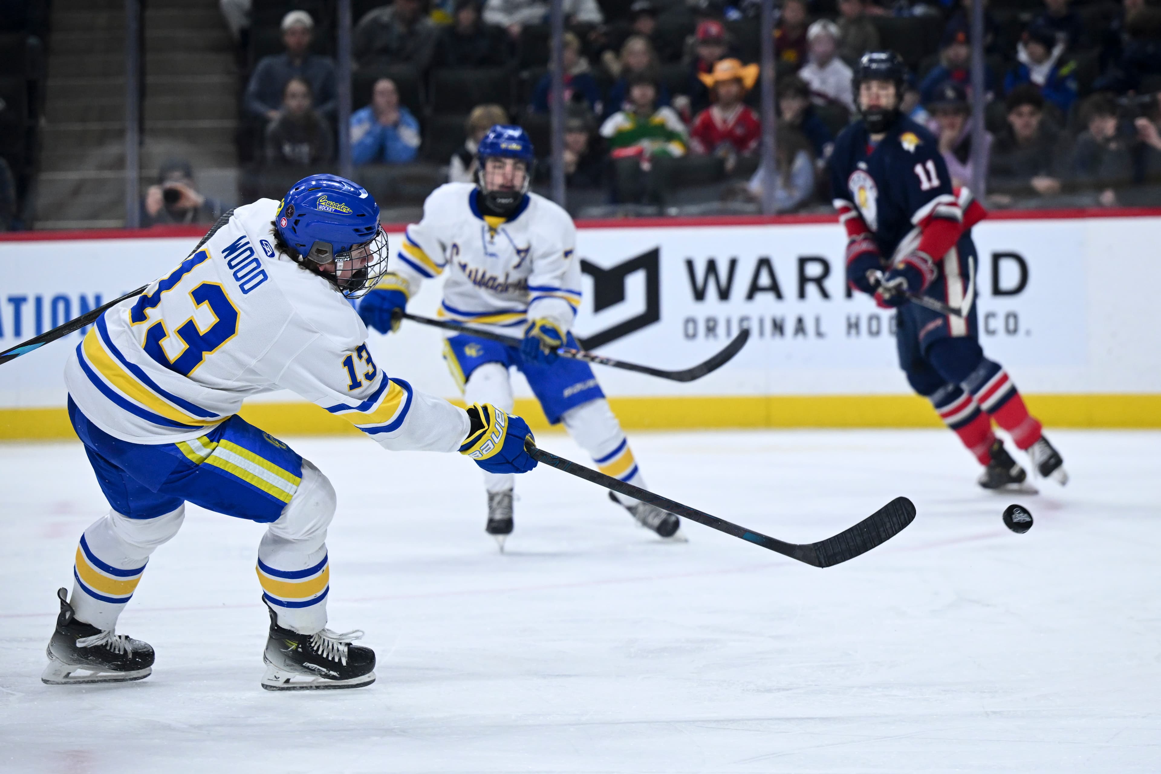 Varnson scored with 1:55 left in the second, and Judd Pesch scored with one second left in the period. Cole Bies scored back-to-back goals in the opening minute of the third period, giving the Green Wave their first lead of the game at 6-5. Jace Panzer’s empty-net goal with 25 seconds remaining solidified the win.