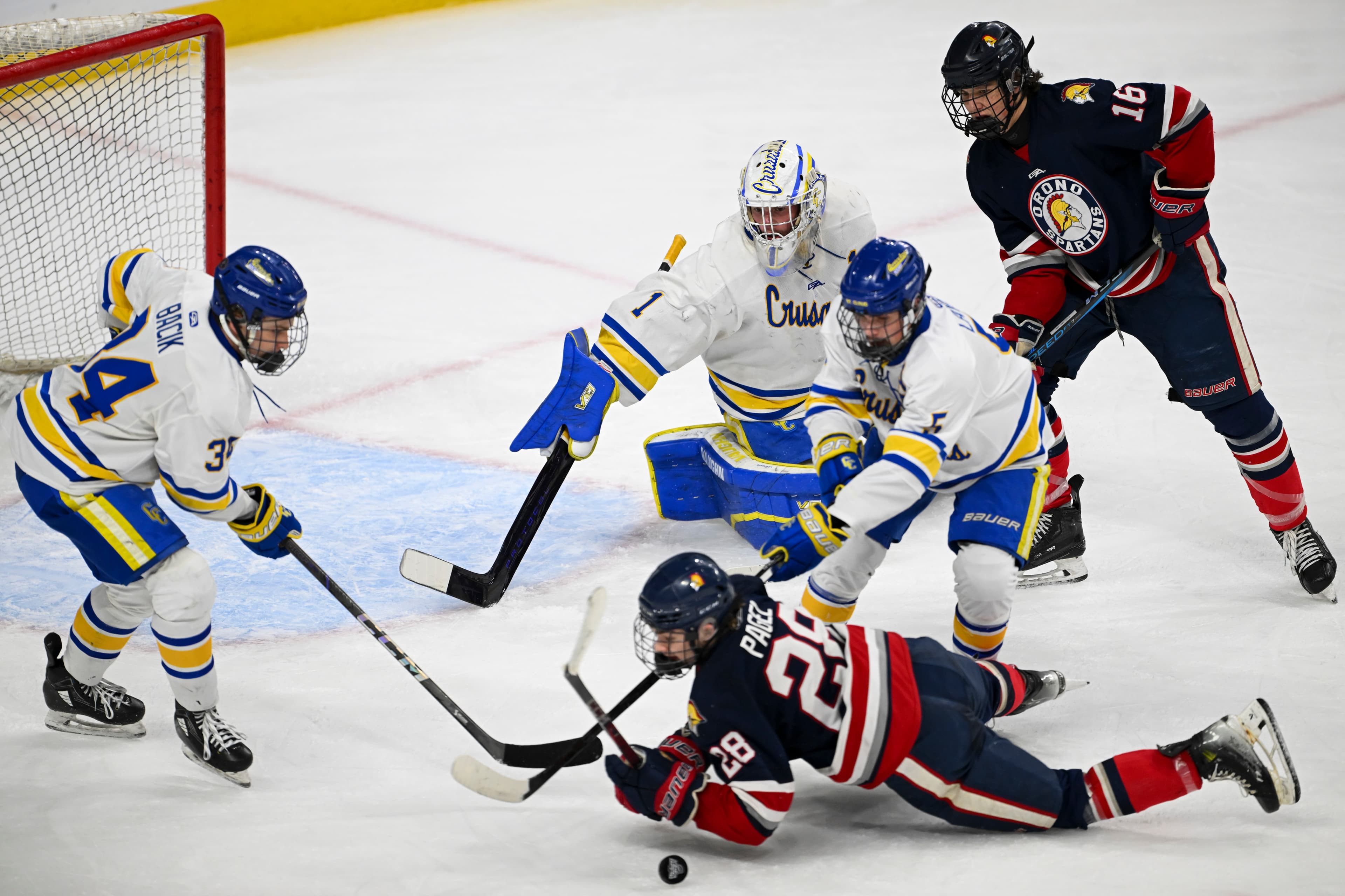 “Our schedule prepared us for a moment like today,” he said. “Being down 3-1 after one [period] wasn’t great. We didn’t waver. Being down 5-2 at one point, we didn’t waver. We just kept finding a way to make the next play.”
