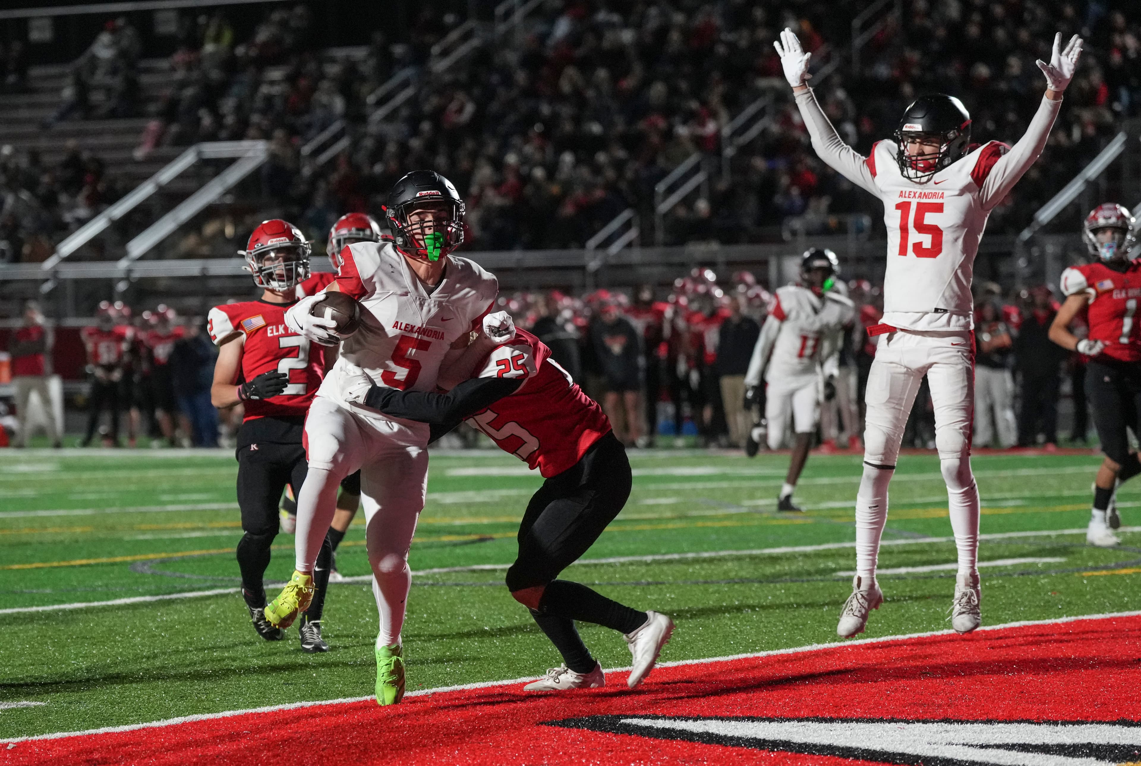 Enter Brecken Keoraj, the Elks’ lightninglike 5-8 playmaker. Usually, the explosive Keoraj is breaking off long runs that wind up in the end zone. On Wednesday, however, Keoraj put the lid on any dreams Alexandria had with an interception at the Elks 38-yard line, stemming Alexandria’s second-half flow of points and giving momentum back to the Elks, who proceeded to drive 62 yards for a game-clinching touchdown and a 44-34 victory.