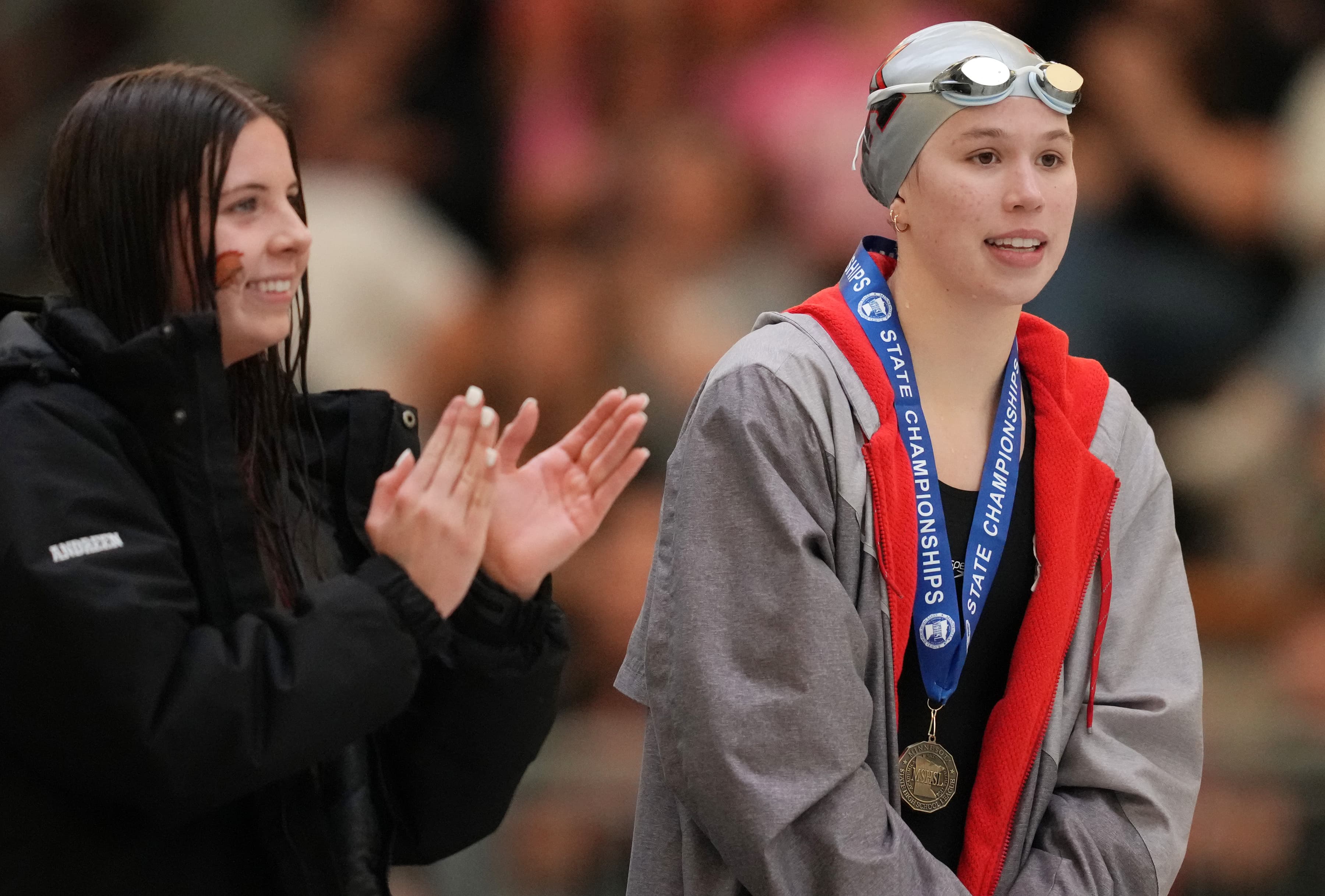 Minnesota all-time and Class 1A record: 200 freestyle, 1:46.93, Adalynn Biegler (Monticello). Previous state record: 1:47.33 in 2016 by Carly Quast (Wayzata). Previous Class 1A record: 1:47.36 on Nov. 14, 2025, by Biegler.