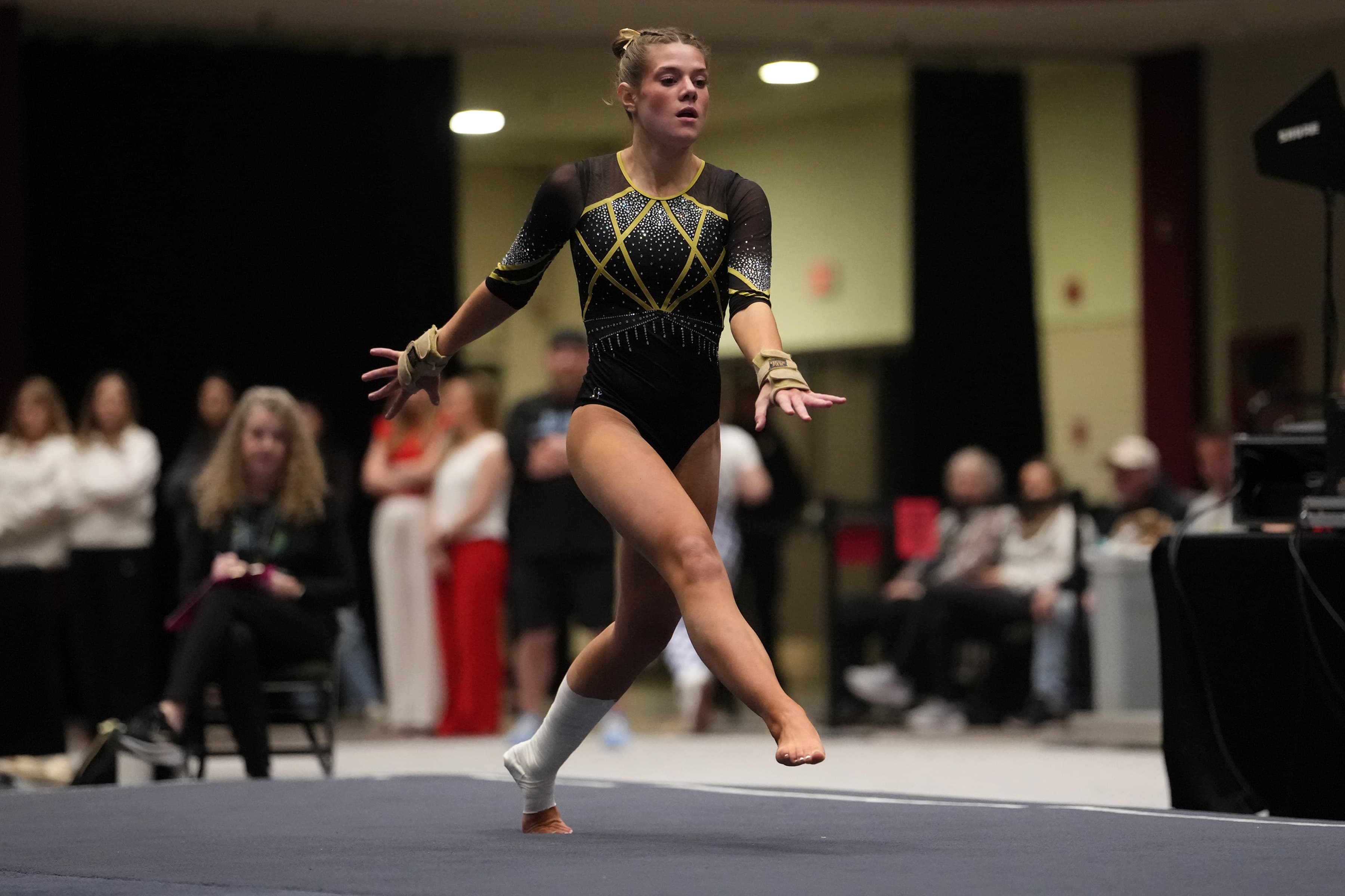 For Hansen, she was dealing with the self-imposed pressure of bettering a previous performance. She won the all-around as a Class 1A gymnast in 2025. Only one gymnast had won titles in both classes prior to Saturday: Rogers Sabrina Hoover won Class 1A in 2009 and 2A in 2010 and 2011.