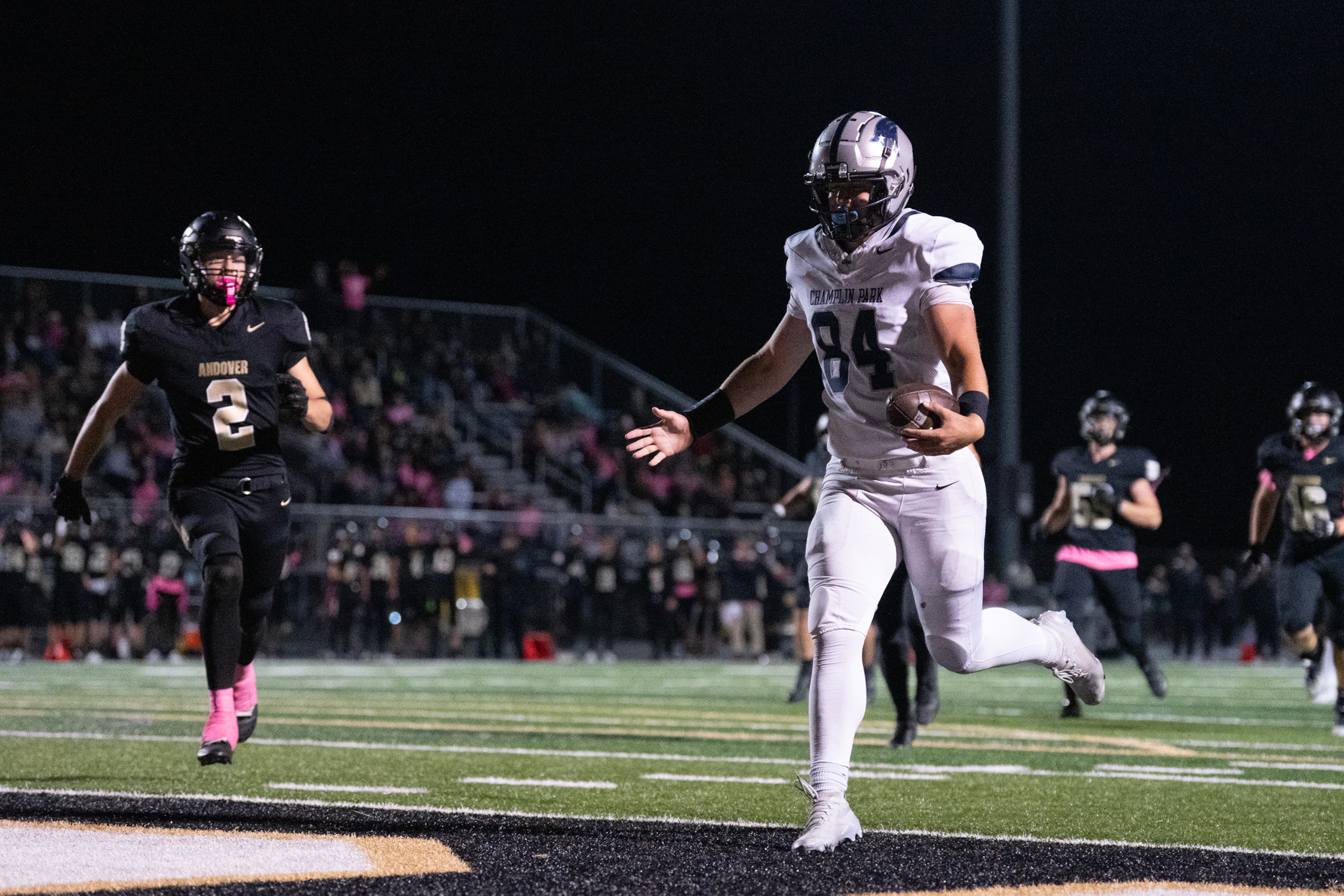 But Champlin Park, which entered the game 1-0 for the first time since 2020, never backed down. The Rebels cut the margin to a single touchdown in the second quarter on the first Felton-to-Axness touchdown, a 30-yarder that Axness caught in full stride before barreling into the end zone.