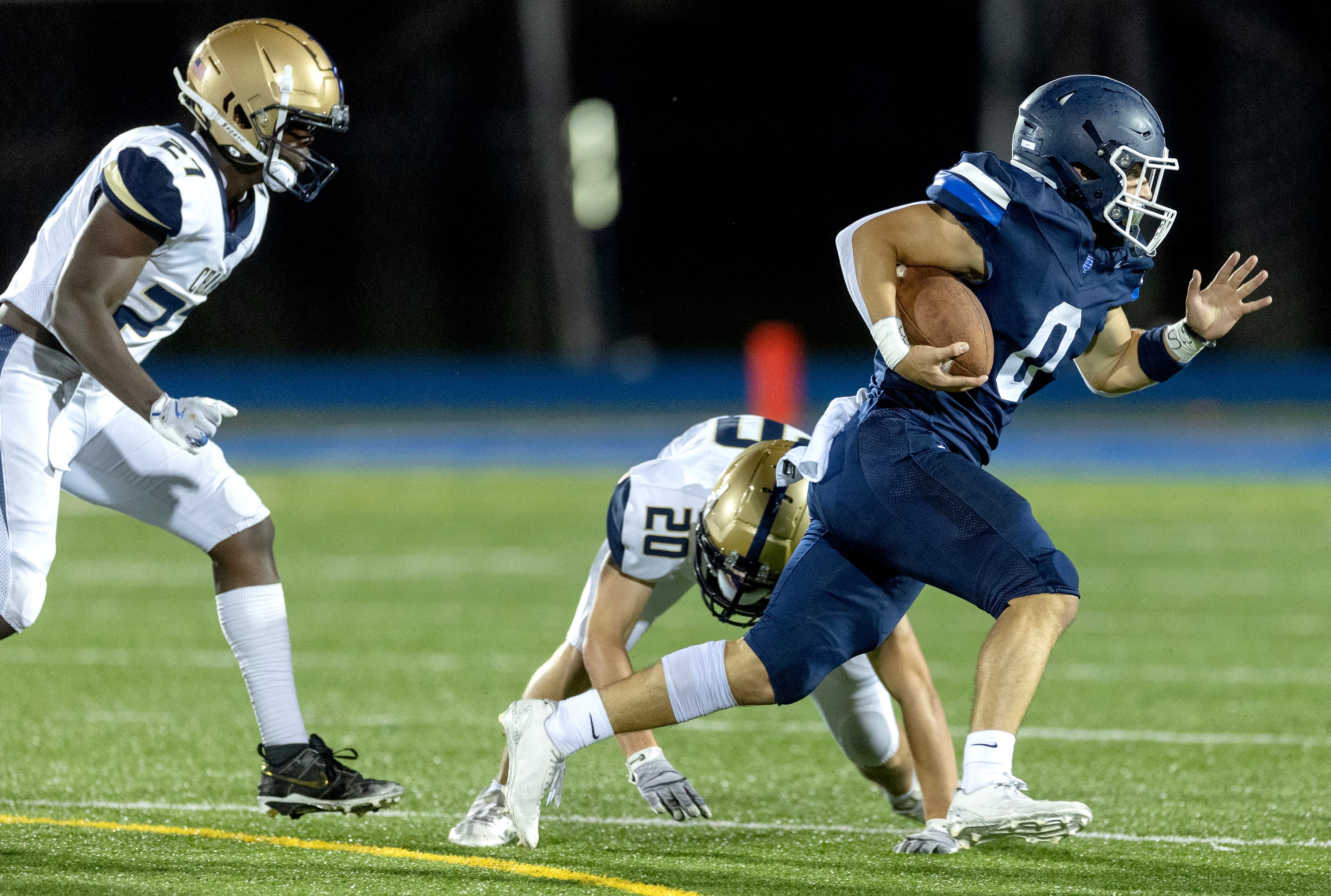 St. Thomas came out after halftime and stood tall against the Chanhassen offense. In the meantime, Baez gave the Cadets a cushion, breaking off a 77-yard run for a 28-13 lead.