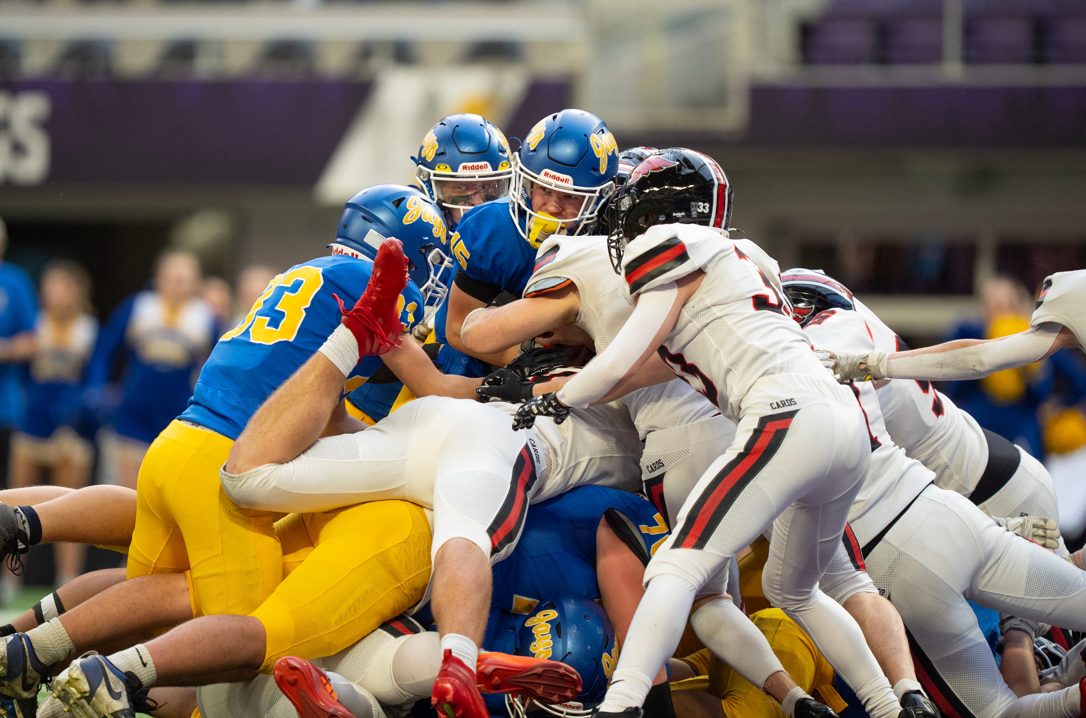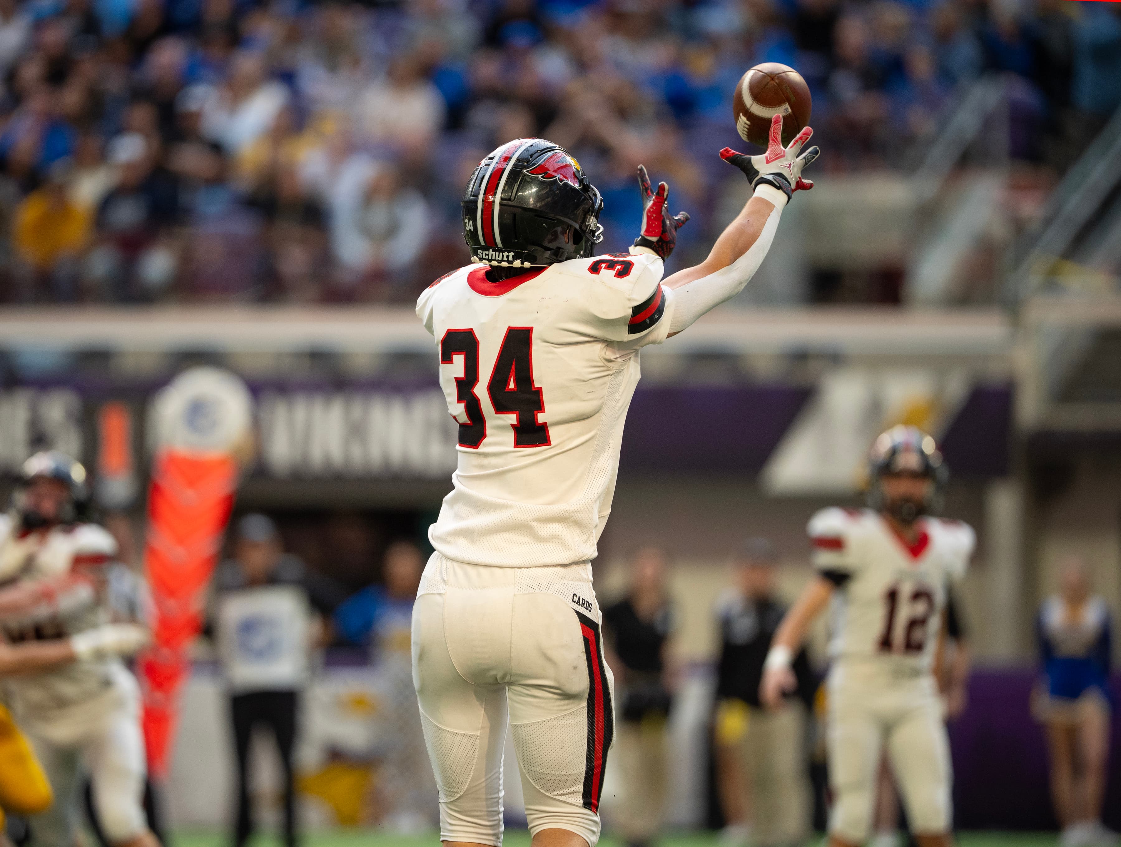 The Cardinals, regular attendees at state, won their first title by defeating Waseca 17-7. Colton Purcell tied a Prep Bowl record with three interceptions.