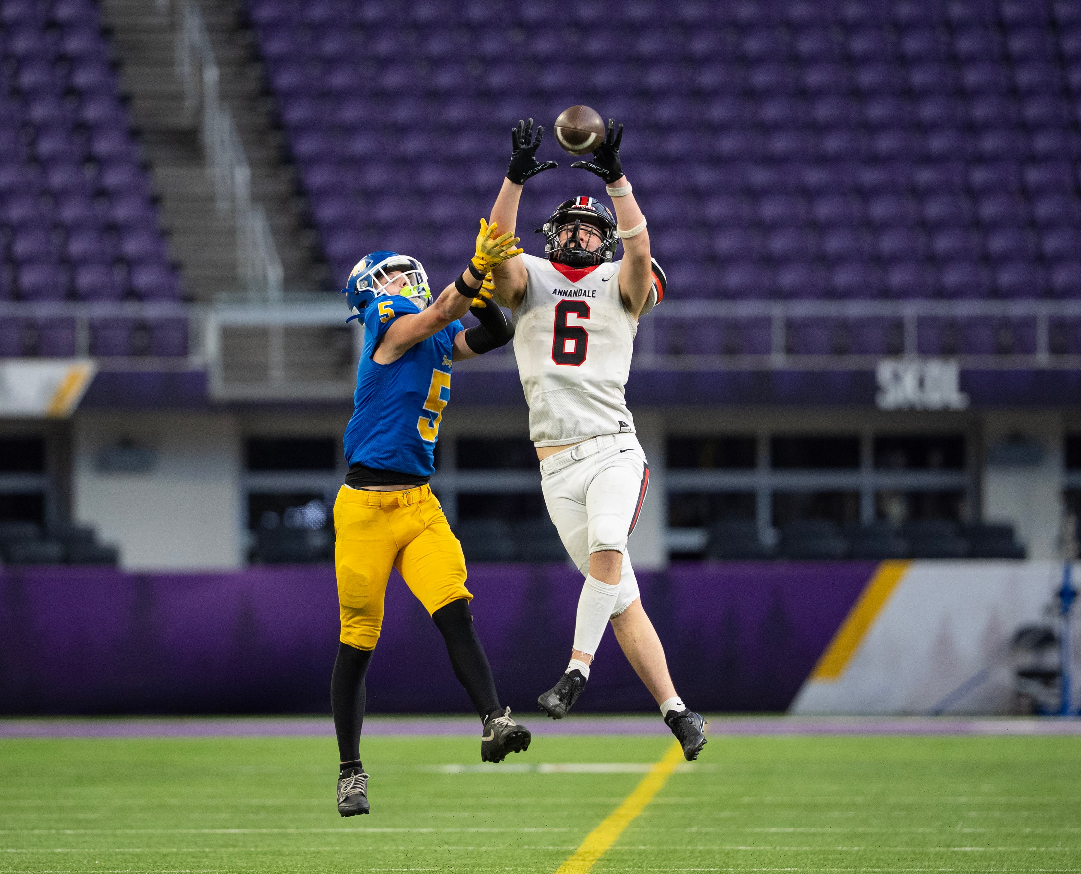 Annandale’s 28 minutes of possession time happened thanks to defensive back/wide receiver Colton Purcell, whose three interceptions tied a Prep Bowl record last achieved by Eden Valley-Watkins’ Nolan Haag in 2023.