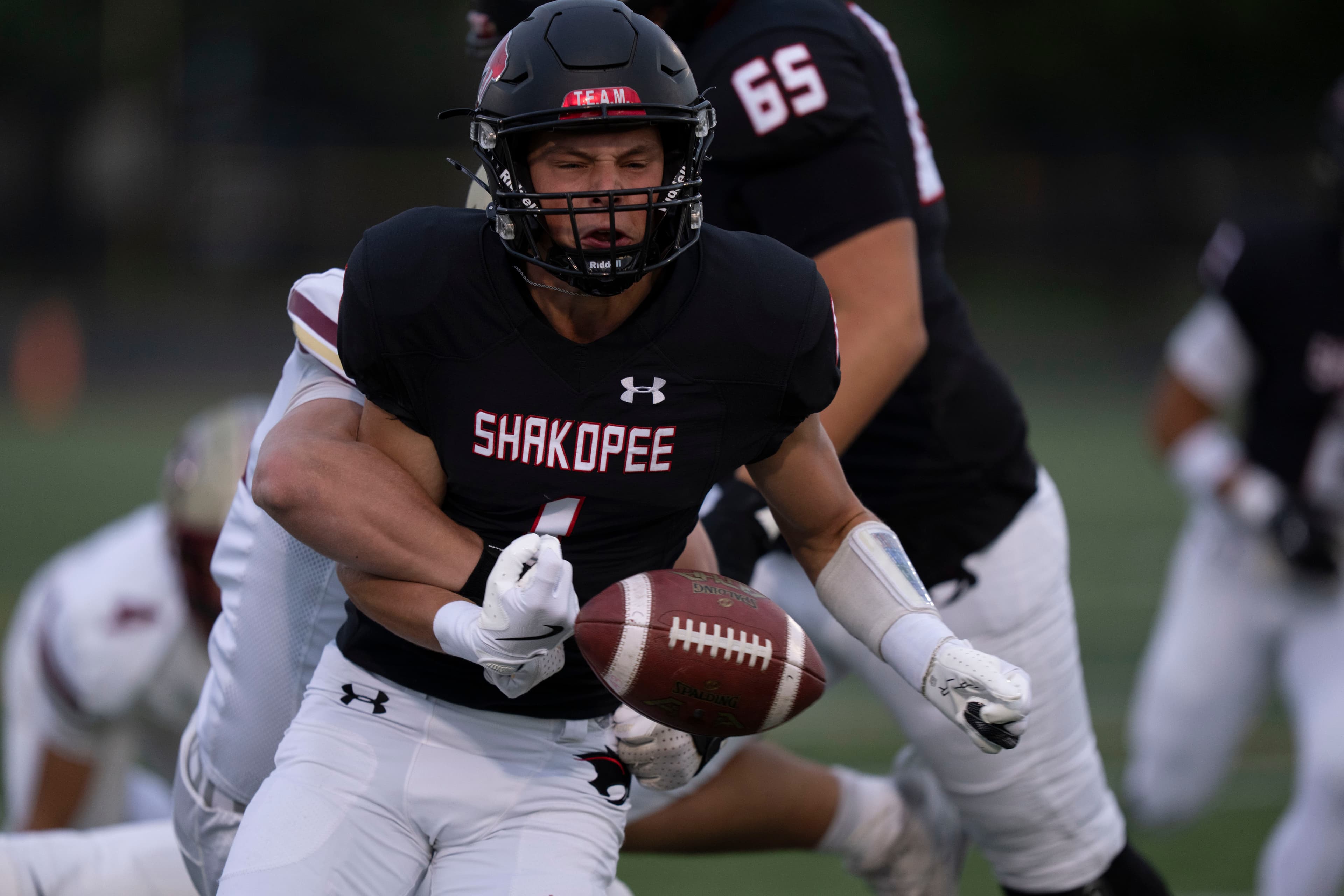 Shakopee lost three fumbles in the first half but won on a fourth-quarter touchdown run.