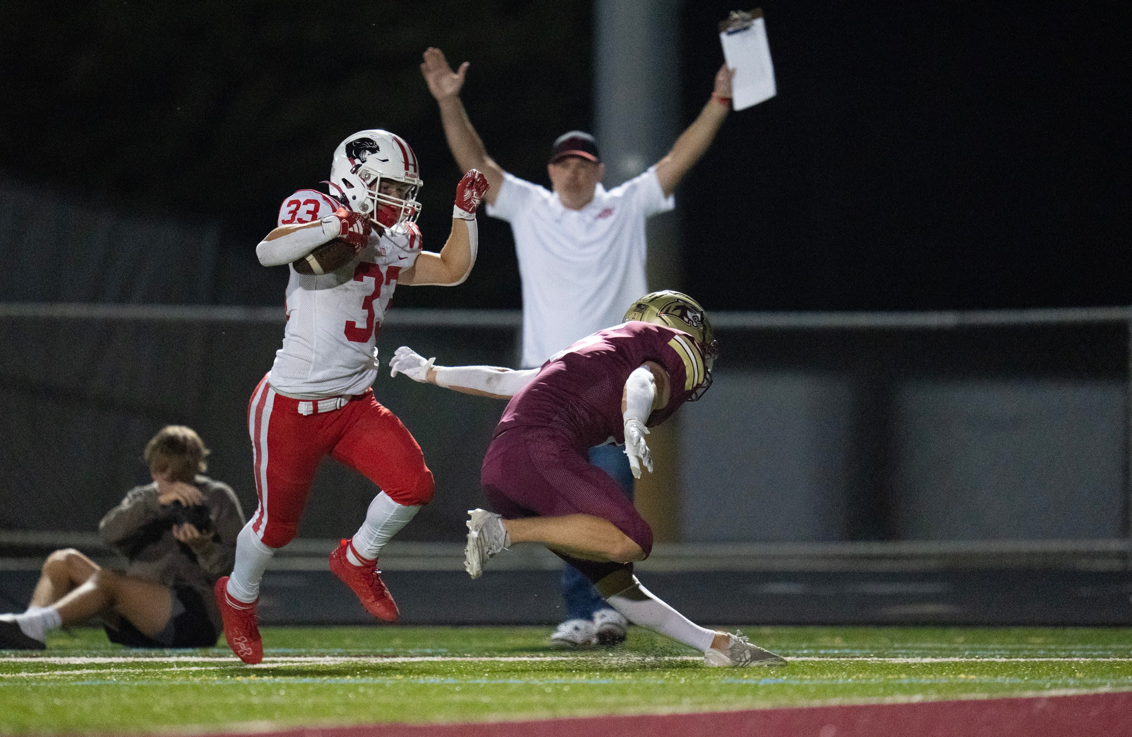 Jim says: I expect Maple Grove to come out firing after a slugfest with Centennial. Both QBs in this one, Kaden Harney of Maple Grove and Peyton Podany of Anoka, are known to toss the ball around the yard a bit. The Crimson took the wind from then-undefeated Anoka’s sails with a 42-19 romp in 2023. I see a similar outcome. The pick: Maple Grove 44, Anoka 24