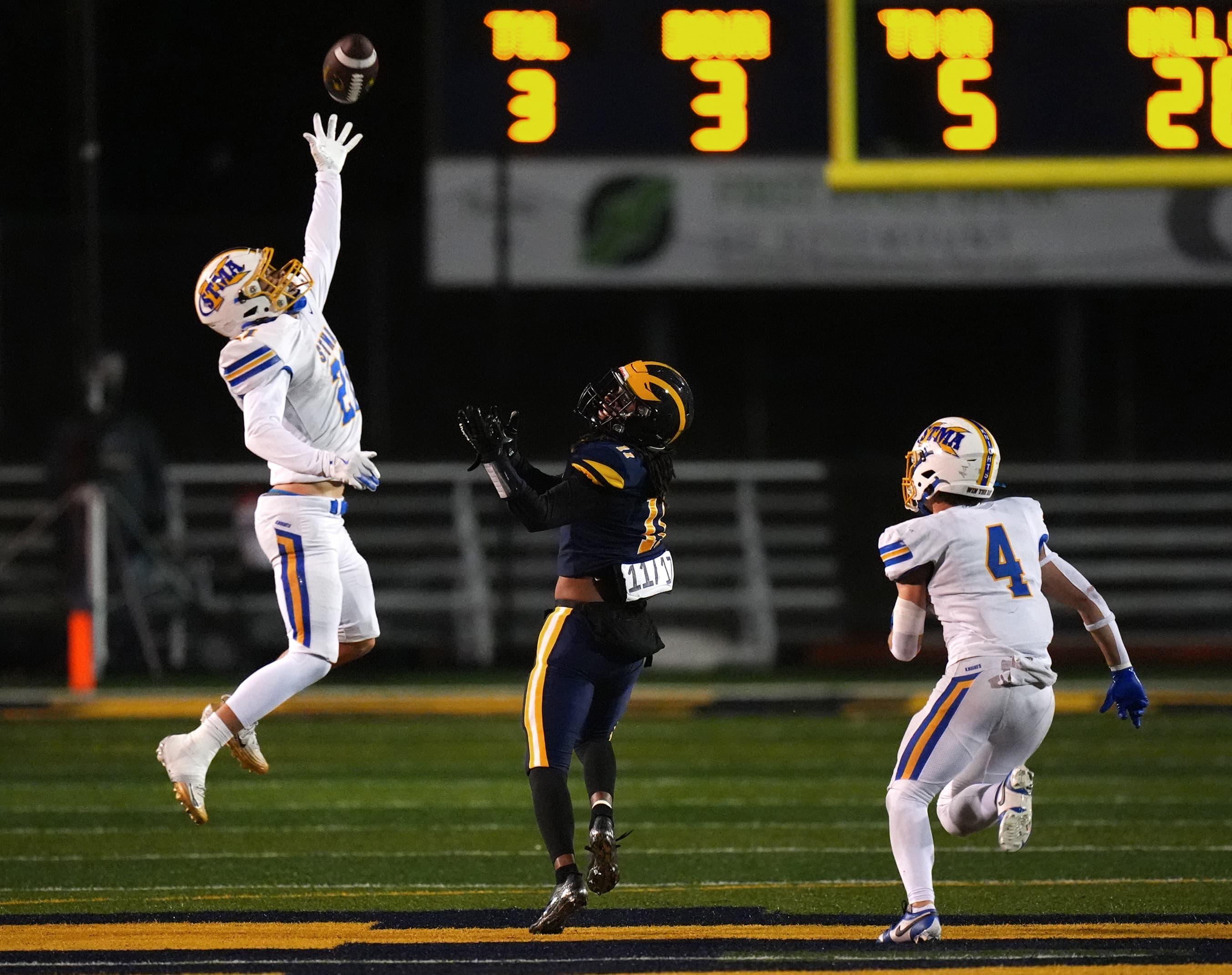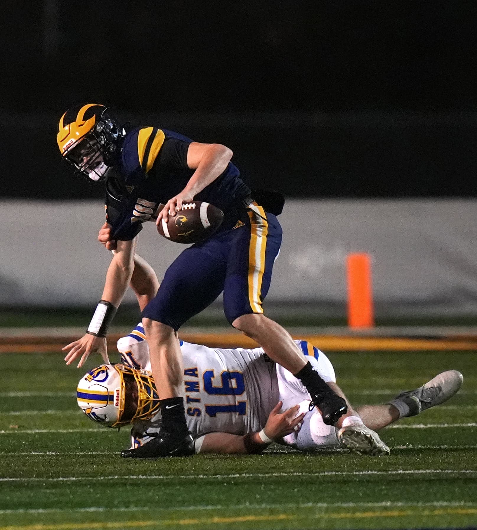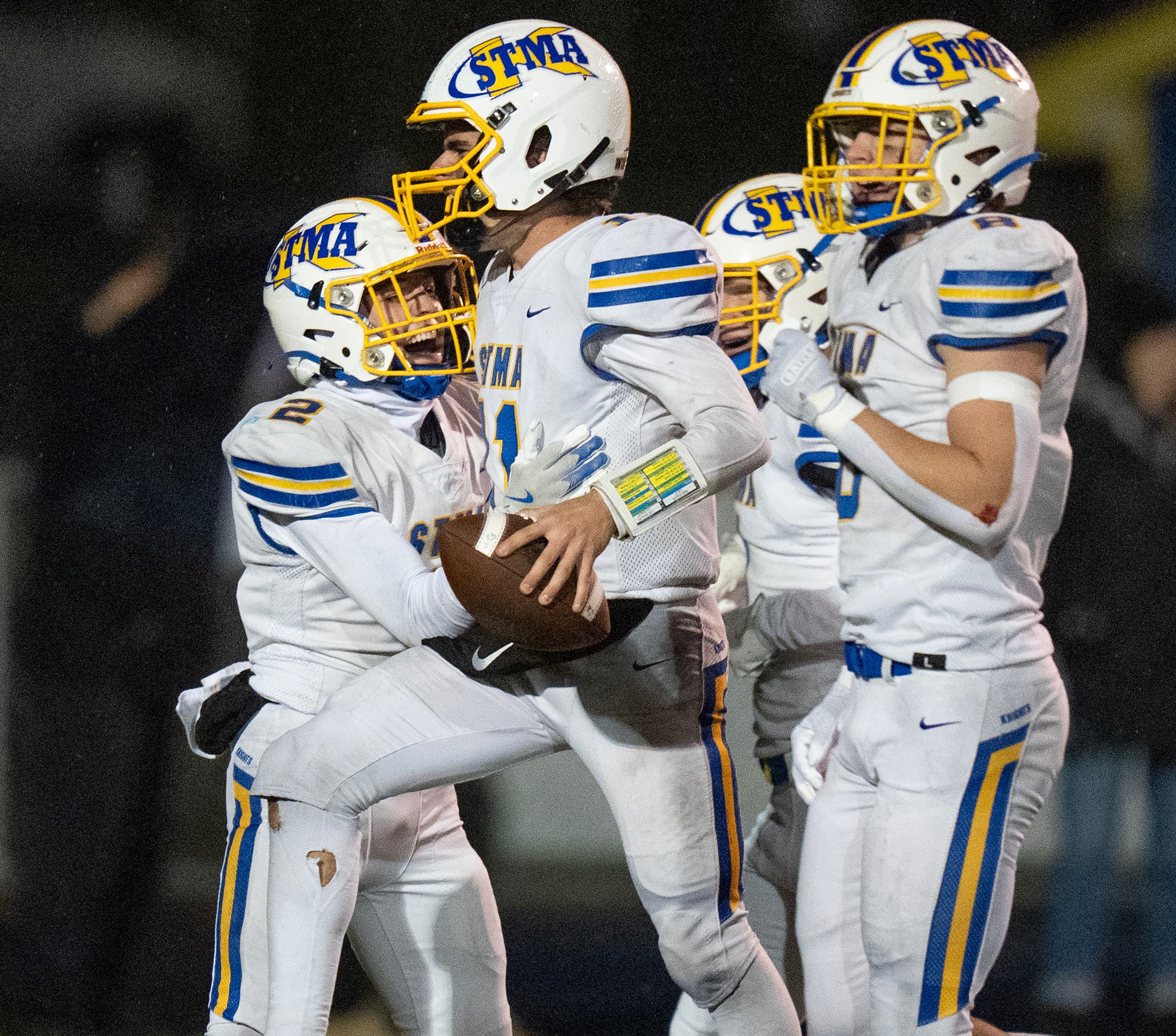 That score lasted for much of the night, until Rosemount fumbled the ball away again in the fourth quarter. And again, St. Michael-Albertville made the Irish pay, marching 89 yards in 15 plays for the game-clinching score by running back Wyatt Mosher.