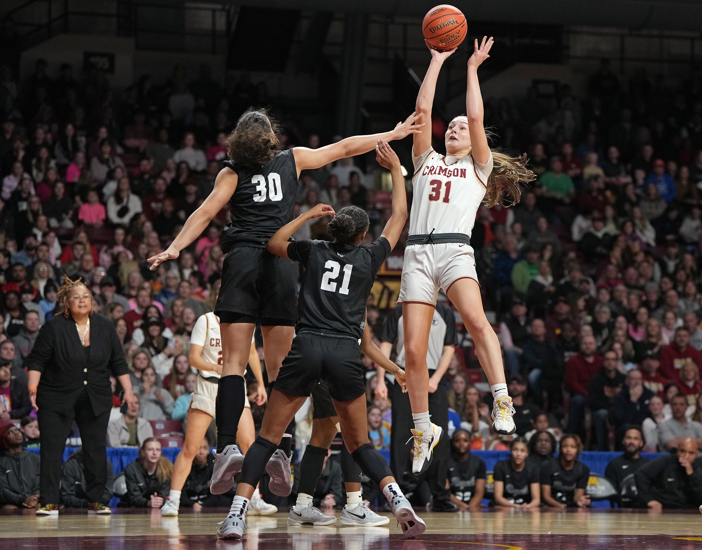 That late surge was needed, too, after an early Hopkins lead. Seeking its first state title, Maple Grove tied the game 46-46 with 12:55 to play. Michigan State commit and Crimson all-time leading scorer Jordan Ode had 26 points and 12 rebounds.