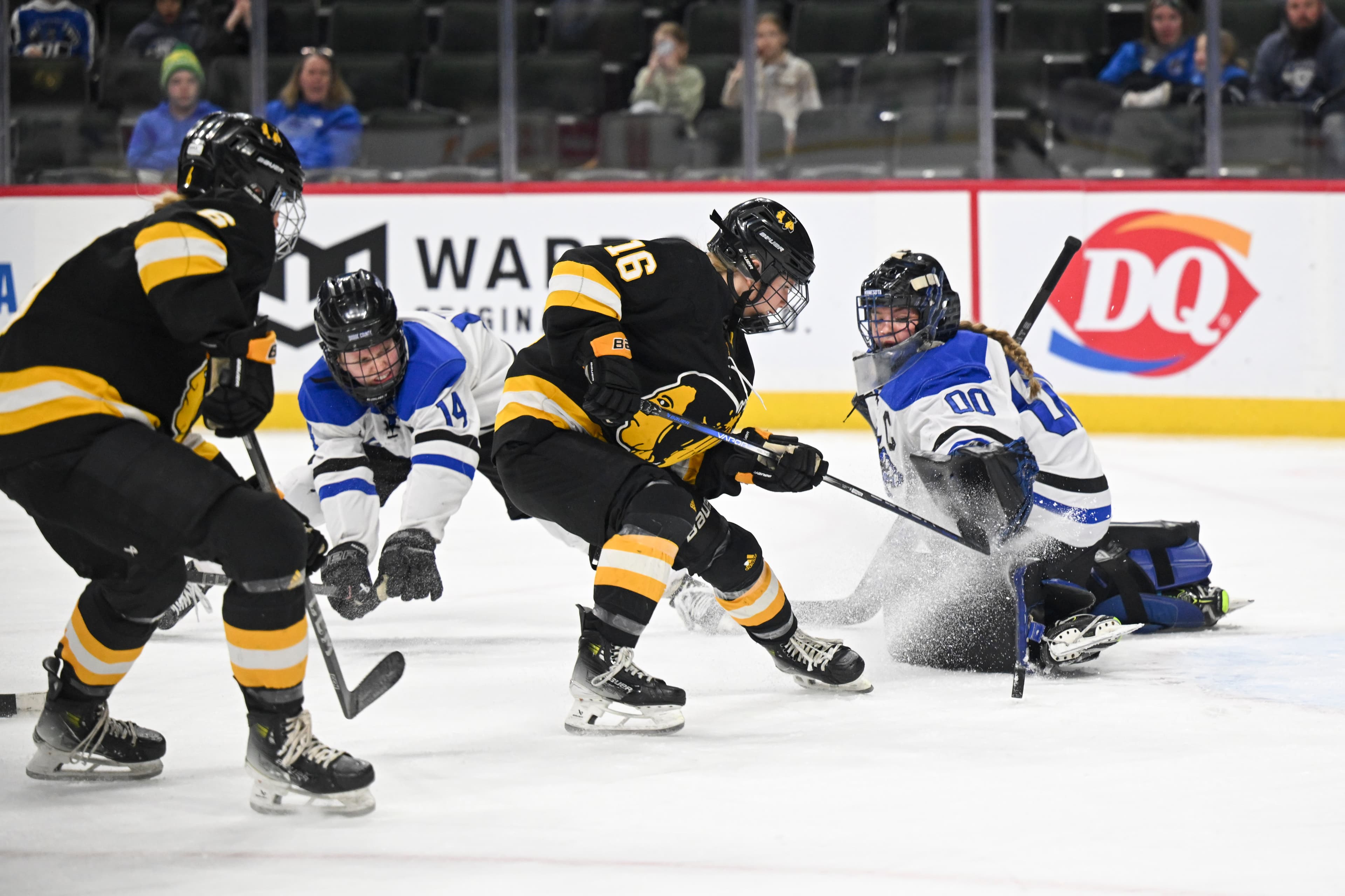 But back-to-back Warroad goals, scored first by sophomore forward Karlee Kalbrener, then junior defender Vivienne Marcowka with eight minutes left, sent the game into overtime.