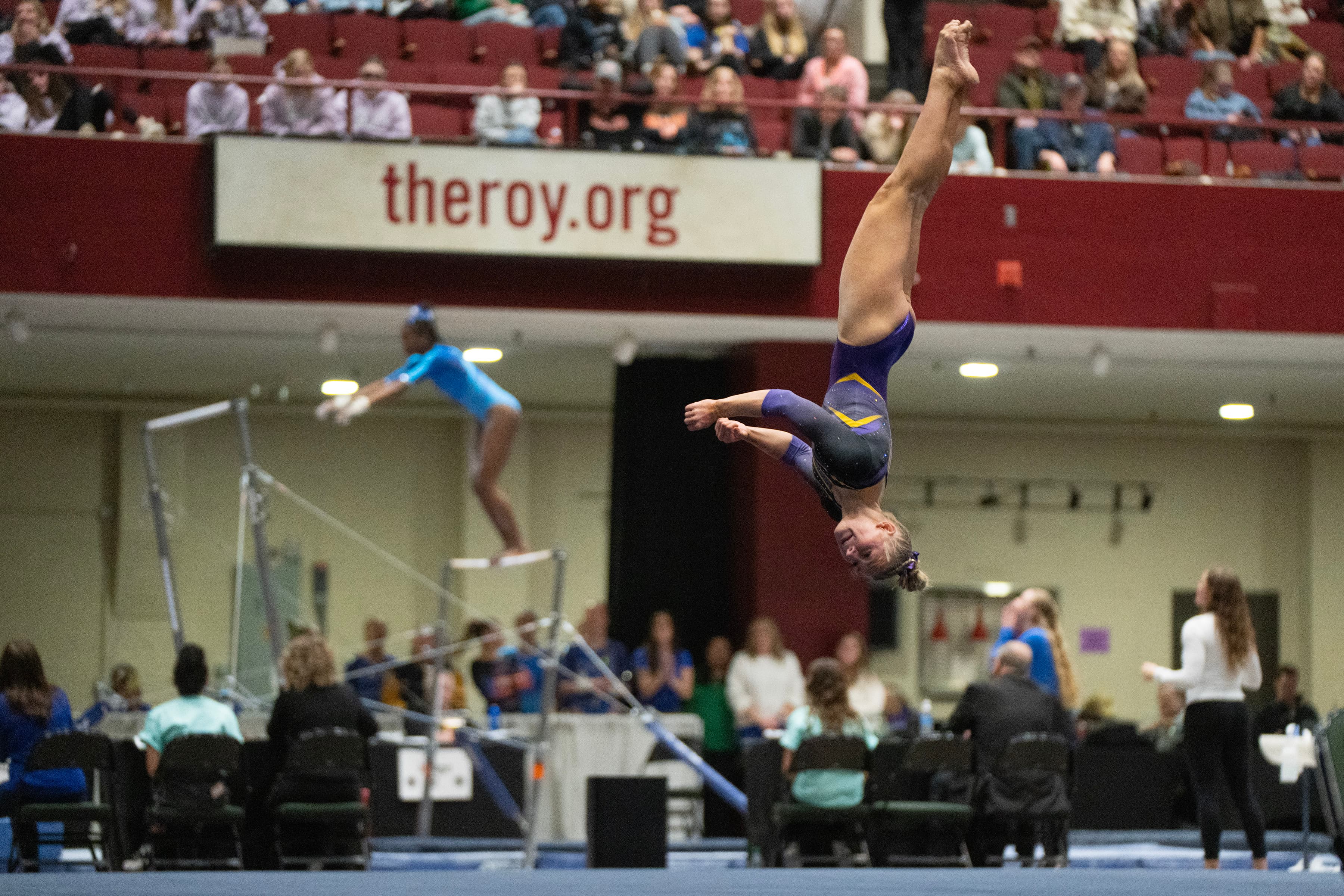Bruegger defeated freshman teammate Hailey Proshek on a tiebreaker, and the other meet came down to the final two routines.
