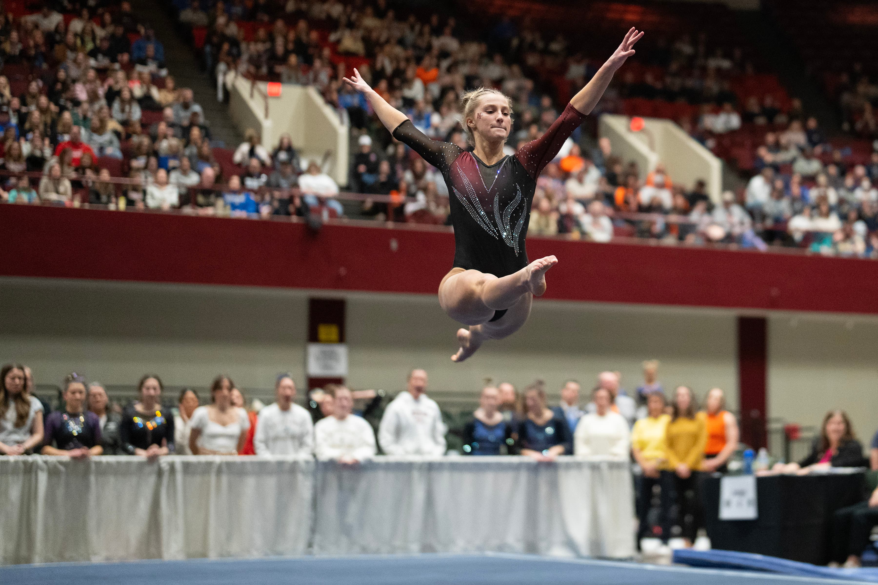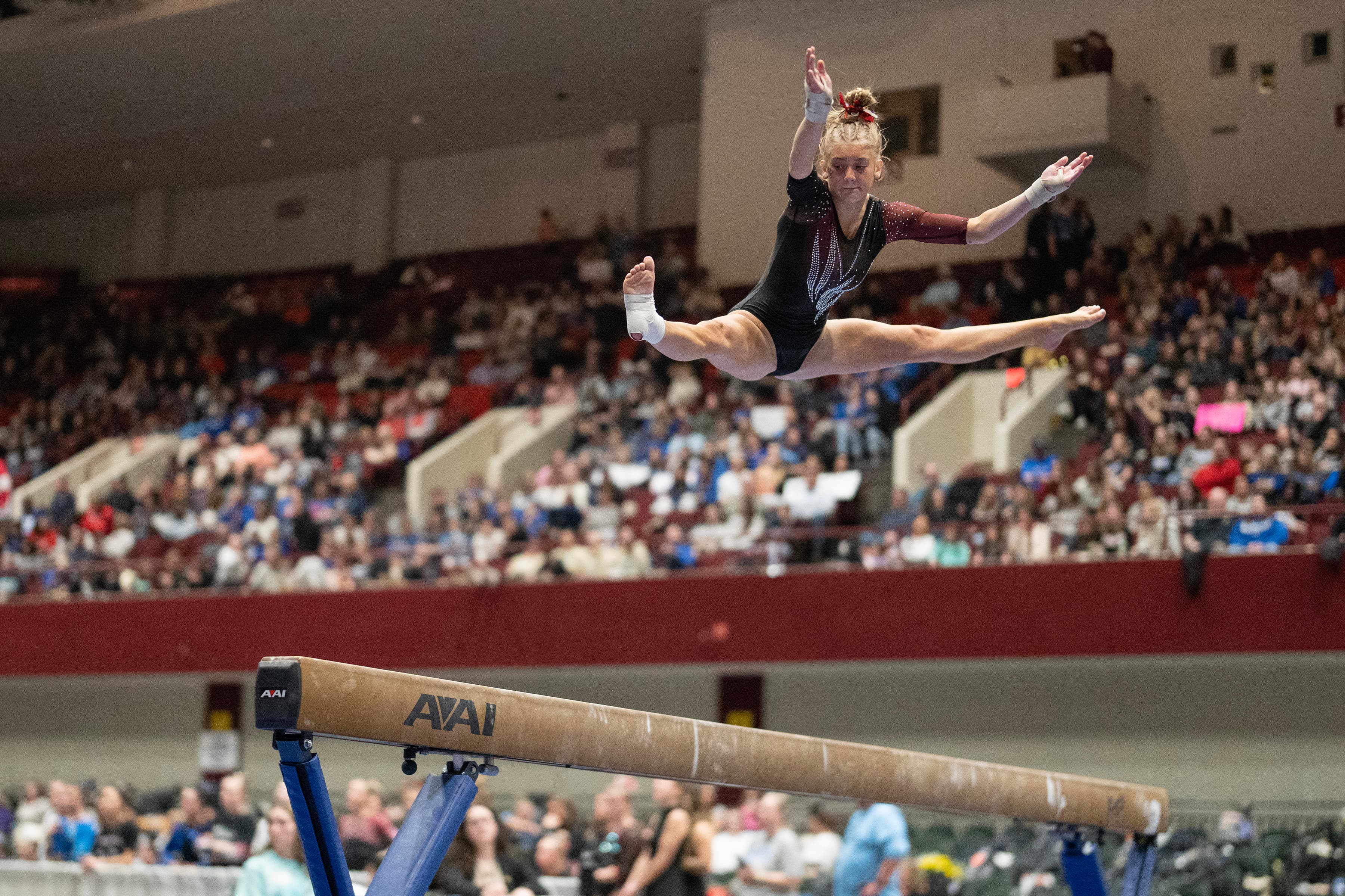 Esget is a three-time state champion, winner on the uneven bars in 2023 and 2024 and of the all-around in 2024, but she said defending her titles was not her priority in the meet.