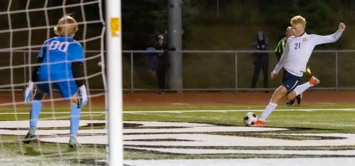 But Mayo (15-1-2) answered two minutes later, with Cadel Wolf’s 18th goal coming off an error from Crimson senior keeper Zander Waldrum. Waldrum responded with an improbable point-blank save in the second half that kept the game level.