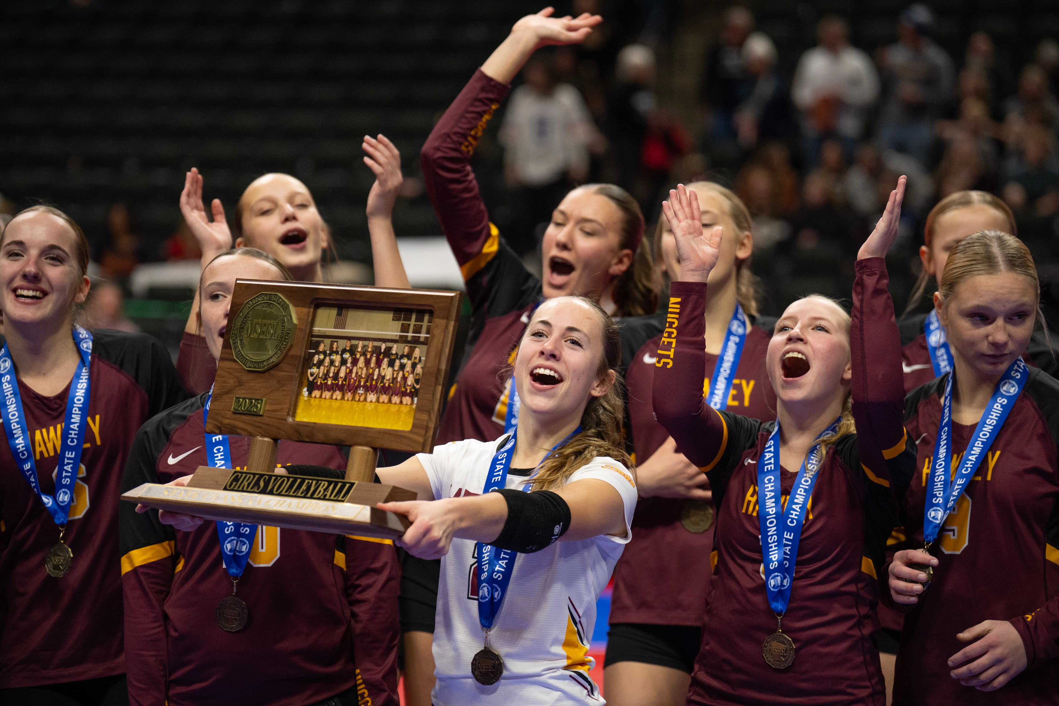 Hawley takes Class 2A in five-set thriller; Mayer Lutheran sweeps for 1A title