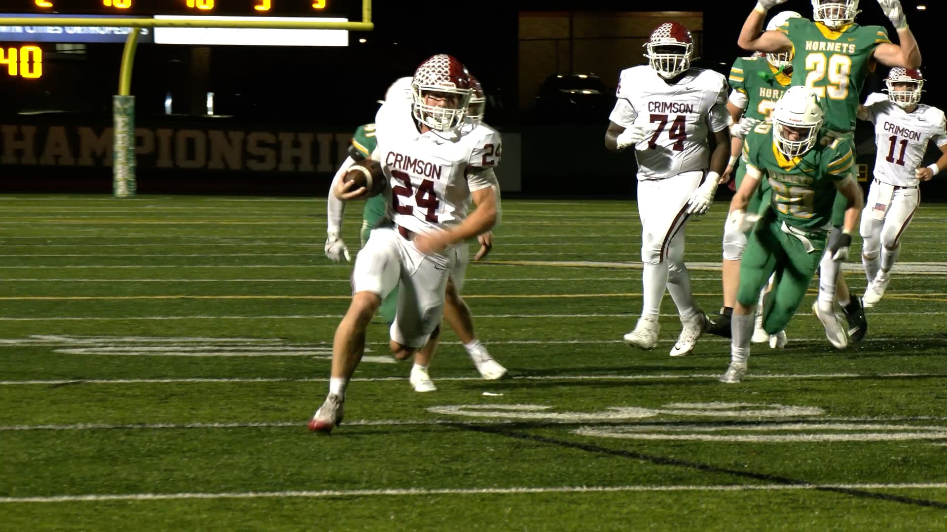 Maple Grove took a 13-7 lead in the third quarter with another Harney-to -Engle connection. Despite the downpour, the Crimson moved the ball with ease. Harney connected with Henry Knutson for a 54-yard touchdown pass, giving Maple Grove a 20-7 lead.