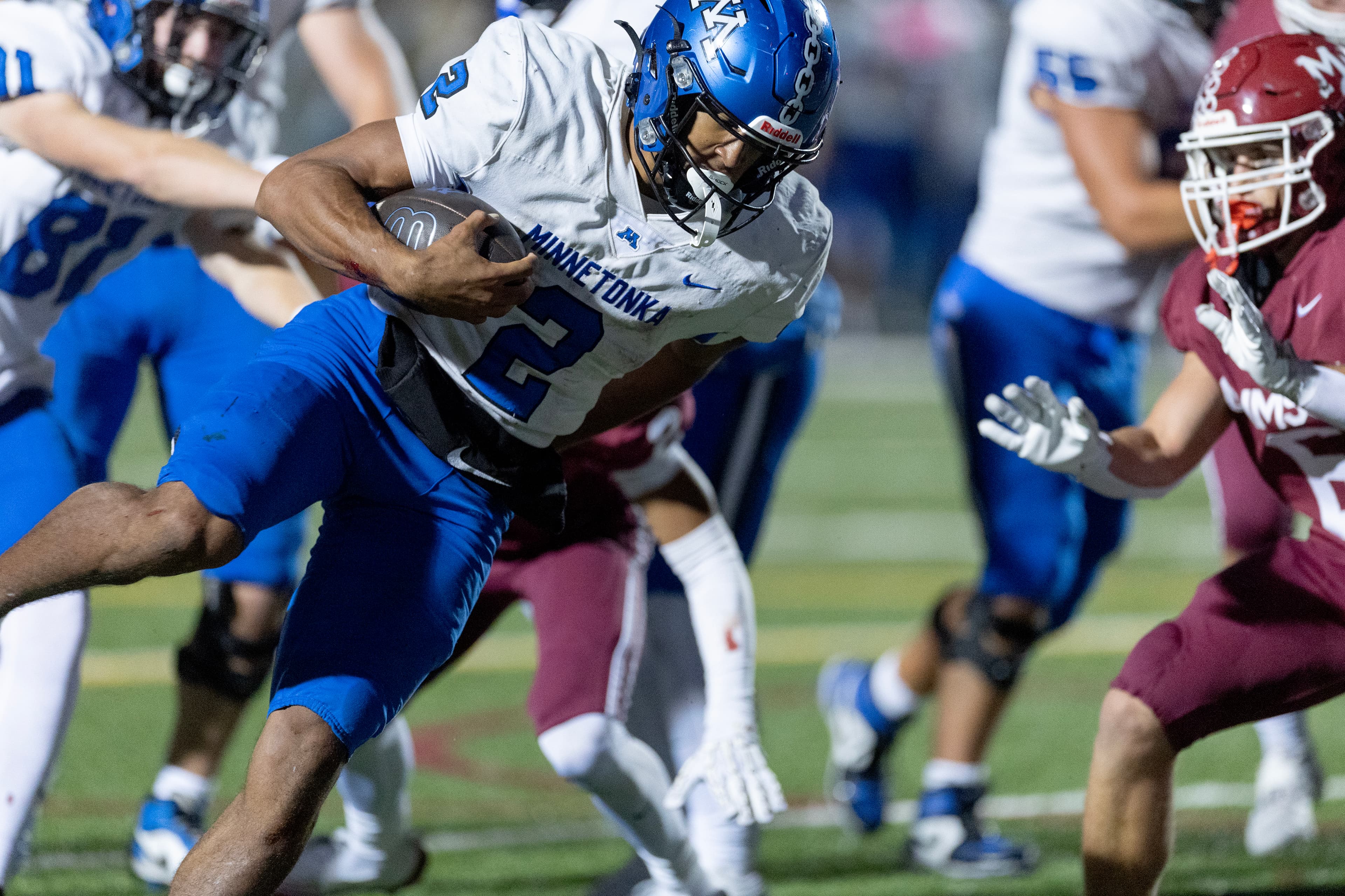 Minnetonka controlled the line of scrimmage in the first quarter en route to a 14-0 lead. Quarterback Caleb Francois led the Skippers on consecutive scoring drives, capping them himself with short touchdown runs.