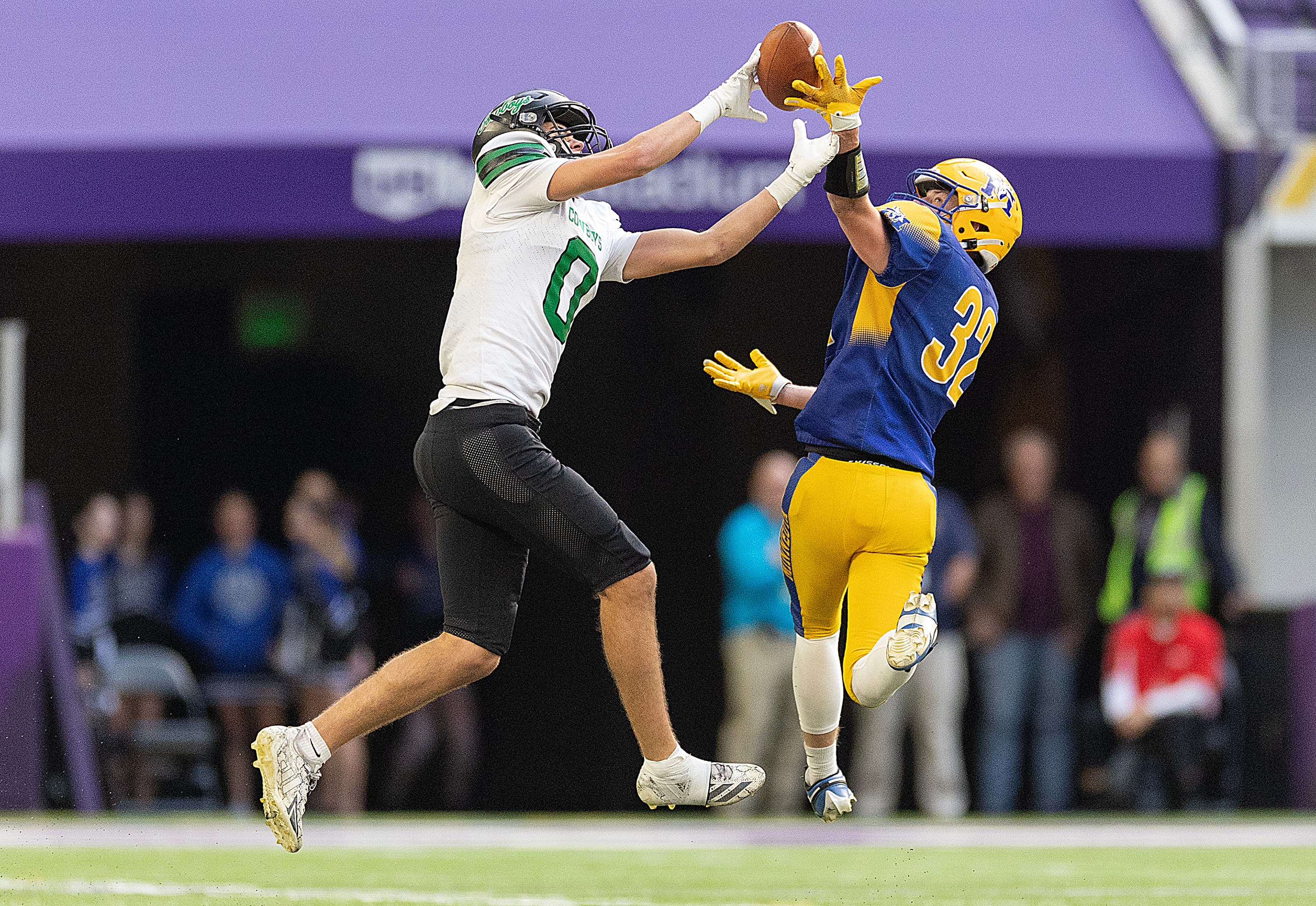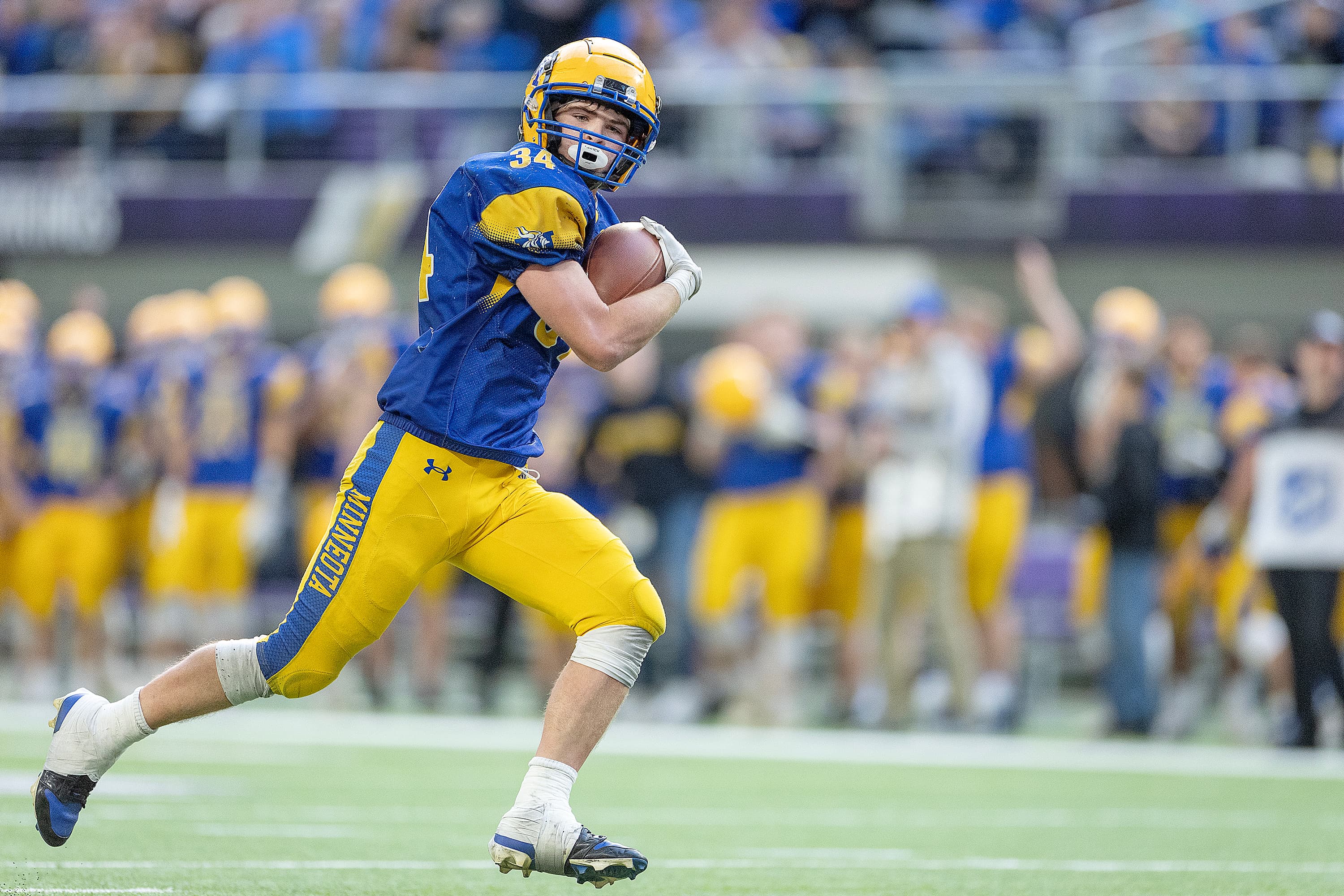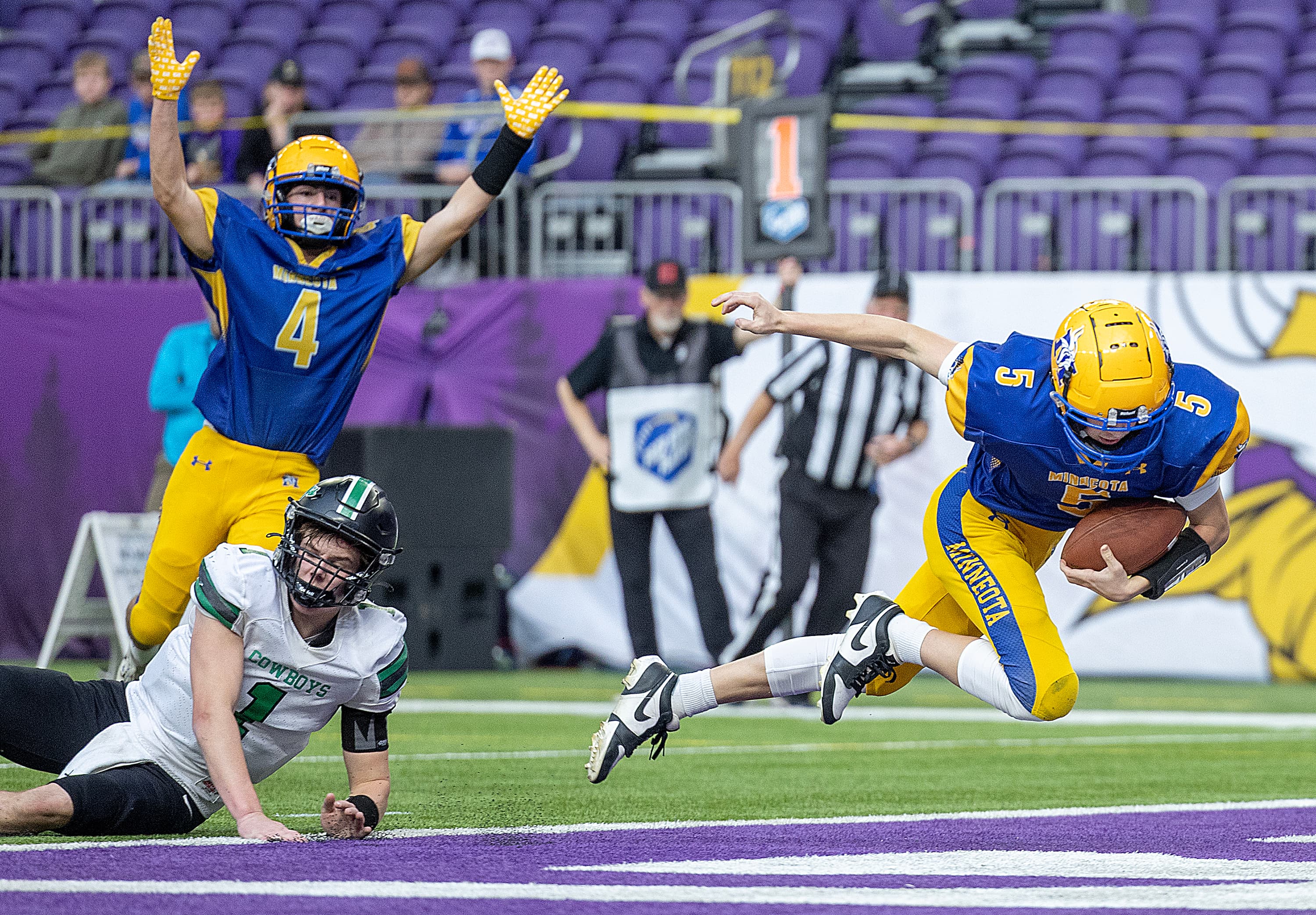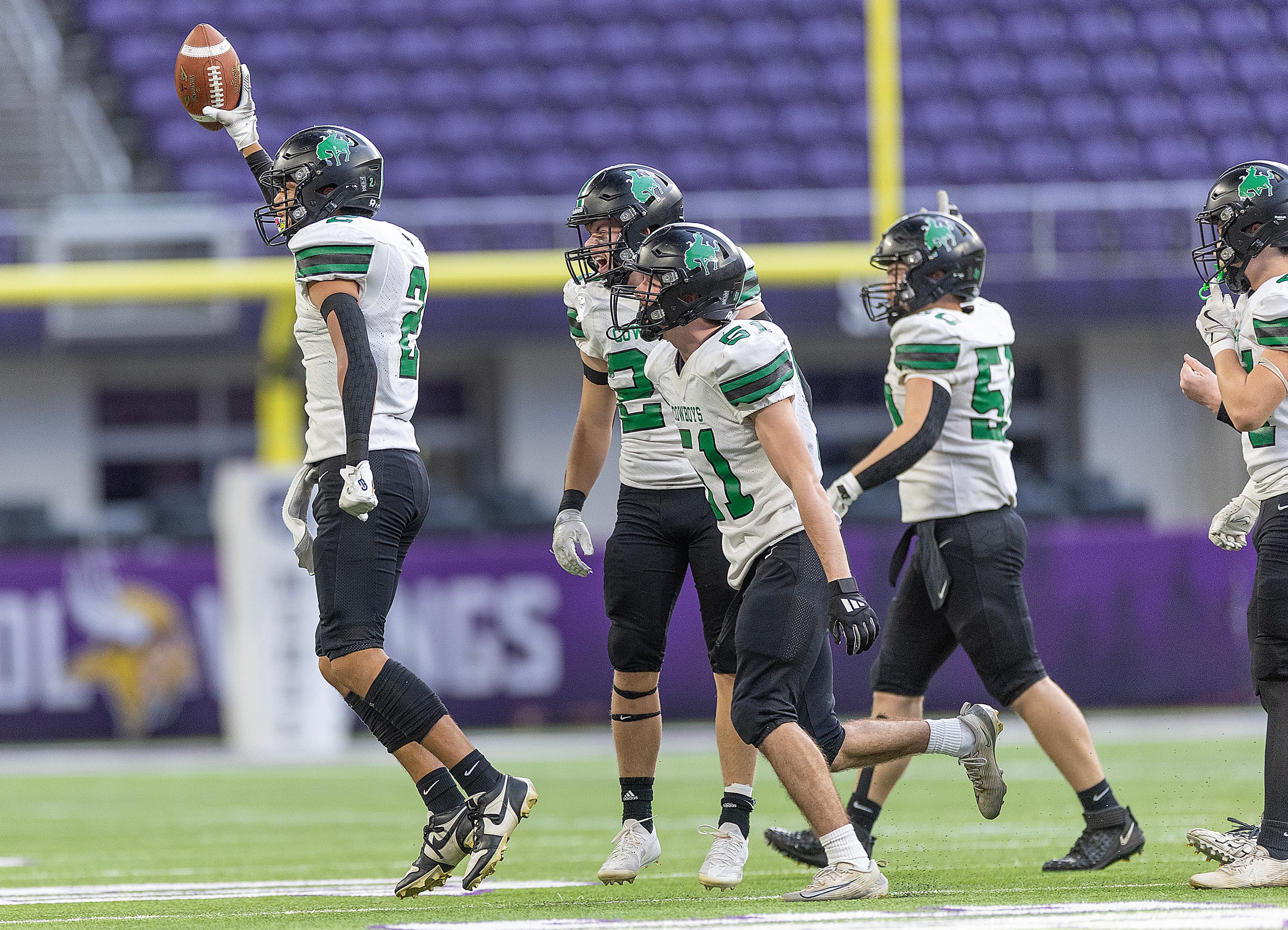 That started Minneota’s roll, which continued with a 44-yard touchdown pass by Sussner later in the quarter. After sophomore Randy Sorensen reached a glove toward U.S. Bank Stadium’s glass ceiling and intercepted a pass from Kappes, Sussner connected with Landon Esping on a flea-flicker that ended with Esping strolling into the end zone without any Breckenridge players on his tail.