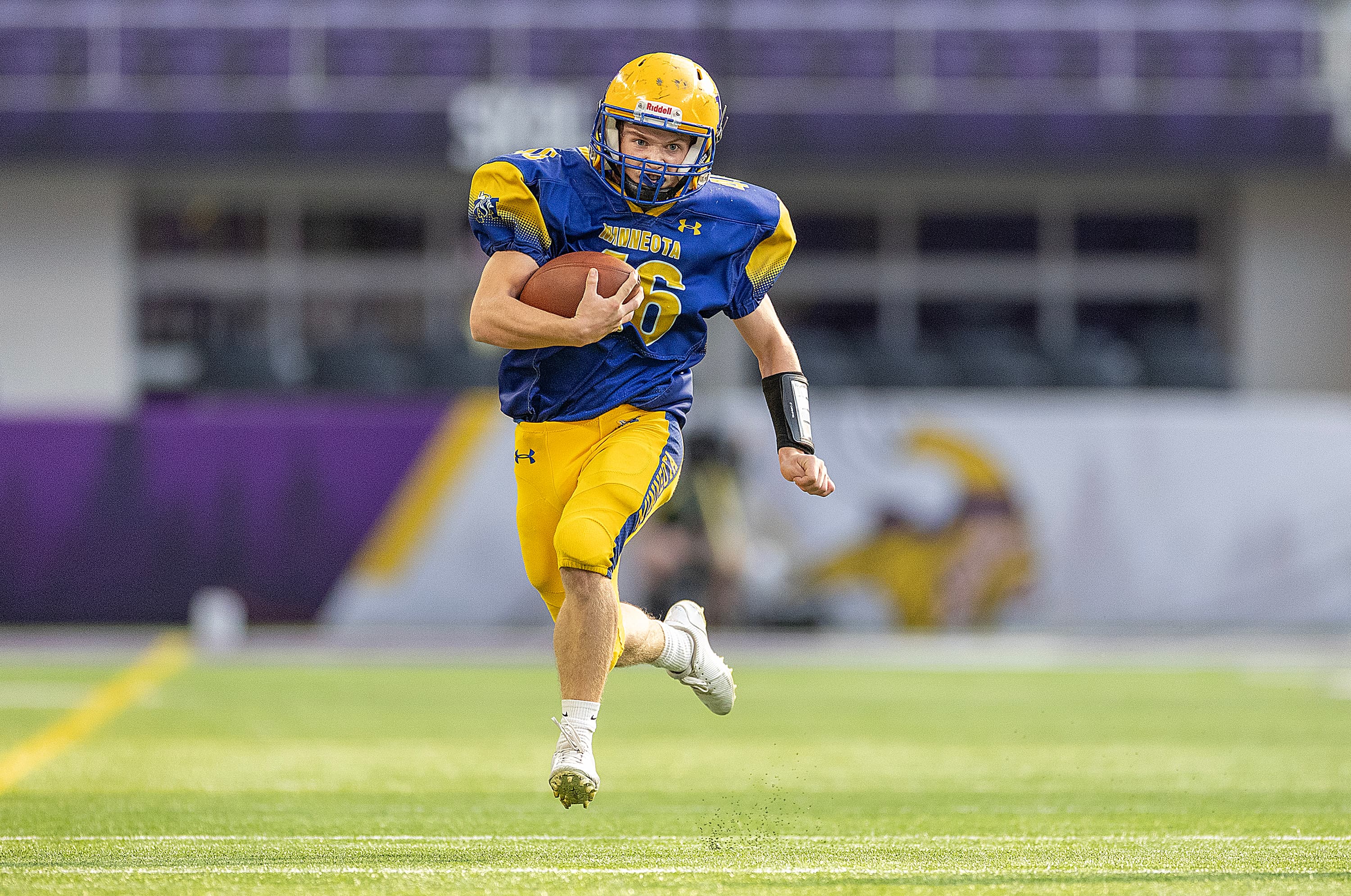 In the second quarter, the Vikings got their chance. Quarterback Tristen Sussner flicked a 23-yard pass to Brock Fier and set up a 1-yard rushing touchdown by Sussner.