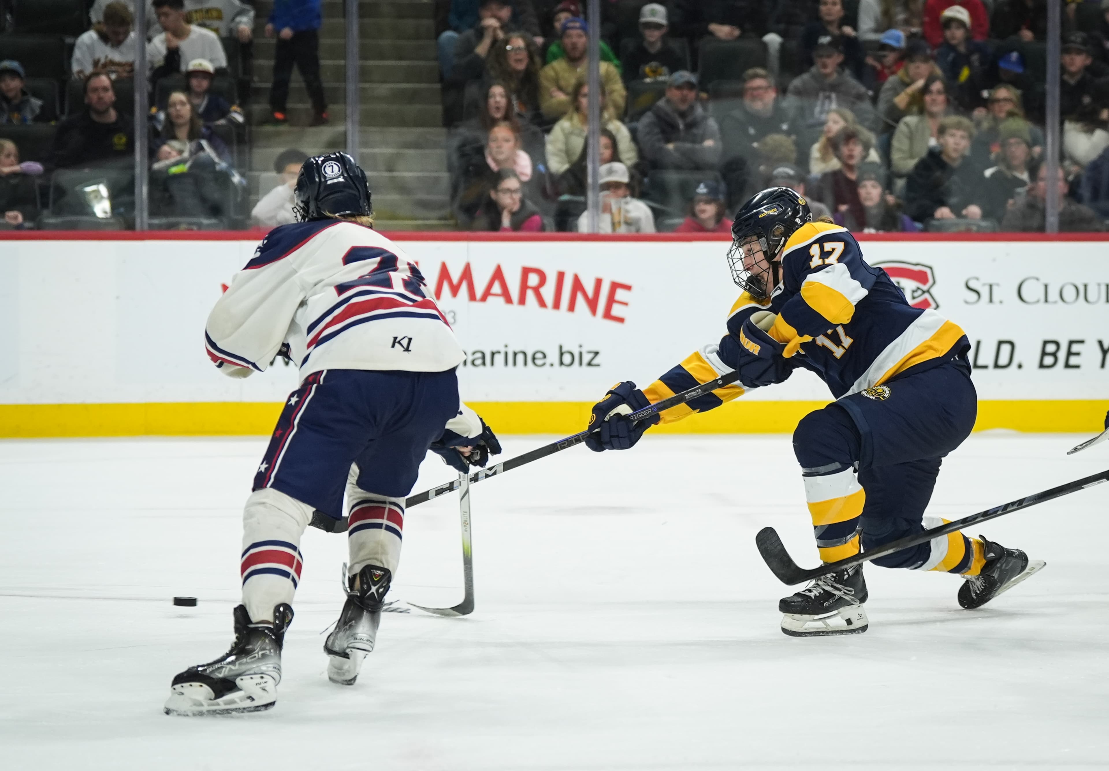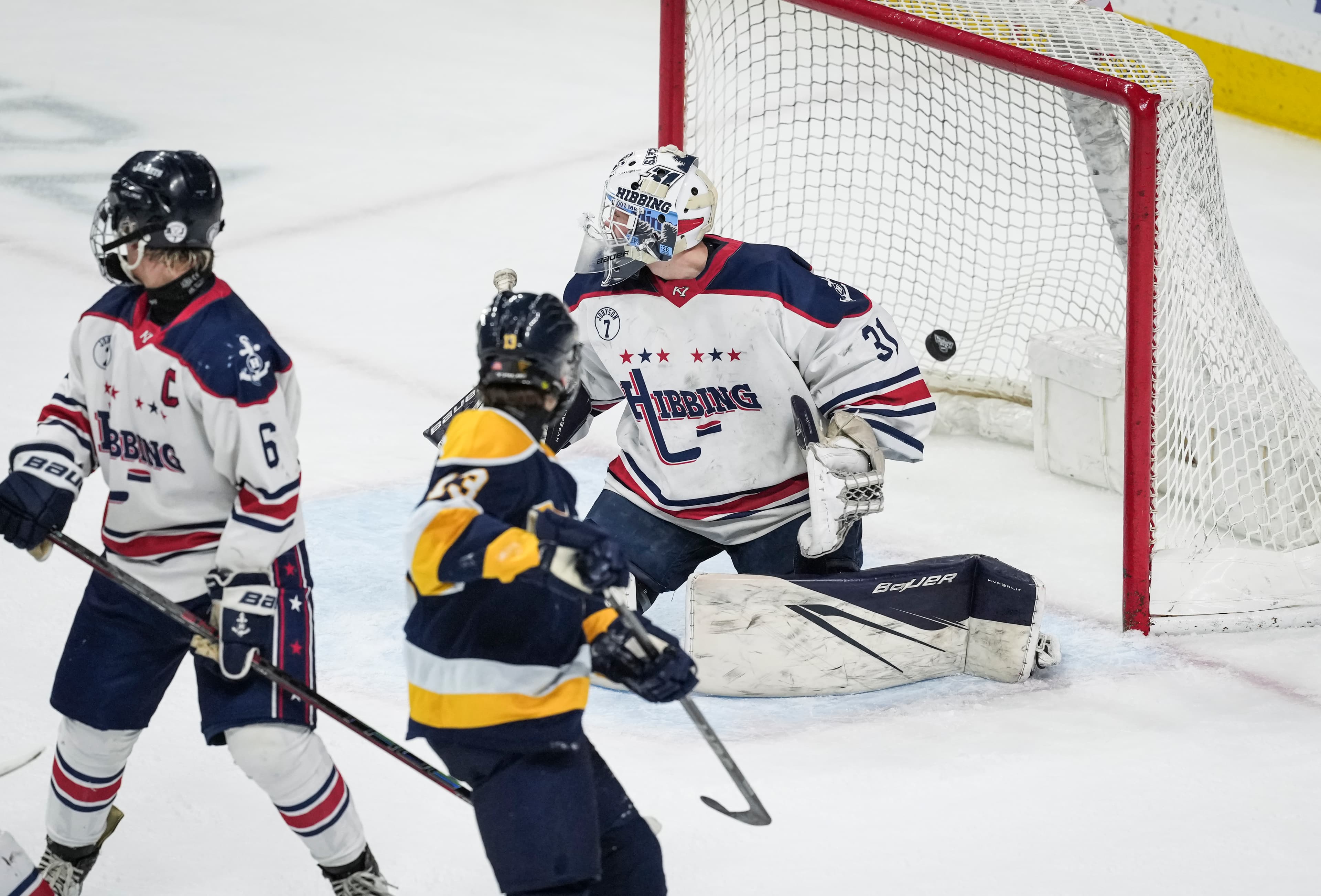 Hibbing carried the No. 1 rating into the 11 a.m. game against Mahtomedi. The national anthem still had echoes reverberating through the building when Jackson Strukel carried the puck into the offensive zone and rifled in a goal after 17 seconds.