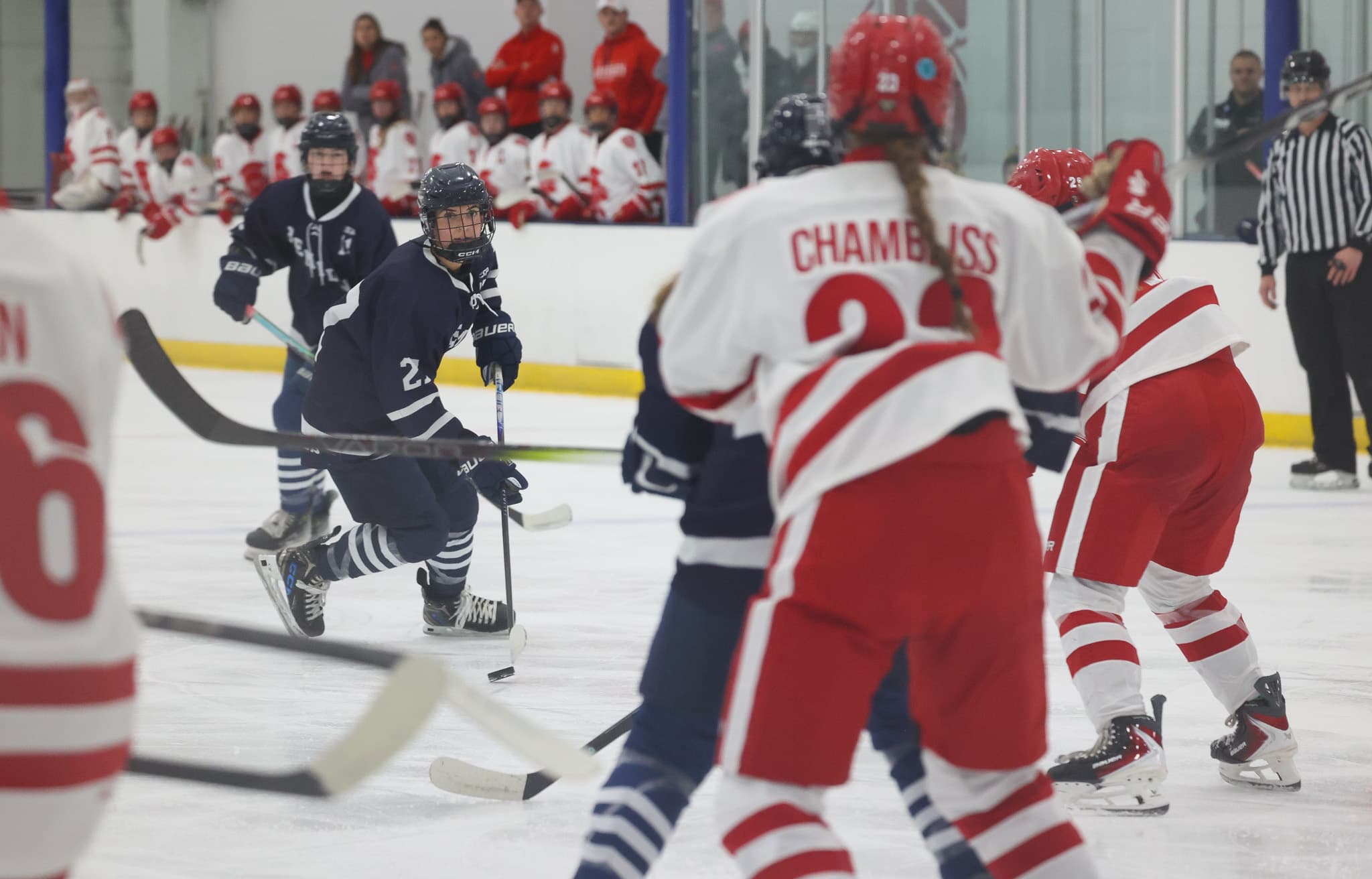 In the Pioneers’ toughest test yet — a rematch of last year’s Class 2A title game — Hill-Murray stayed undefeated by beating Edina, 4-3. Junior Emily Pohl (Wisconsin) picked up three helpers in the Pioneers’ three-goal second period, and the Pioneers fended off the Hornets’ late comeback attempt.