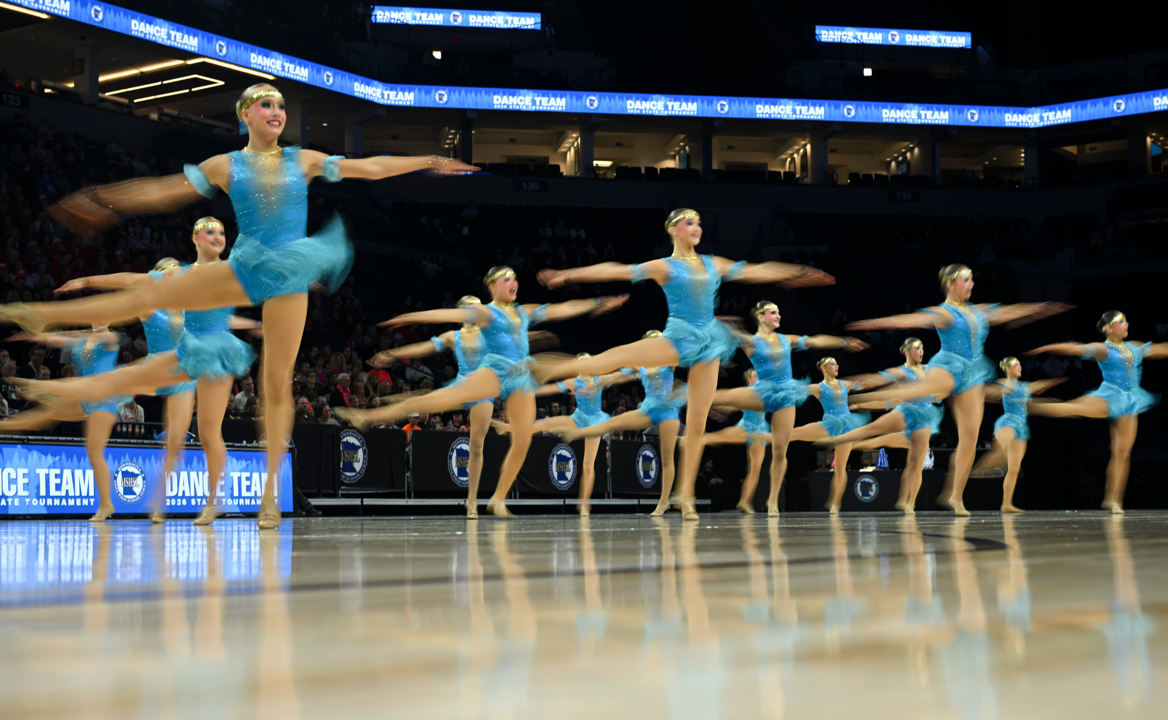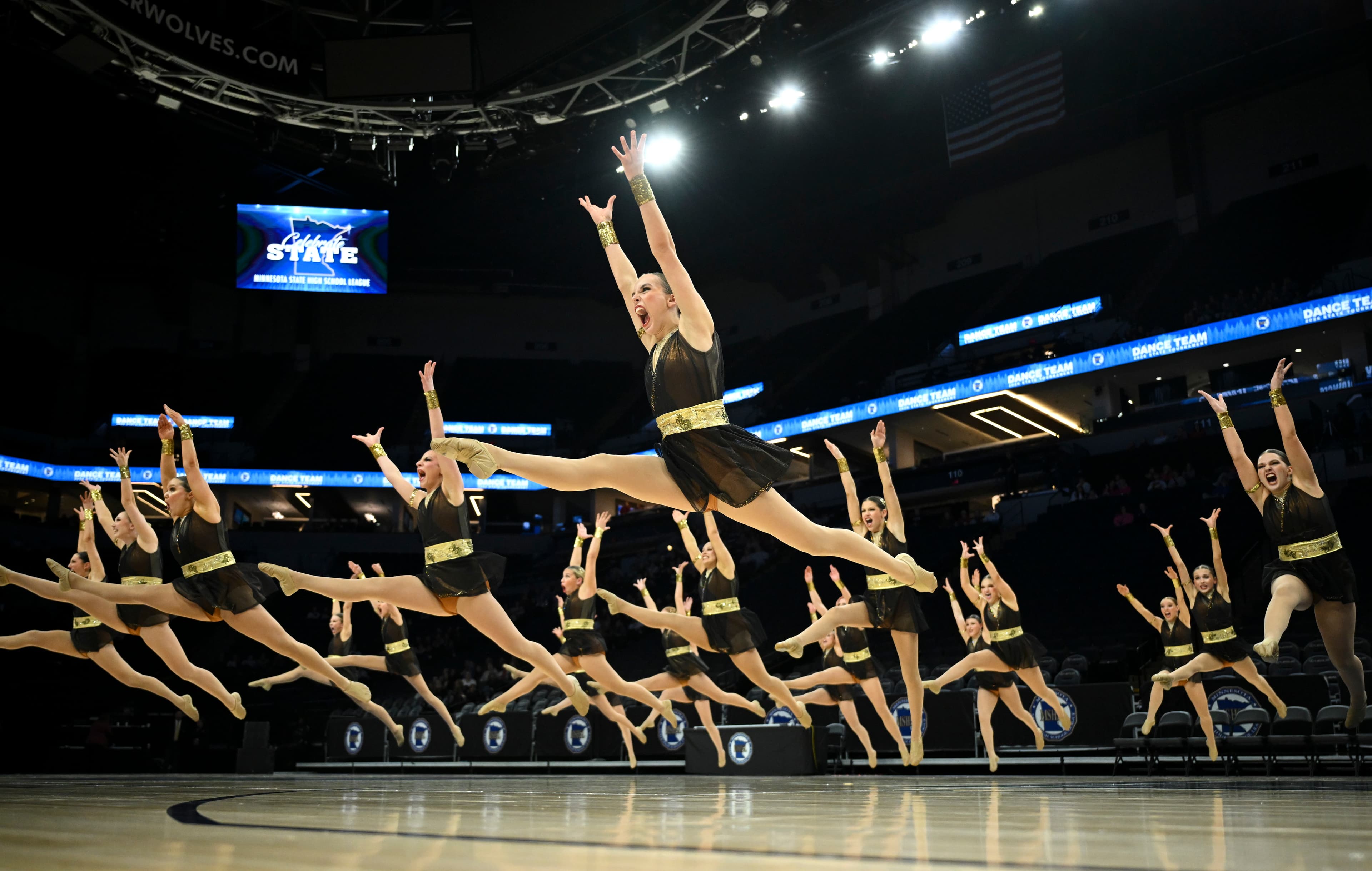 Minnesota’s 36 high school high kick dance teams took a trip around the world within the confines of Target Center during the state tournament on Saturday, Feb. 14.