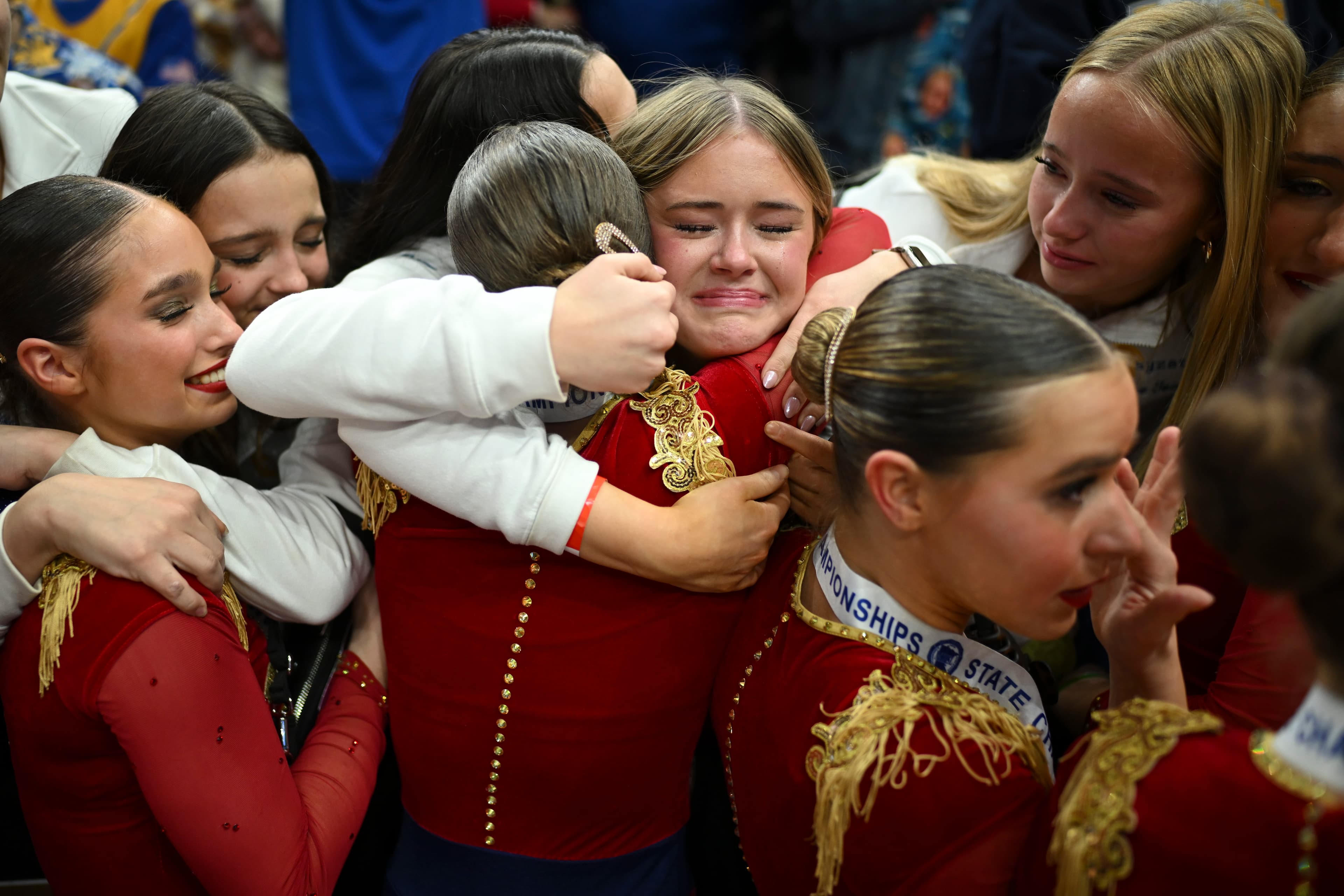 Italian flags twirled in the air from the stands as the Totino-Grace E’Gals were named the 2A state high kick champs for the third year in a row. The team, clad in crisp white pantsuits and ascots, huddled together in tears.