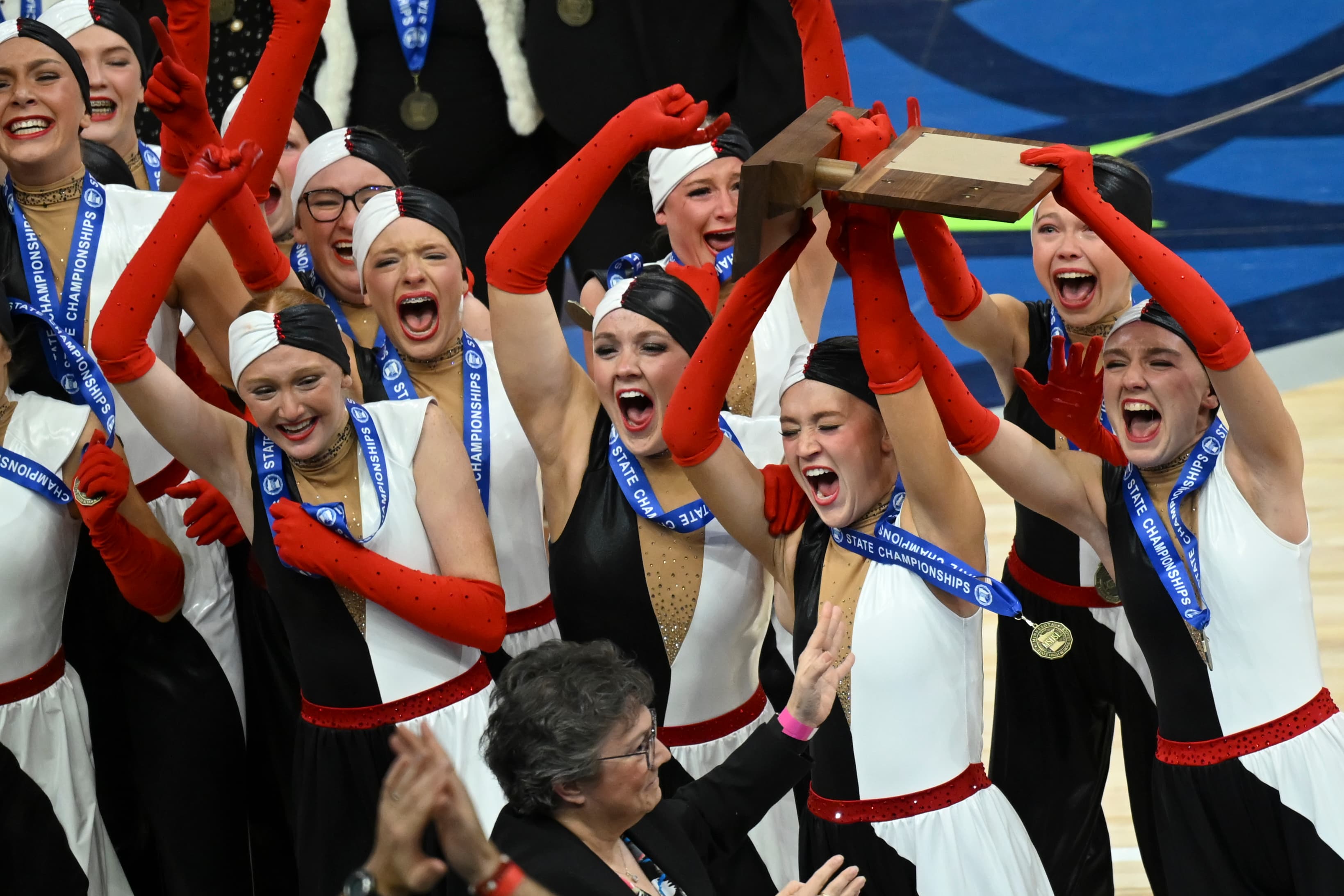 Forty-two red-gloved hands wrapped around the 1A high kick state title trophy. St. Cloud Cathedral’s Cruella de Vil-inspired “Born to be Bad” routine secured a score of 6 and the Crusaderette’s first state high kick title since 2023.