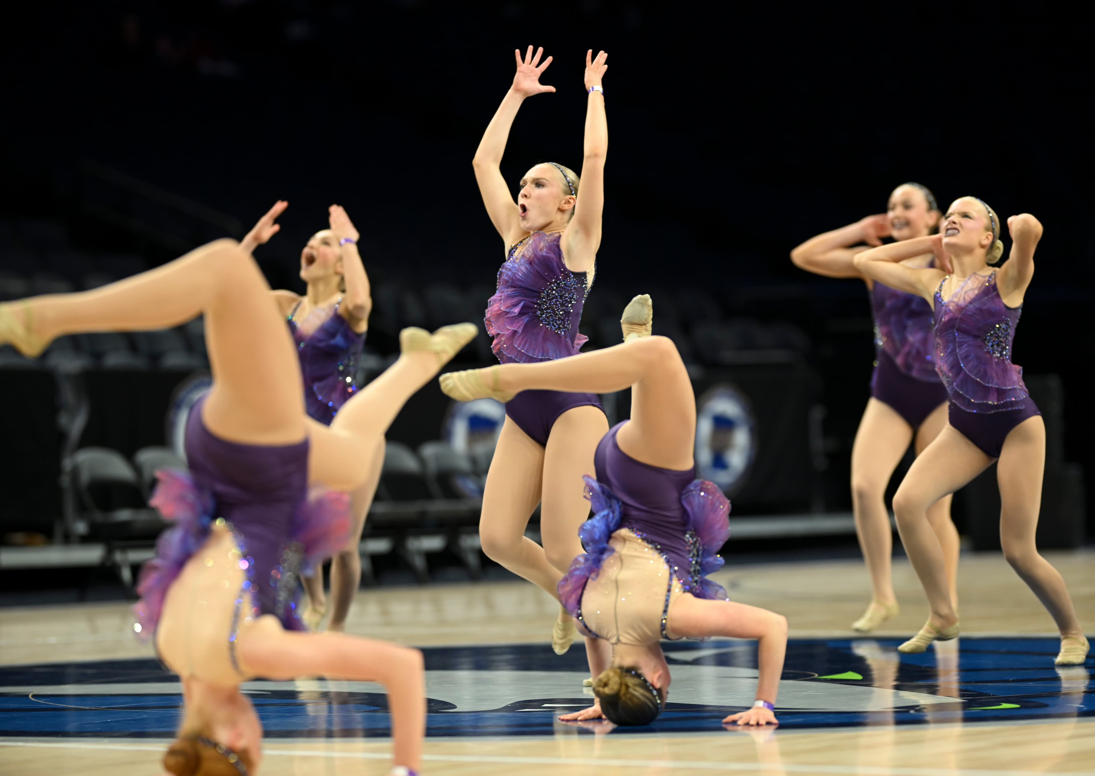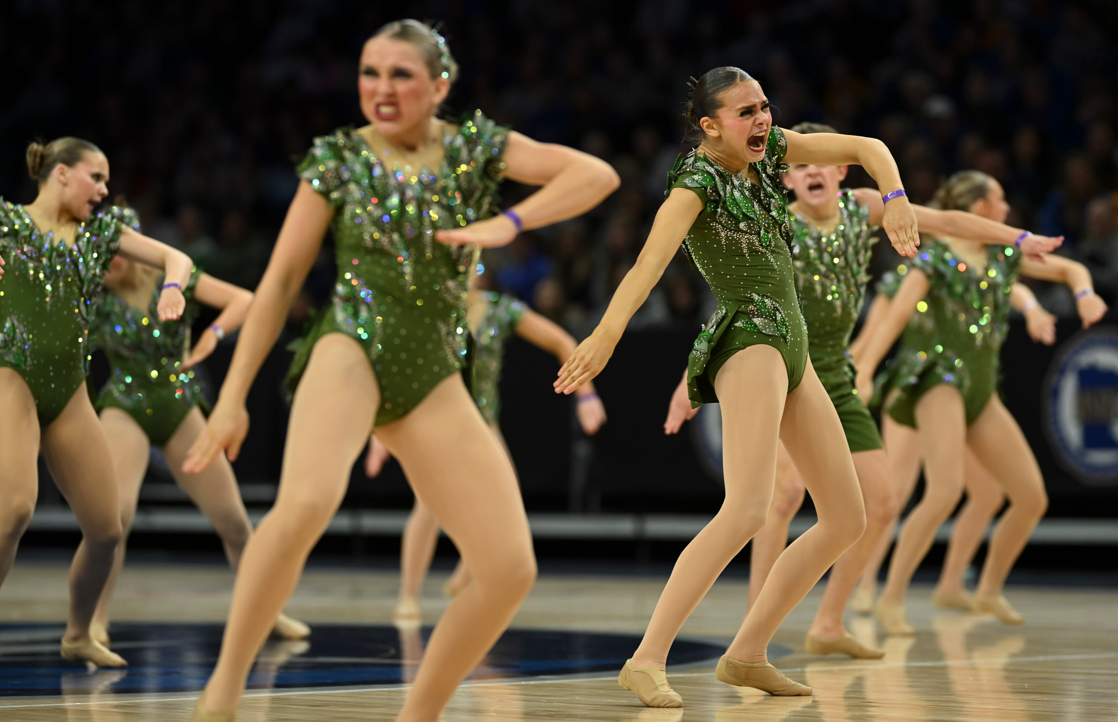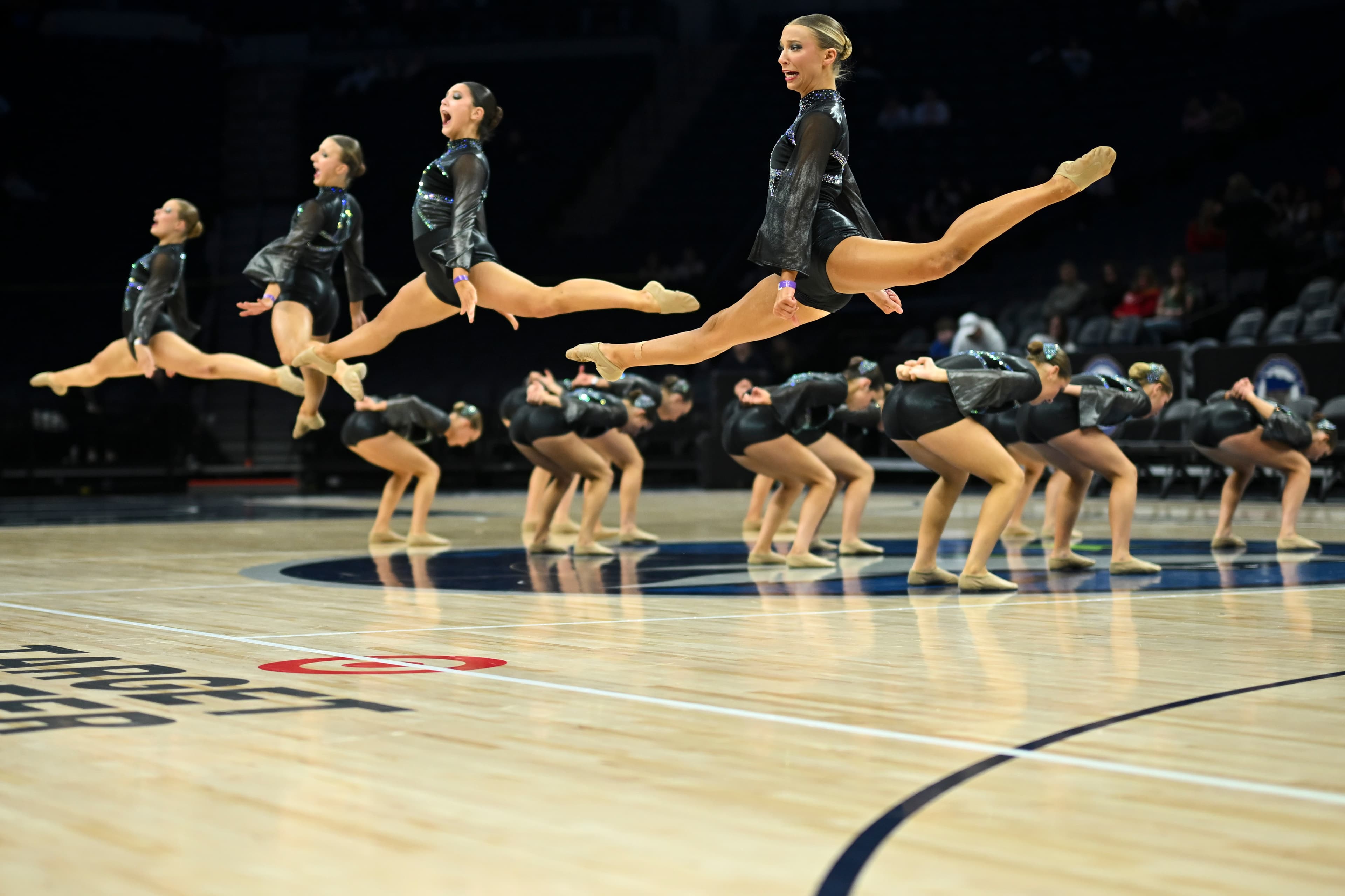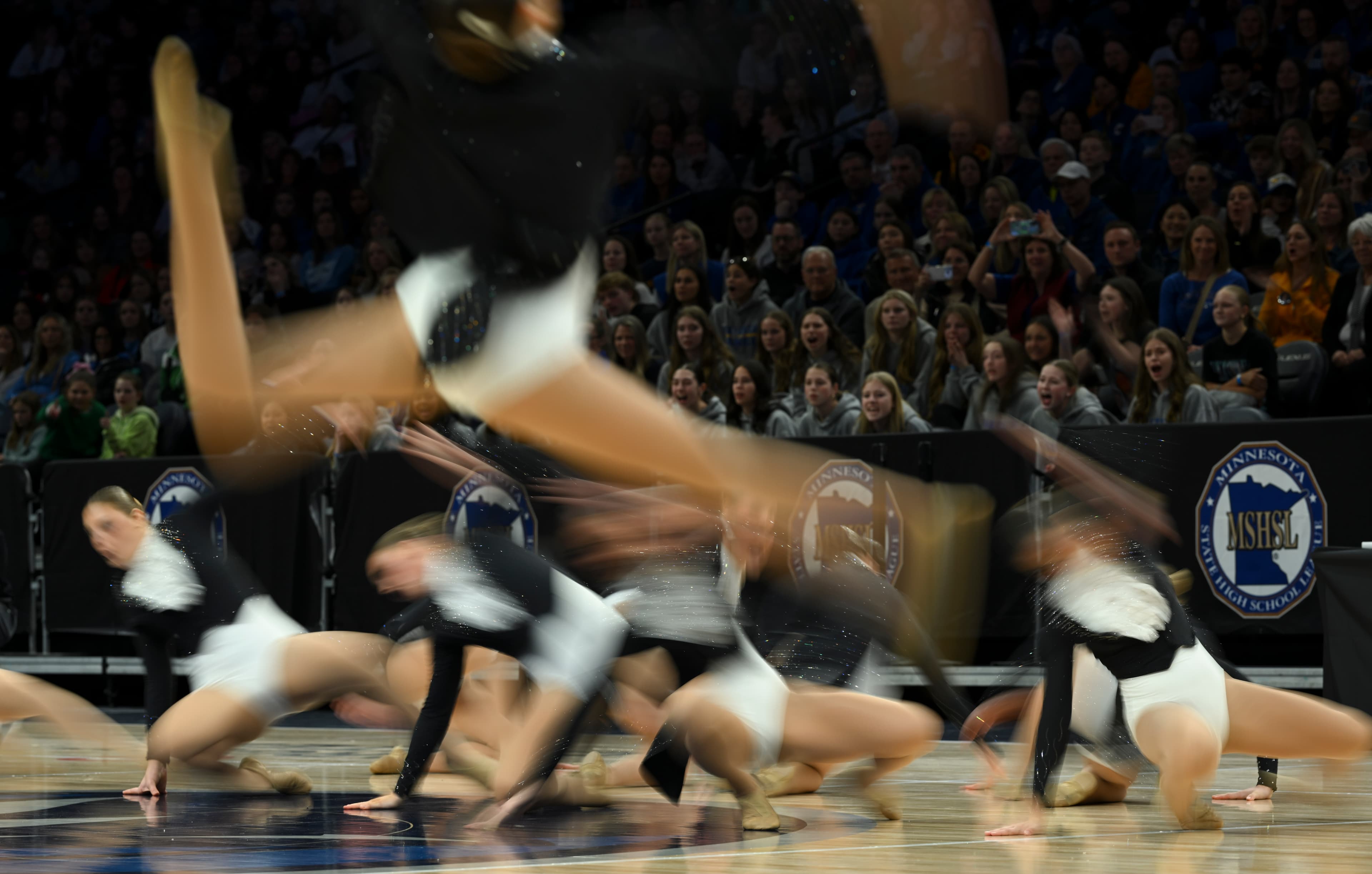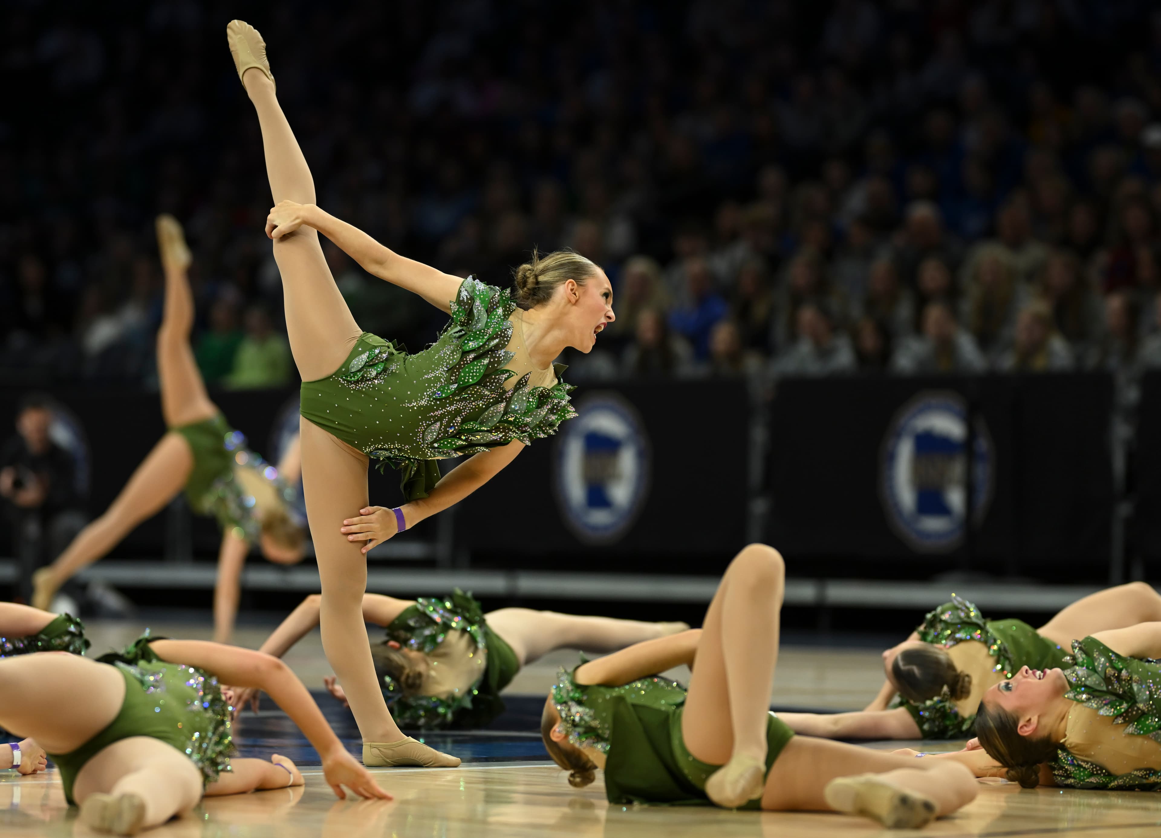 With pointed toes, slicked-back buns and thousands of rhinestones, 36 dance teams pirouetted onto center court at Target Center for the Minnesota jazz state tournament on Friday, Feb. 13.