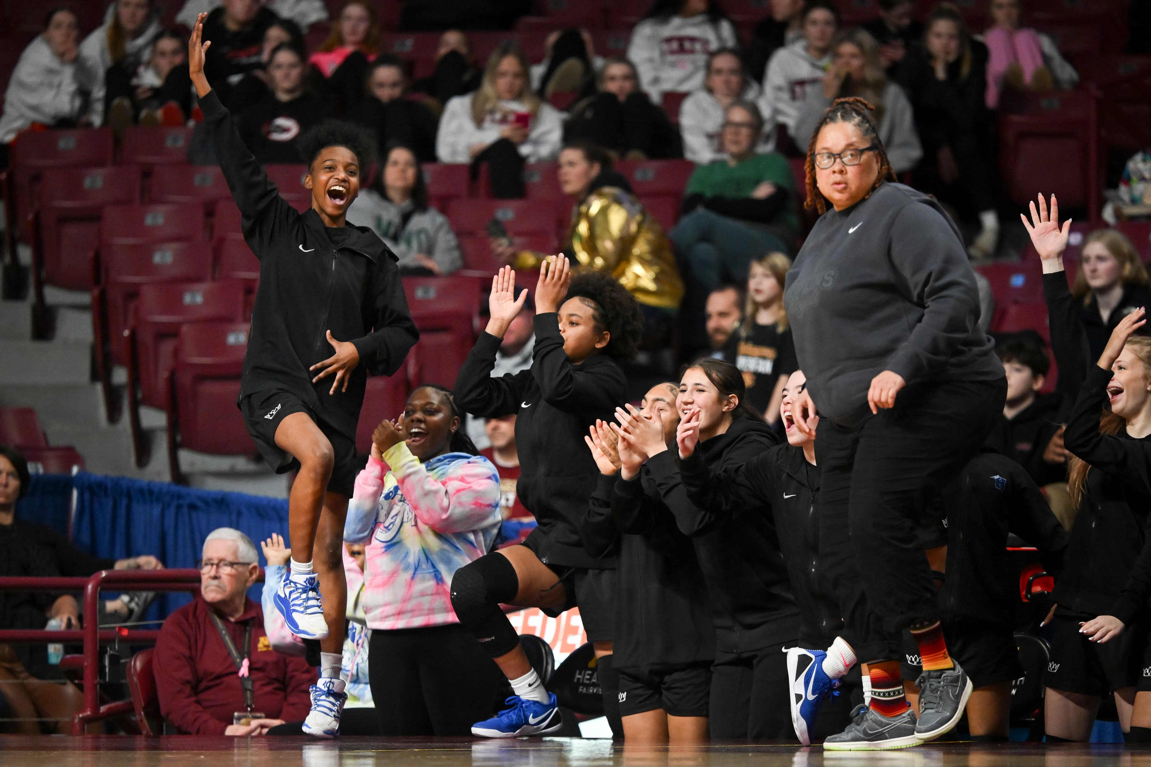 The basketball courts at Williams Arena and Maturi Pavilion sit less than a 60-second walk apart. Two venues, two courts, easy access for hoops fans wanting to consume as much of the girls basketball state tournament as possible this week.