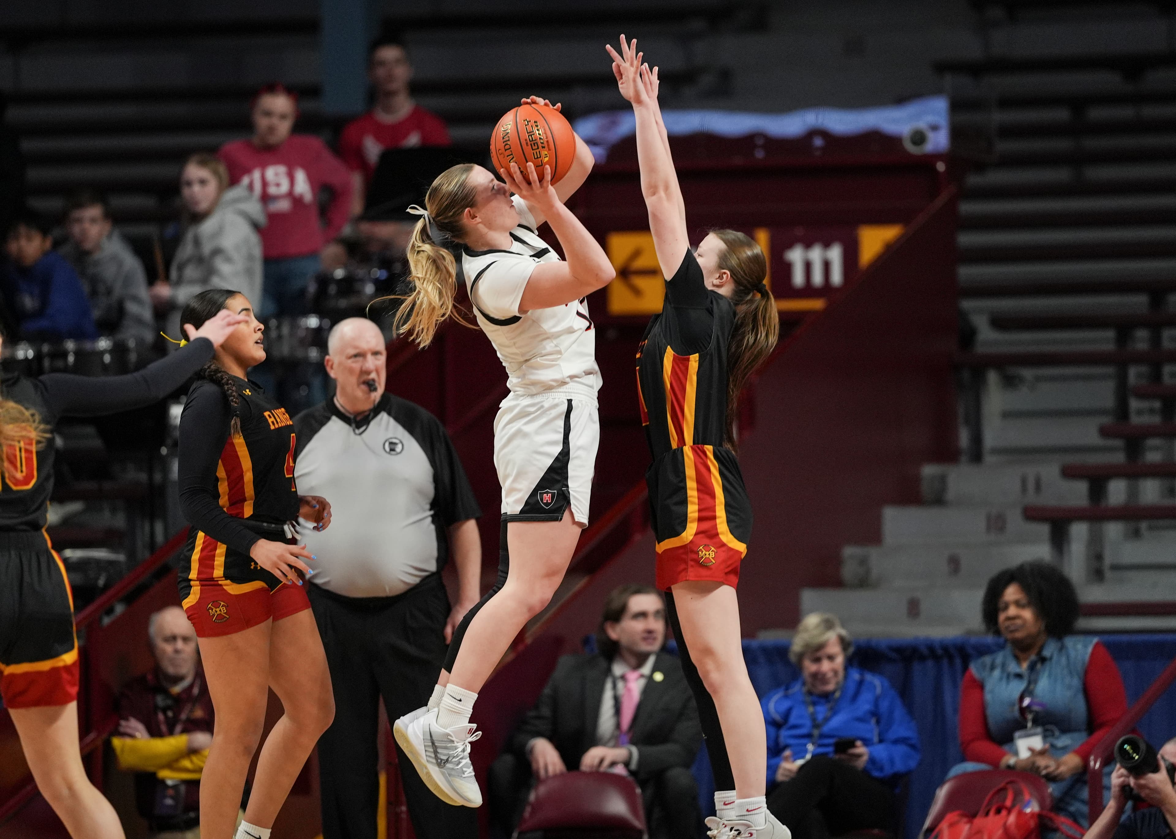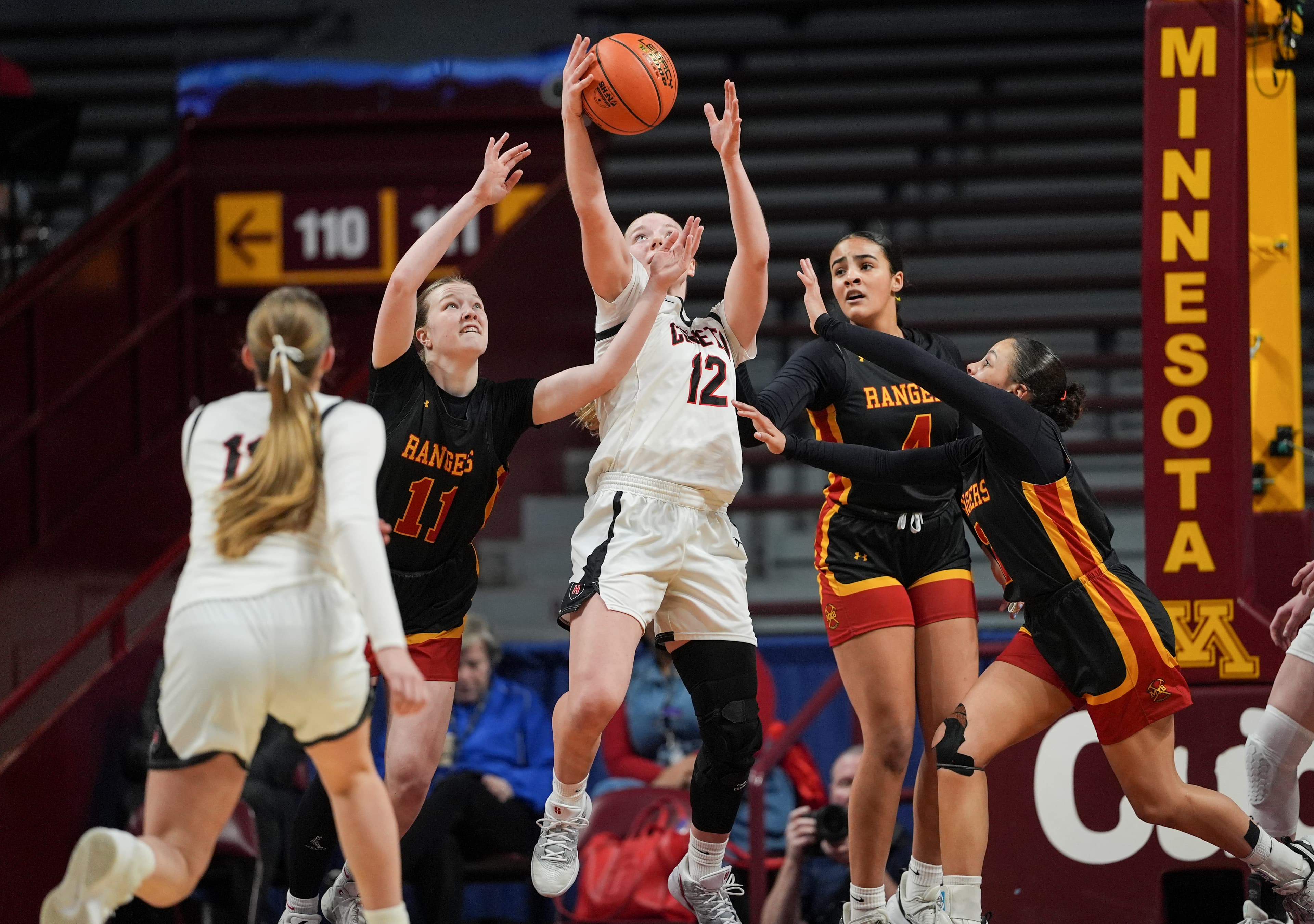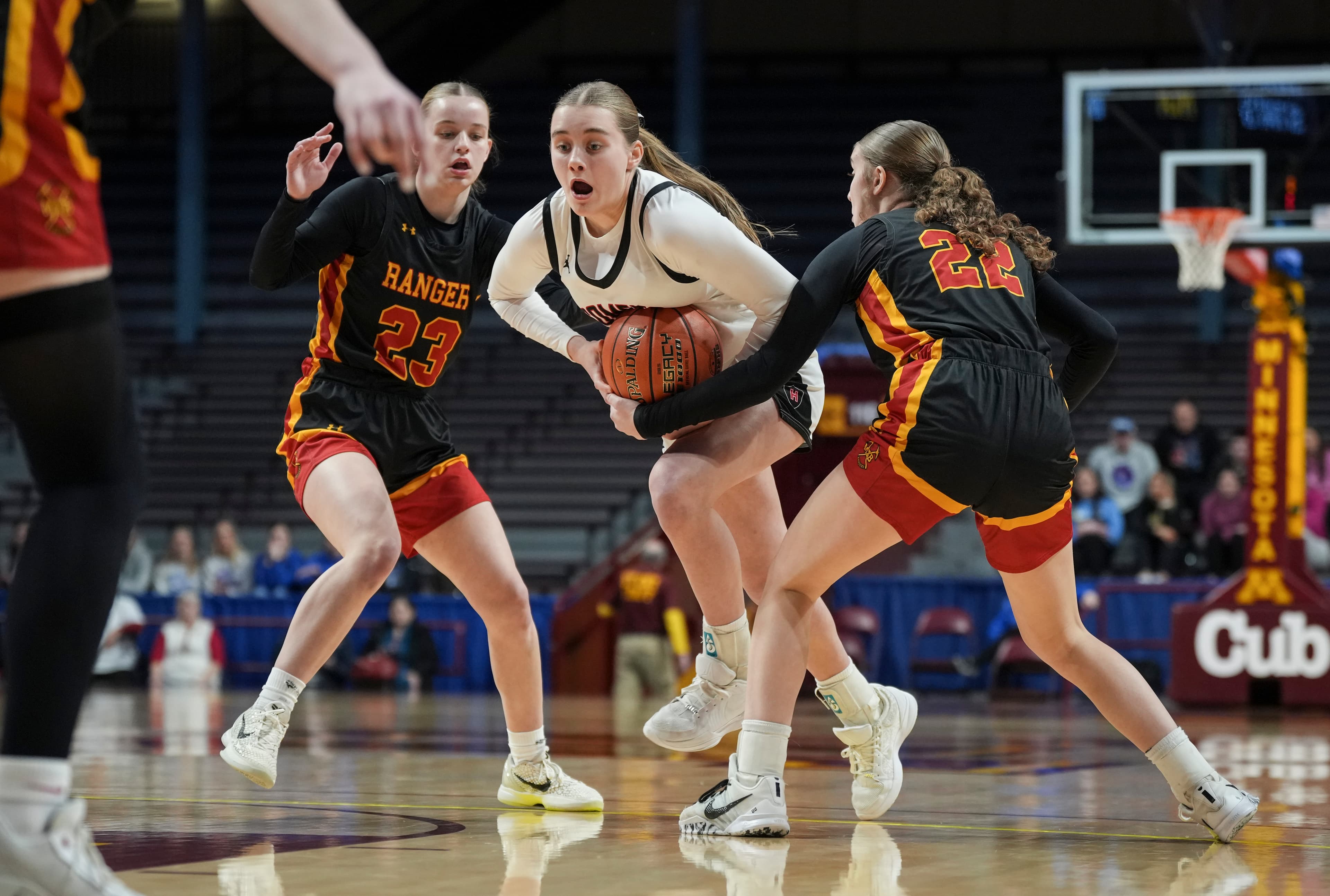 The basketball courts at Williams Arena and Maturi Pavilion sit less than a 60-second walk apart. Two venues, two courts, easy access for hoops fans wanting to consume as much of the girls basketball state tournament as possible this week.