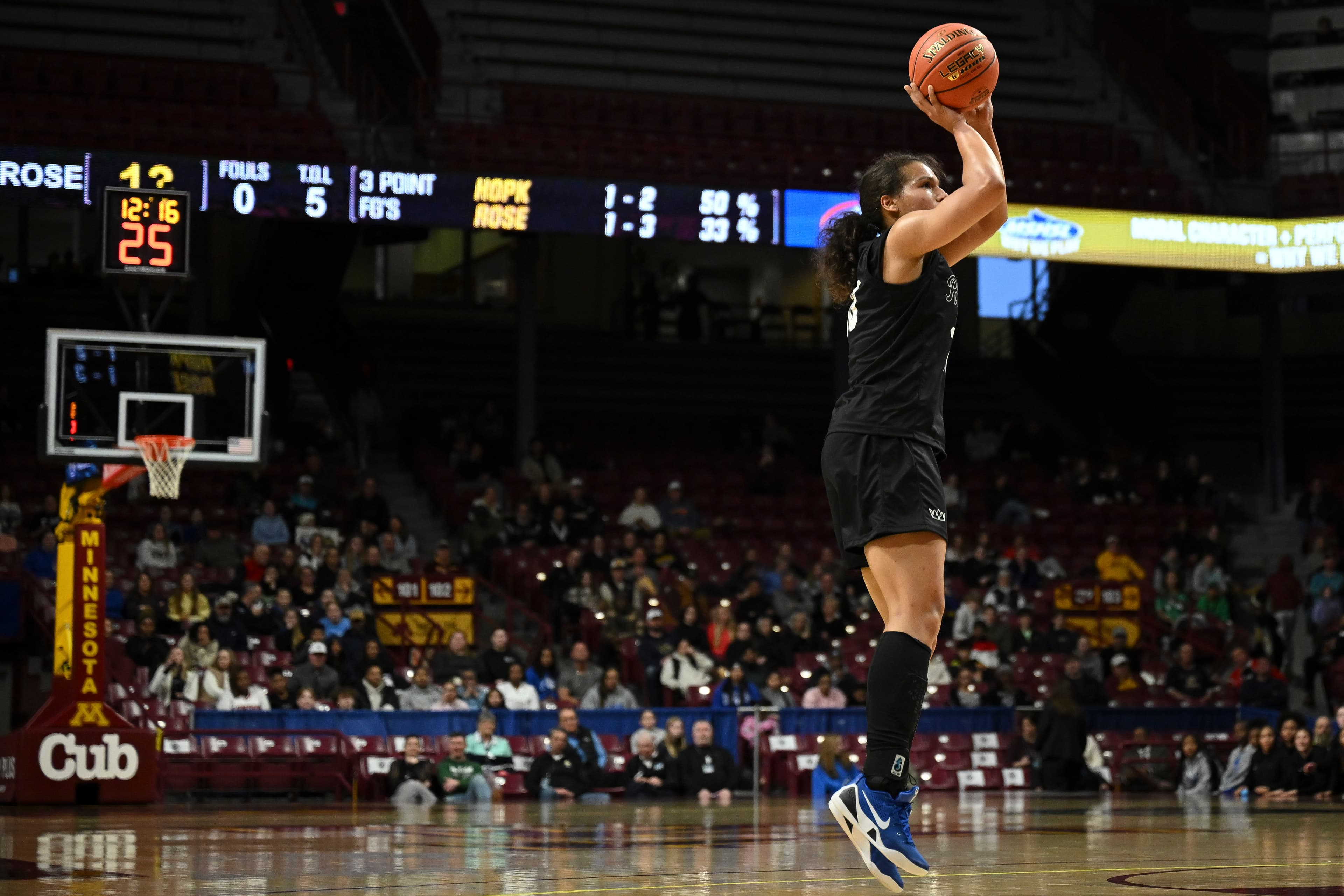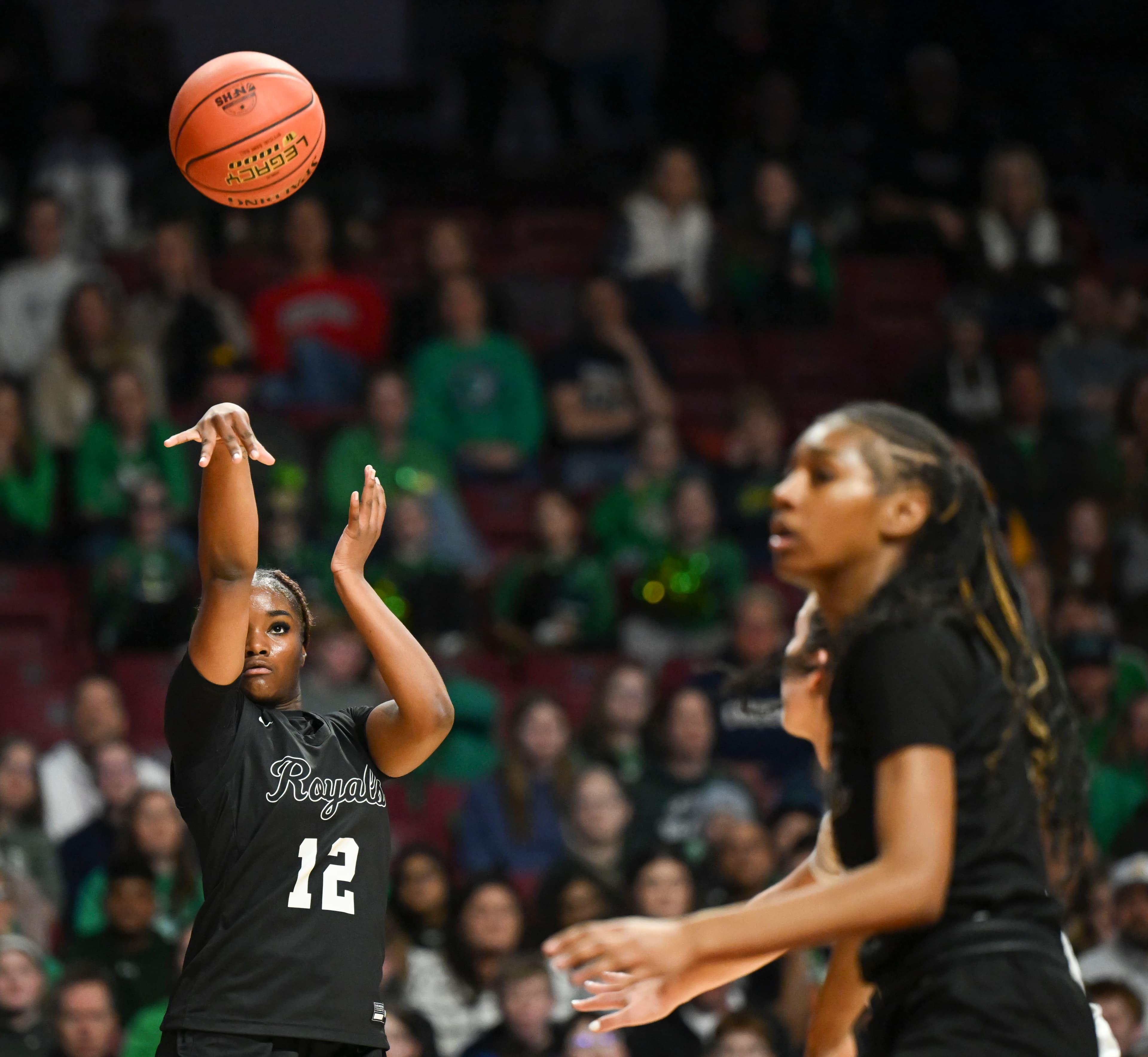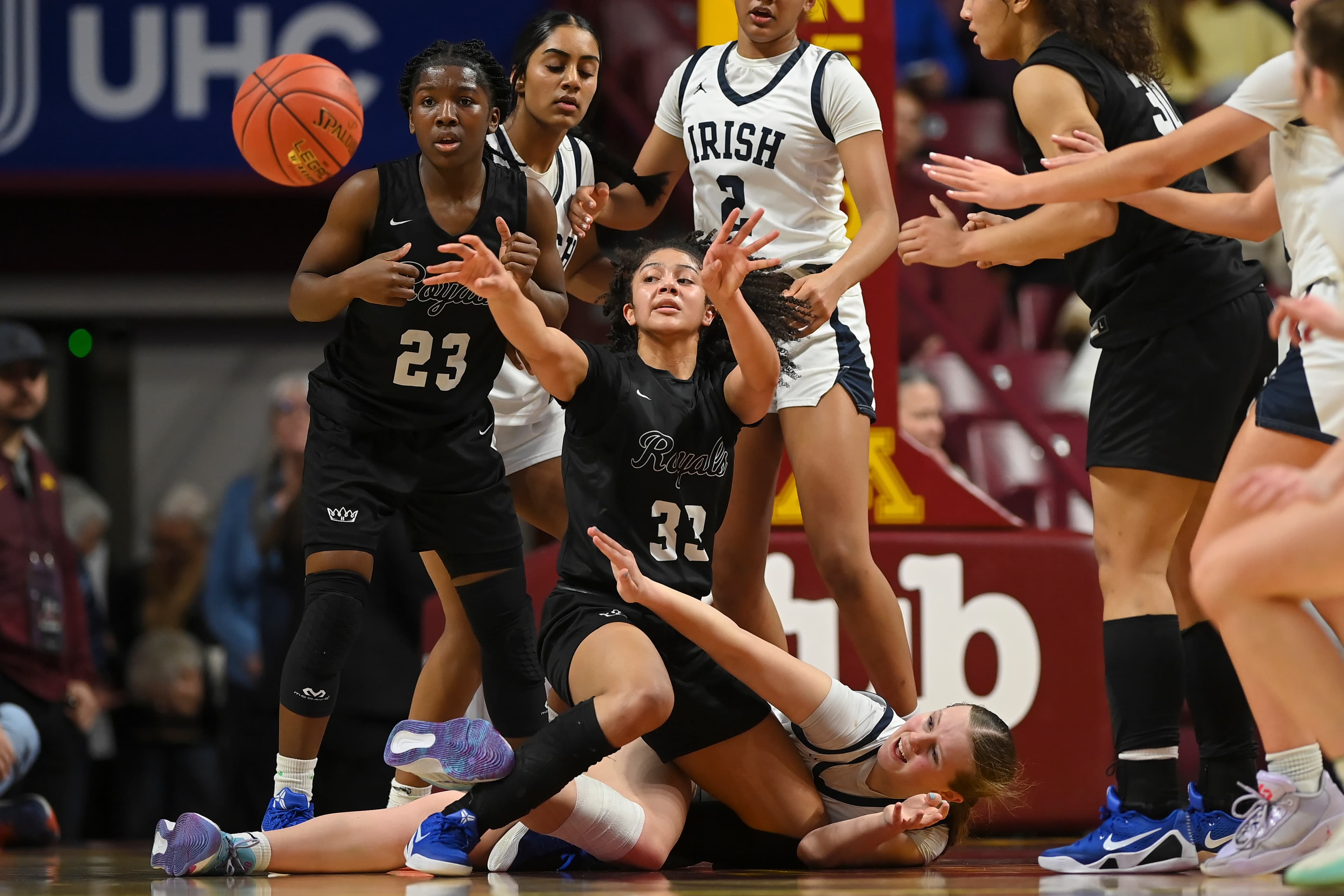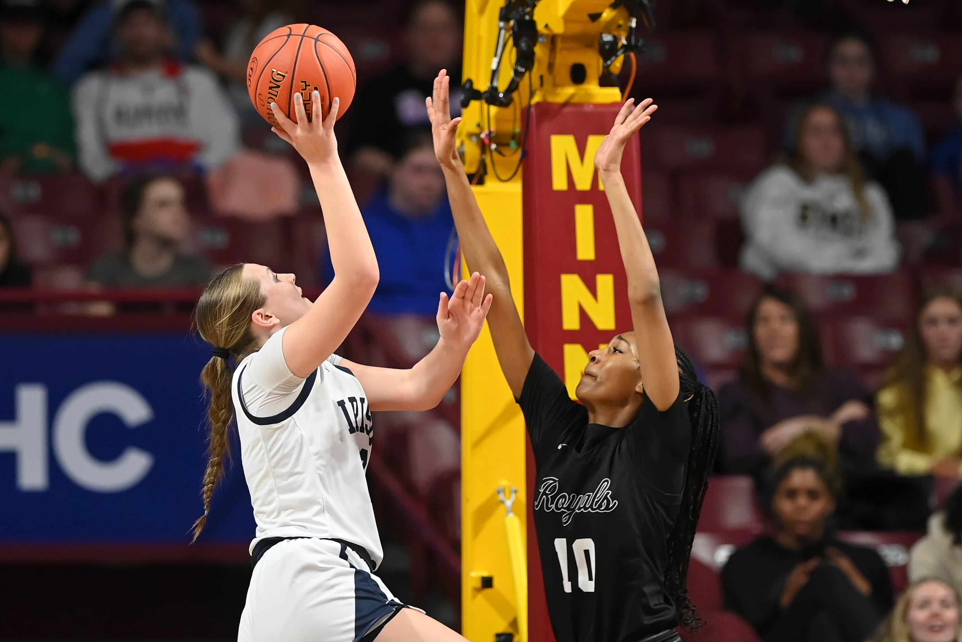 Amisha, an All-Minnesota Gophers commit, got to the rim often, scoring 15 points in the second half as Hopkins paid more attention — “every bit of it,” said Royals coach Tara Starks — to the Irish’s perimeter threats. The Irish were uncharacteristically low volume from three-point range (2-for-8) headed into the final five minutes.