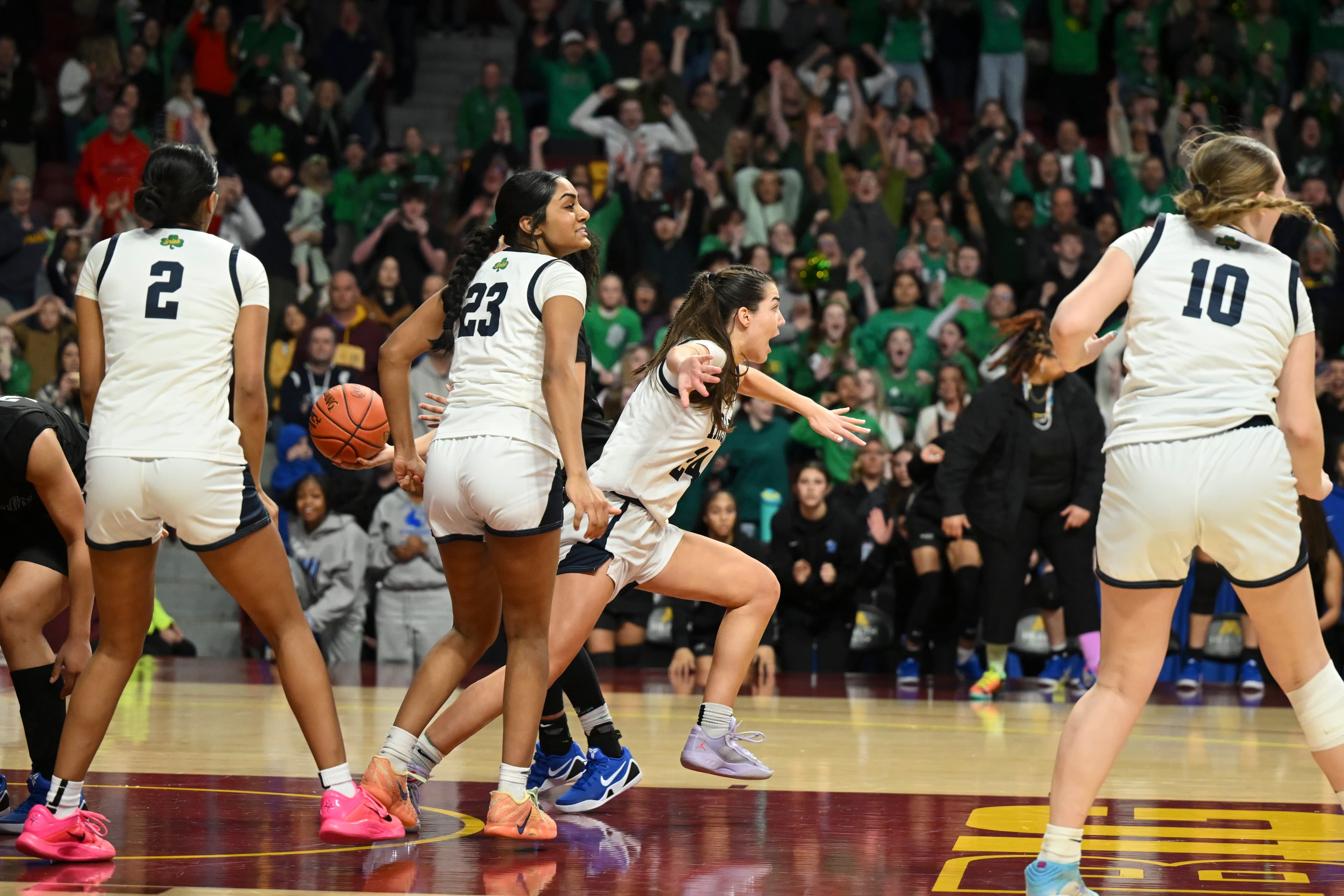 Both this Irish team and the Irish program are no strangers to close games. That’s how they lost the 2021 state title to Chaska, on a game winner with just over 5 seconds to play. That’s how this year’s squad beat Rochester Mayo 65-64 in a state semifinal two days earlier.