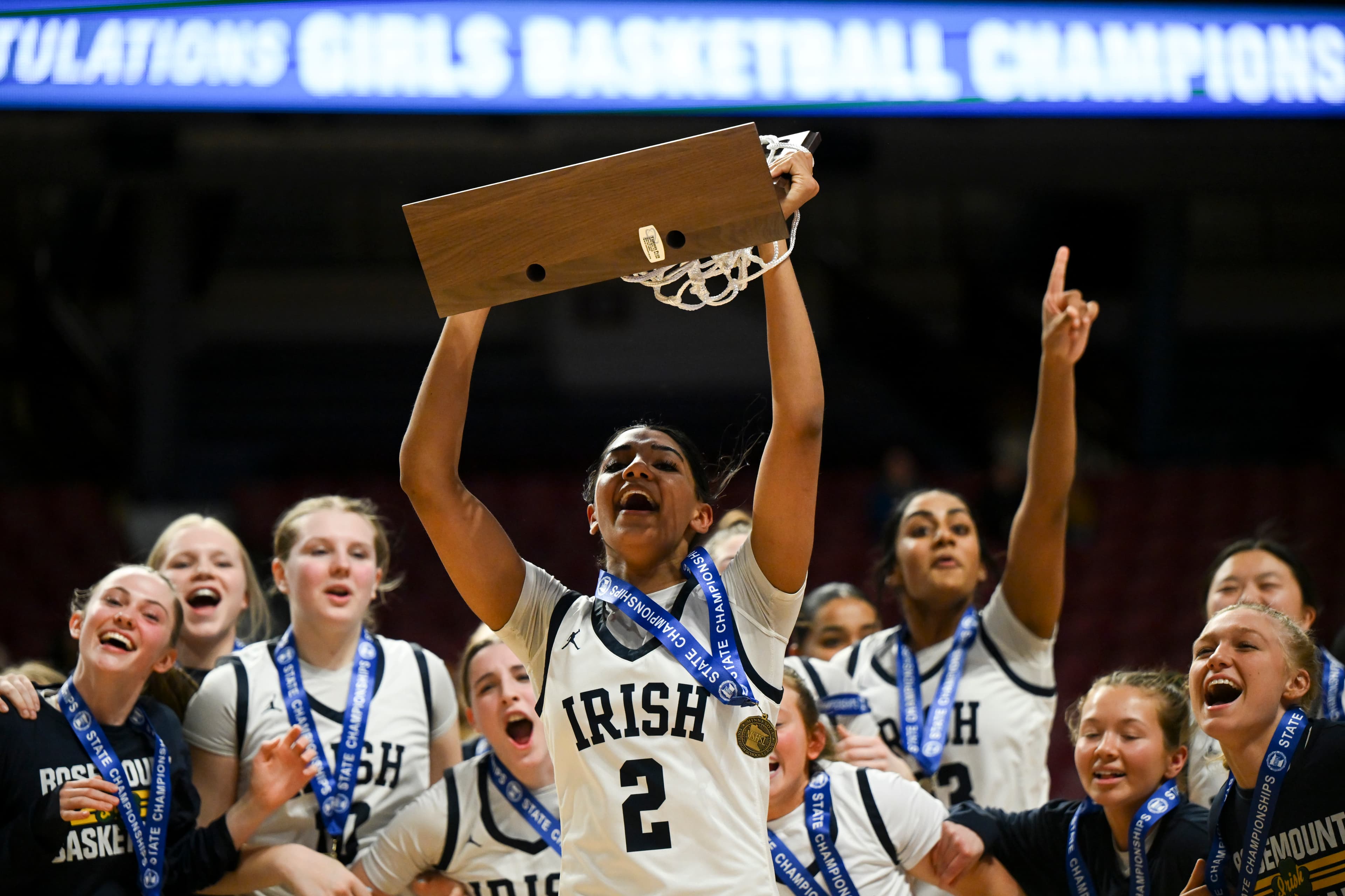 The Irish, the second seed in the Class 4A tournament, upset No. 1-ranked Hopkins 63-62 in the championship.