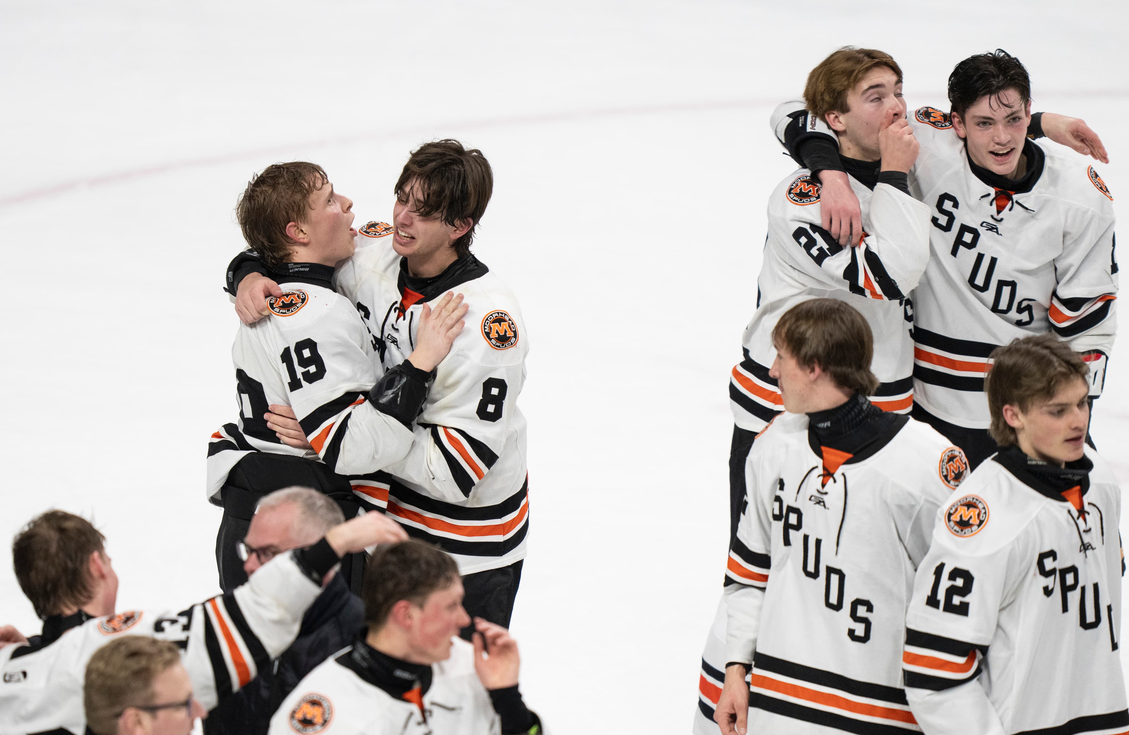 Moorhead won its first title, outracing Stillwater 7-6 on four goals in the first period by Mason Kraft. East Grand Forks triumphed after bringing a .500 record to state.