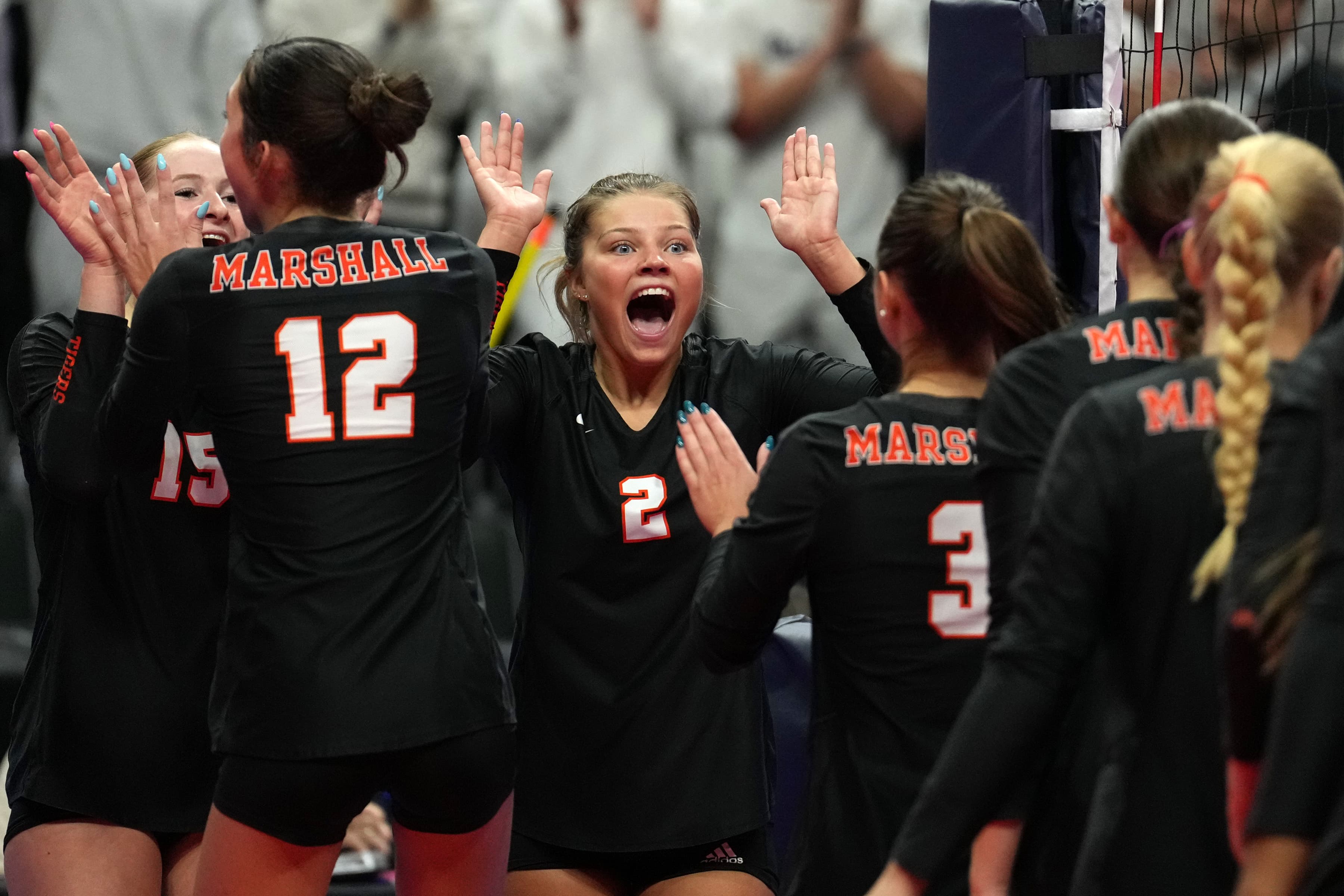Marshall’s student section chanted “that was easy” after Reese Drake hammered a kill down the line. She followed that with a ball that dropped in the back corner. That wasn’t so easy, but she made it look that way. The Raiders need to find a way to slow down one of the state’s most feared hitters.