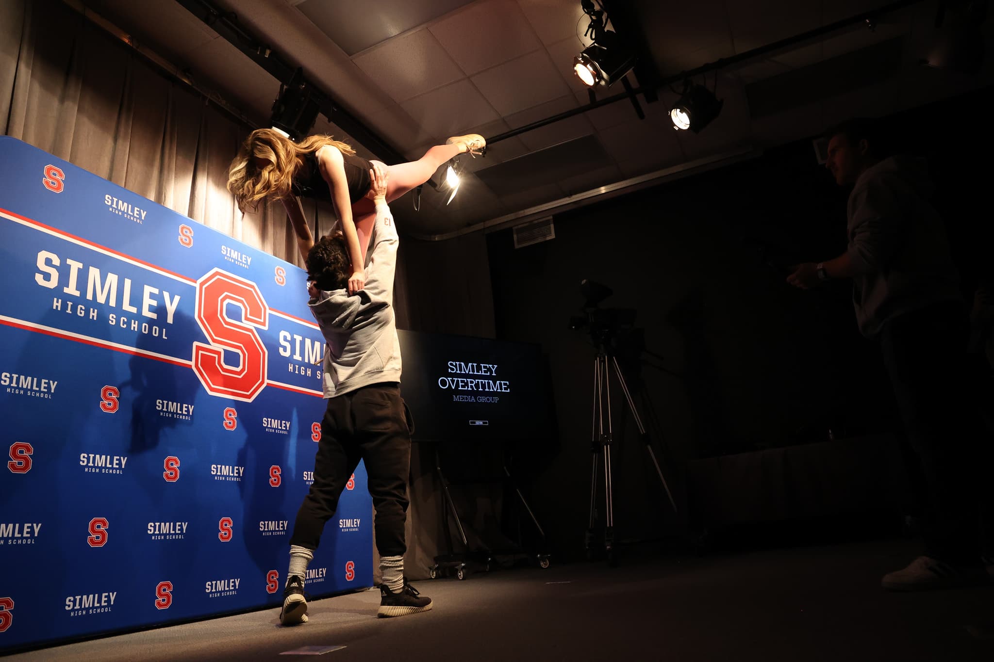 Each Simley Overtime video begins with the students on screen asking the trademark, “What’s good, Simley Overtime?” and ends with something unique — a dance, a flip, a silly joke. This particular reel ends with Short hoisting Fumich over his head, a move they’d rehearsed in dance class.