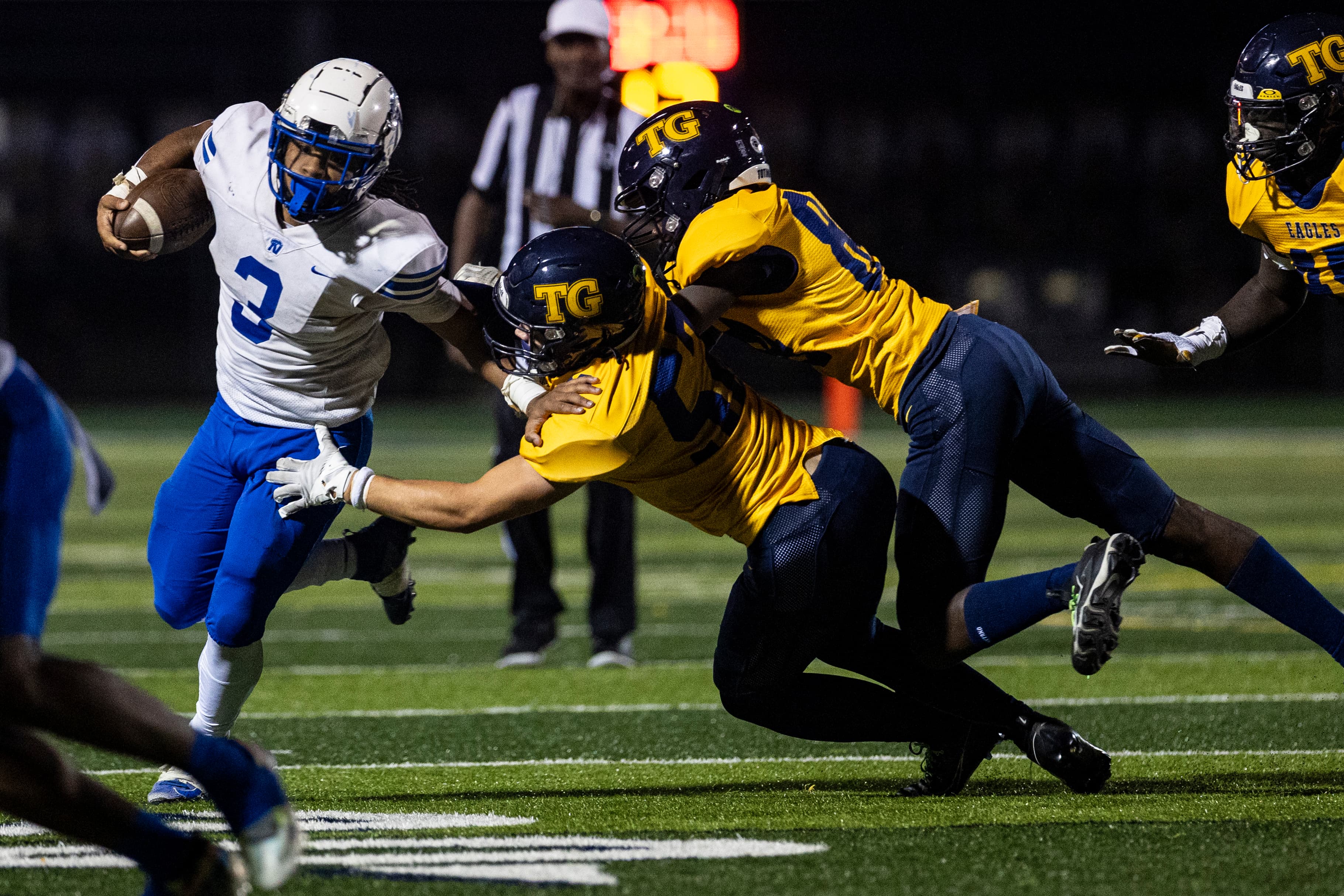 The Polars’ penchant for mistakes did them no favors. Their first of five turnovers on the night occurred on the opening kickoff when they fumbled the ball to the Eagles on their own 11-yard line. Two plays later, Totino-Grace took advantage on a 3-yard scoring run by quarterback Jake Person.