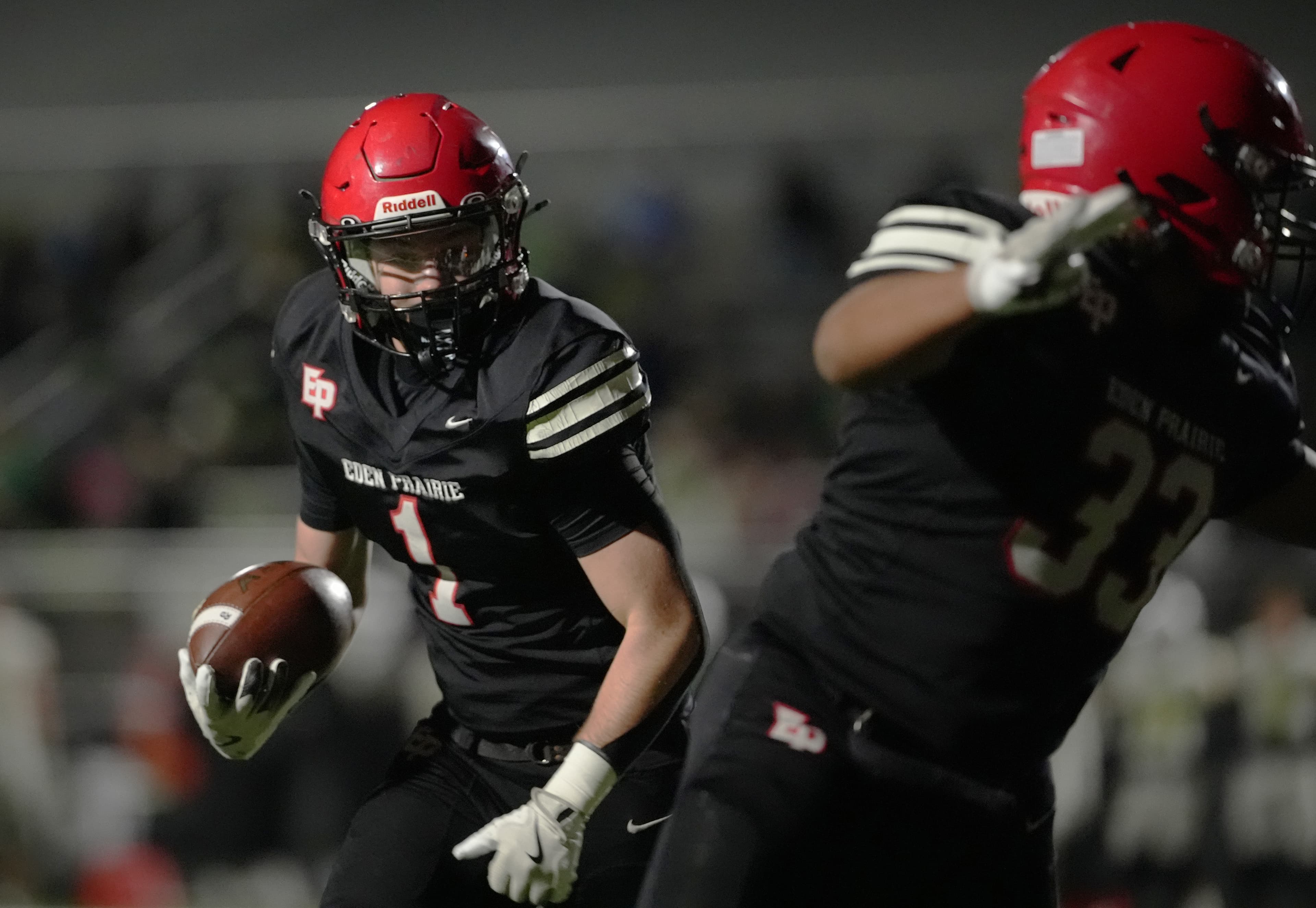 Eden Prairie made an impressive stand to quickly stuff Edina deep in its own territory, with freshman defensive end Jayden Bates sacking West on a third-and-10 on the Hornets 18-yard line. Bates received his first scholarship offer from Minnesota this past summer. The Eagles got the ball back near midfield with 1:18 to play in the half but weren’t able to get much past the Edina secondary, which broke up passes as the Eagles looked downfield. It’s not as if Eden Prairie head coach Mike Grant hasn’t coached teams in this position before. The longtime Eagles head coach this season became the third head coach in Minnesota to reach 400 career wins.
