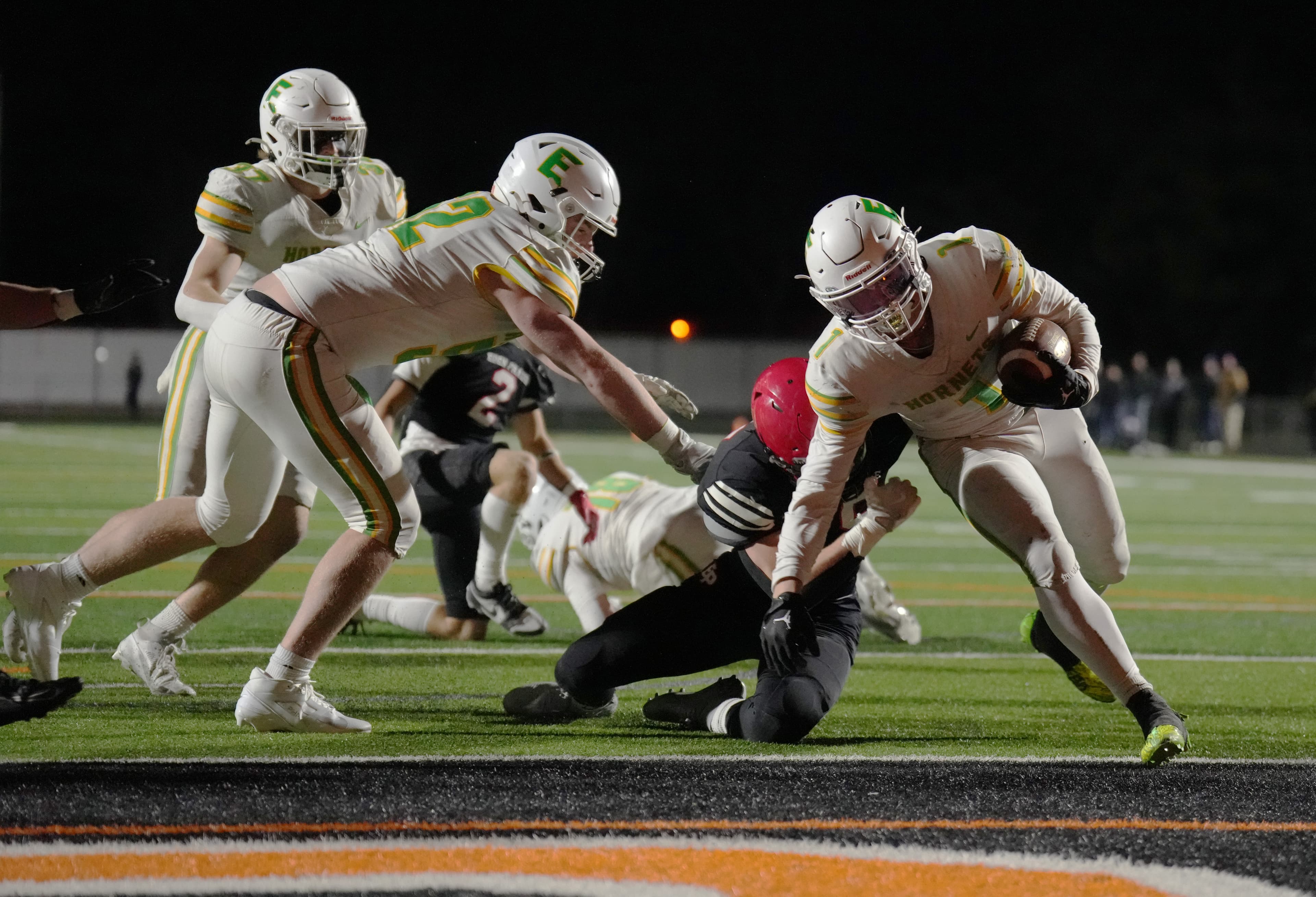 The Hornets are back in the state semifinals after finishing runner-up in 2024, looking for their first championship. Senior running back Chase Bjorgaard scored two touchdowns on the ground and quarterback Mason West found senior receiver Jabari Strader for another, all in the first half. The Eagles ground out a long third-quarter drive to briefly take their first lead of the night.