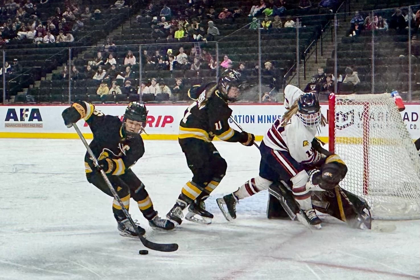 It was a 2-1, three-hour behemoth of a Class 1A girls hockey state tournament semifinal. Both teams had chances, but the reigning champions found the way to advance to Saturday’s championship game.
