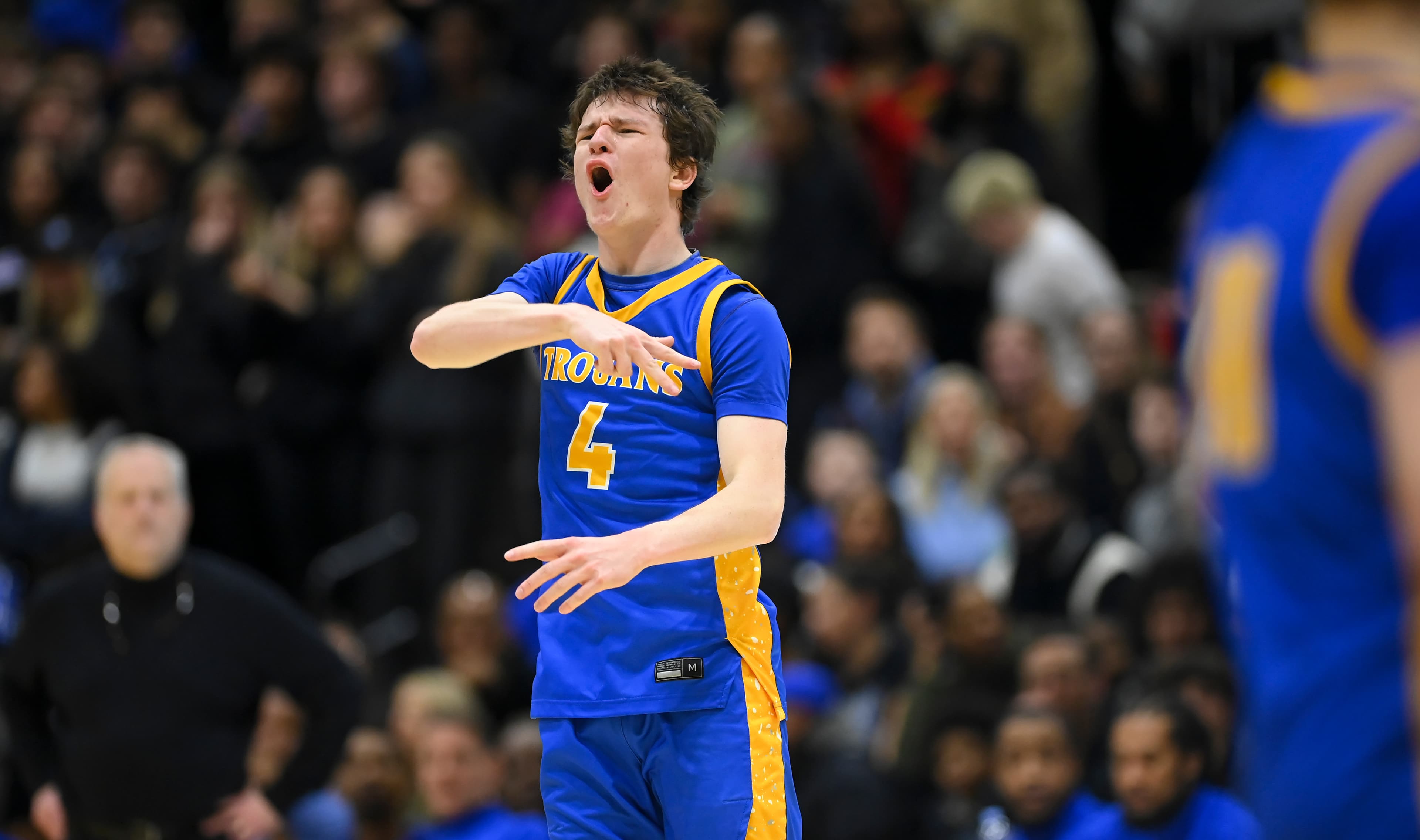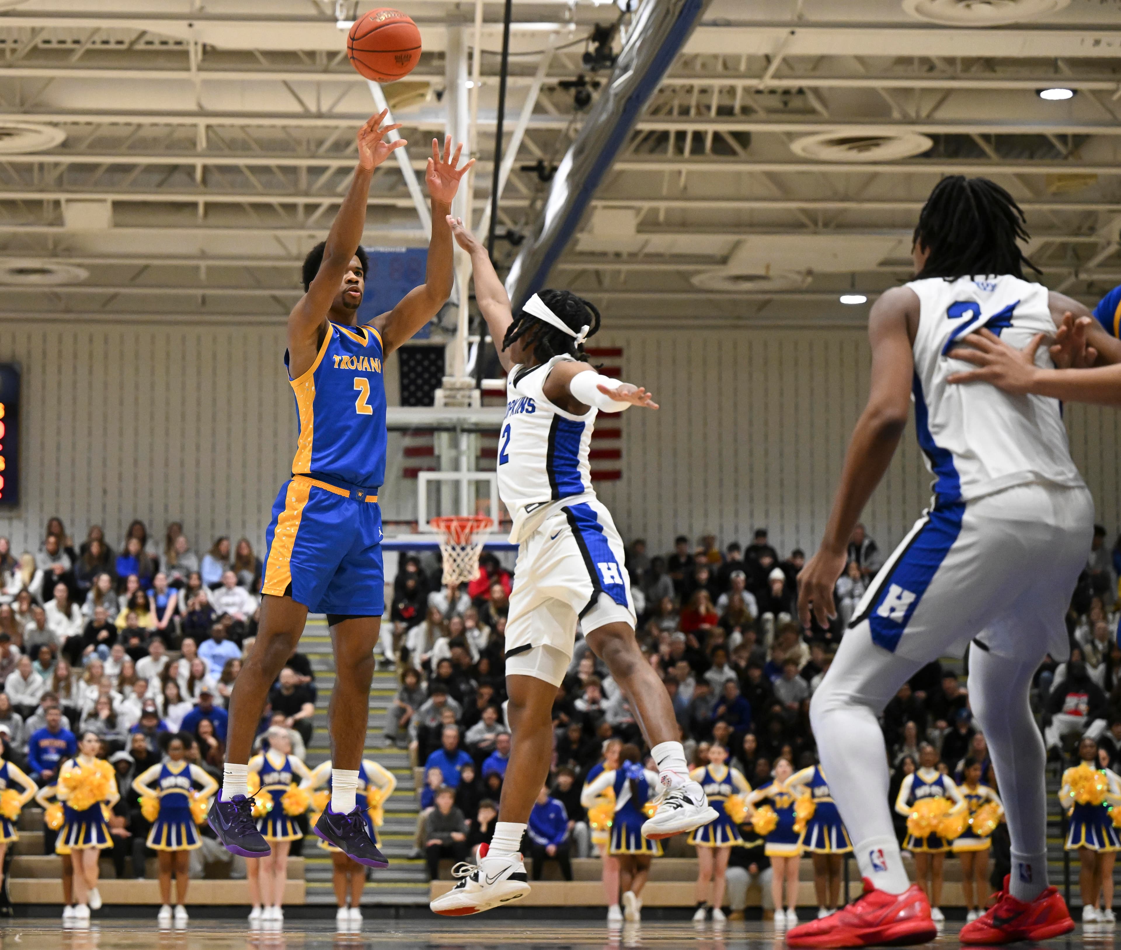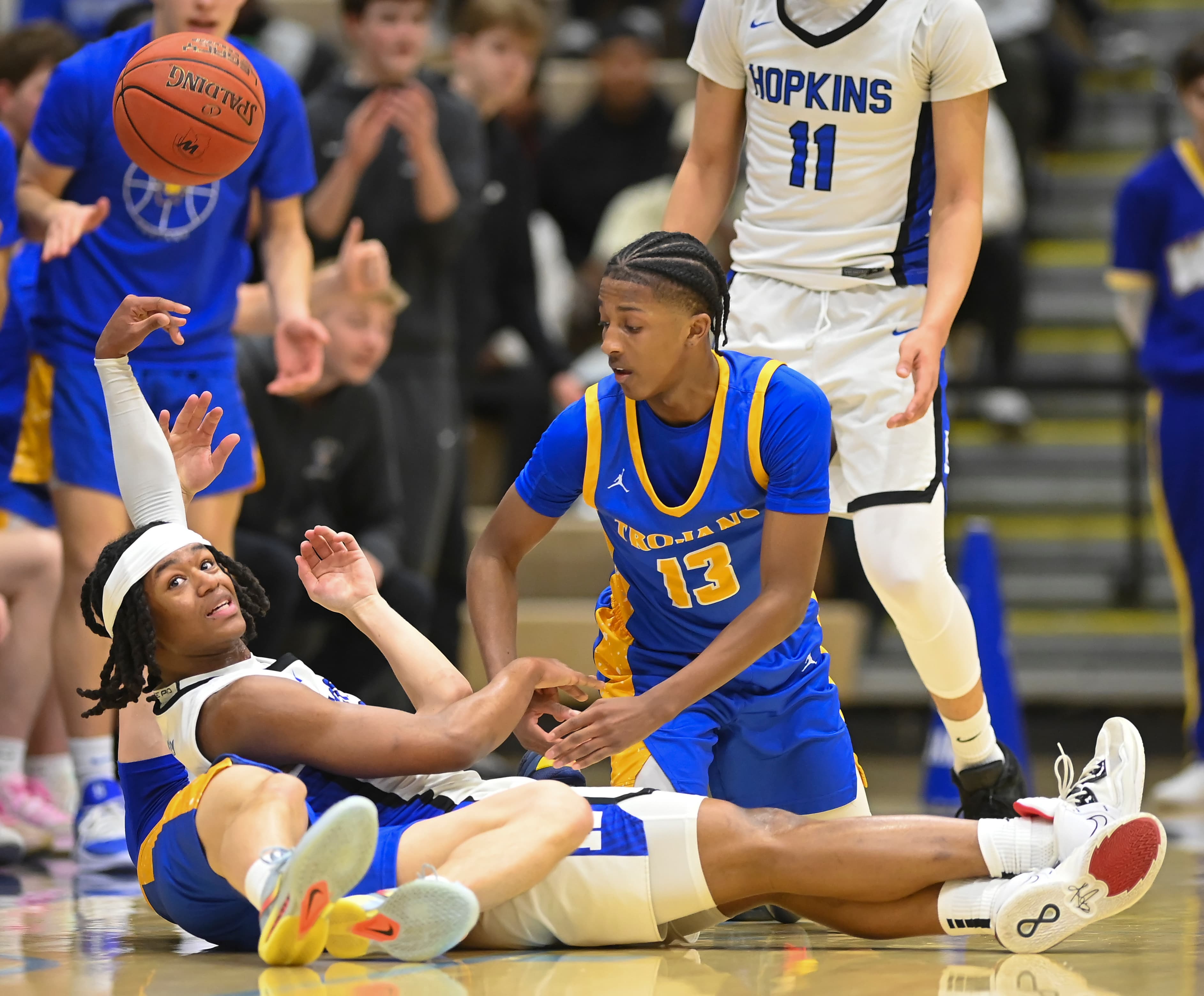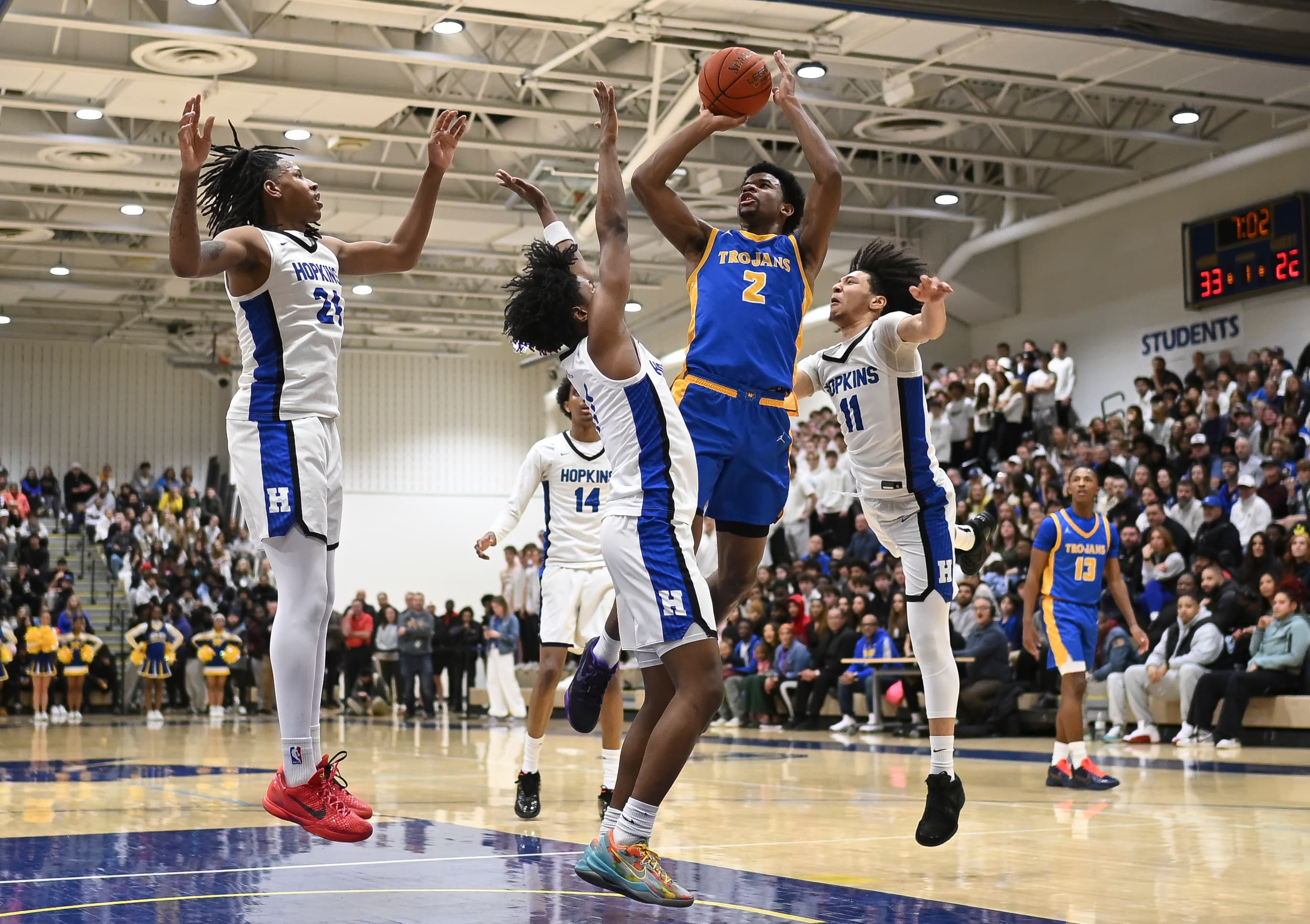 Wiggins’ fifth shot from beyond the arc made it 50-28 with 2½ minutes left in the first half. Xavy Ivey nailed Wayzata’s 11th three-pointer in the period before the Trojans eventually took a 56-34 lead into halftime. Hopkins had only one three-pointer in the first half.