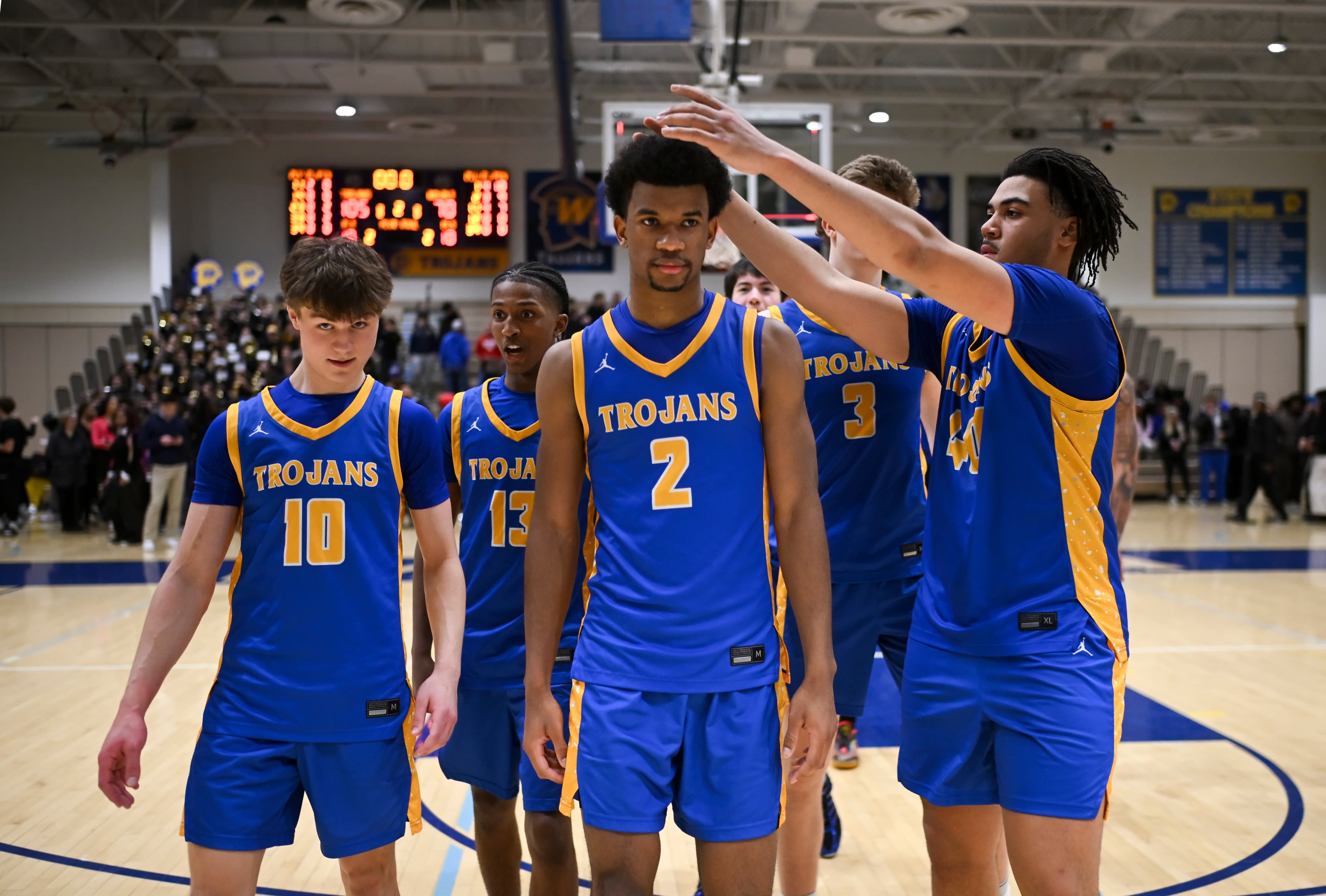 The Trojans are one step closer to defending their Class 4A state title after Christian Wiggins scored 30 points to lead them to a 105-70 win against Hopkins in the Class 4A, Section 6 championship.